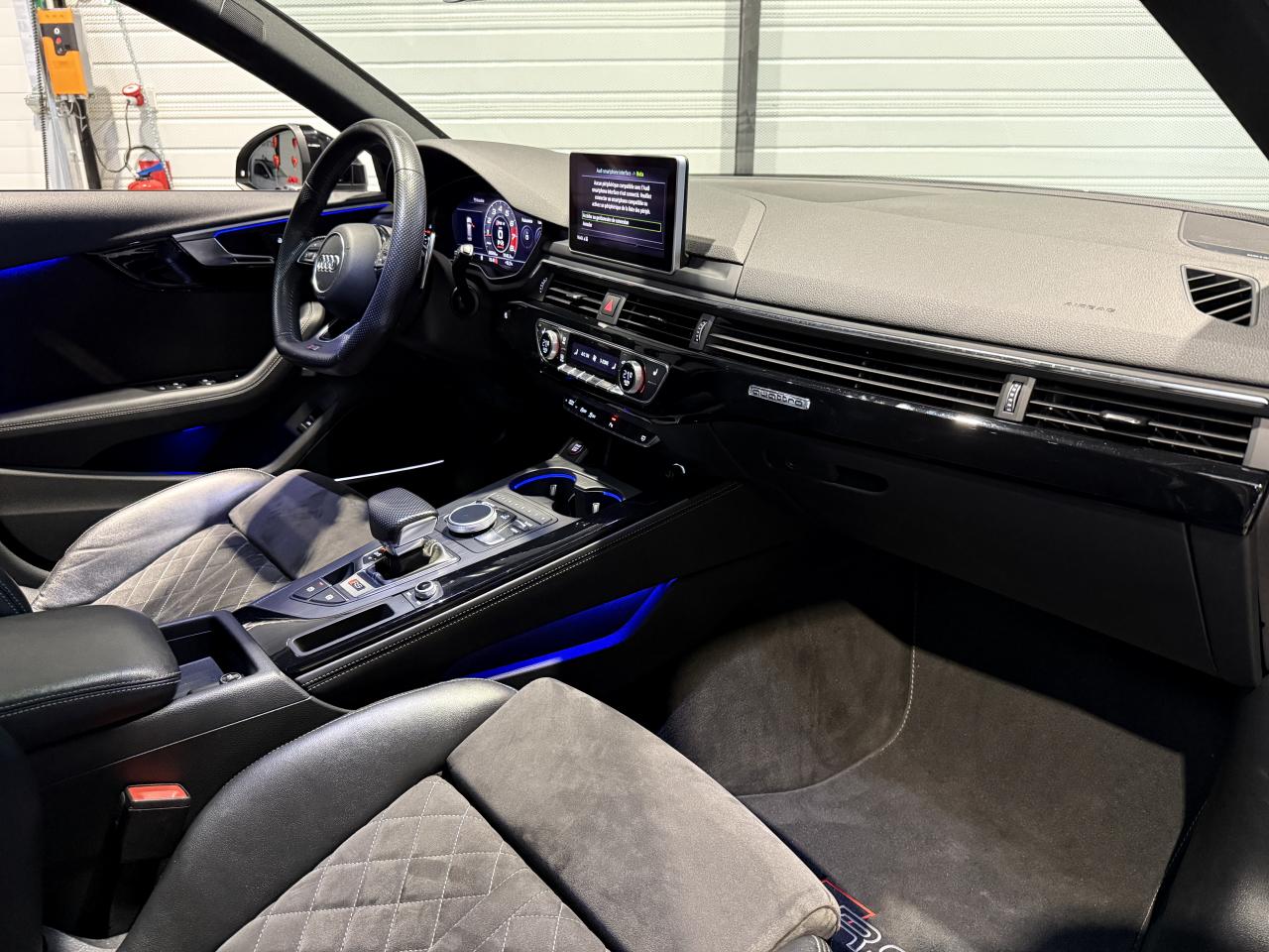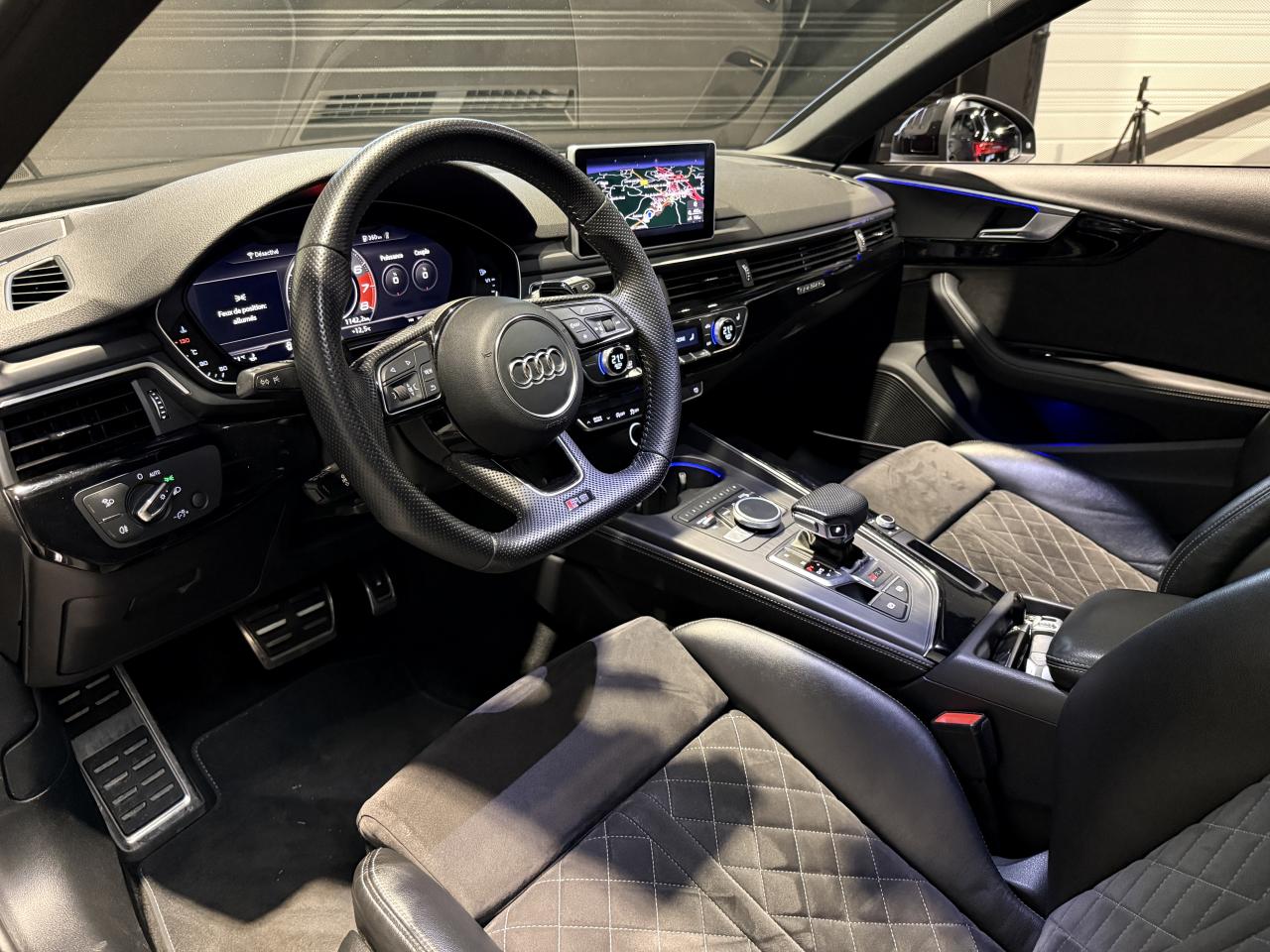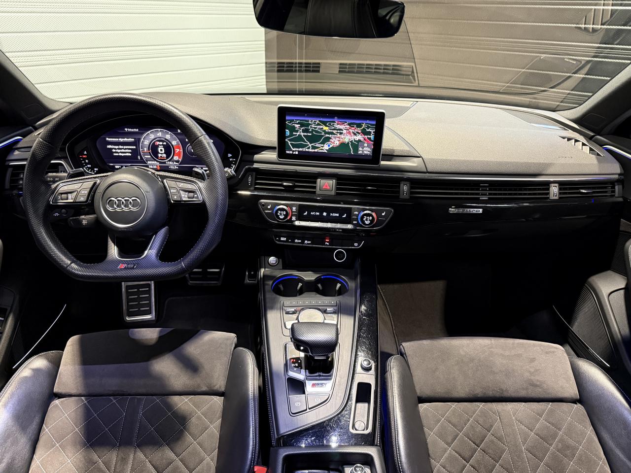 Nombreuses options : GPS, caméra de recul, Apple Carplay, radars avants et arrières de détection d'obstacles, Jantes aluminium forgé 20" 5 branches doubles Edge noir anthracite brillant fraisées brillant ( 2 308 € ), Châssis Sport RS plus avec Dynamic Ride Control réglable sur 3 niveaux comfort auto dynamic ( 2 000 € ), Vitesse maximale relevée à 280 km/h ( 1 500 € ), Différentiel Quattro Sport avec répartition dynamique du couple droite gauche sur l’essieu AR ( 1 358 € ), Toit panoramique ( 1 458 € ), Bang & Olufsen Sound System avec son en 3D ( 858 € ), Clé confort avec alarme antivol et fonction safelock ( 483 € ), Vitres surteintées Privacy glass avec vitrage acoustique ( 483 € ), Etriers de frein laqués rouge brillant avec inscription RS à l’AV et à l’AR ( 400 € ), Réception radio numérique DAB incluant DAB+ et DMB Audio ( 341 € ), Système de lecture des panneaux de signalisation par caméra ( 308 € ), Système de contrôle de pression des pneus avec affichage des pressions et températures sur Audi virtual cockpit ( 250 € ), Coffre avec système de glissières kit de fixation barre télescopique sangle de maintien et 4 œilletons de fixation ( 208 € ), Applications décoratives en Piano laqué noir ( 216 € ), Coques de rétroviseurs extérieurs en noir brillant ( 108 € ), Audi Hold Assist maintien du véhicule à l’arrêt en côte et en descente ( 83 € ), Rideaux pare-soleil manuels pour les vitres latérales AR ( 54 € ), Direction dynamique, Augmentation de la vitesse de pointe à 280 km/h, Becquet AV encadrement de la calandre baguettes décoratives sur les vitres latérales diffuseur AR en noir brillant, Boîte à gants verrouillable, Filet dans le logement gauche et sangles de serrage à gauche et à droite dans le coffre, Filet de coffre, Filet de rangement au dos des sièges AV, Phares Audi Matrix LED, Porte-boissons dans l’accoudoir central AR, Quattro avec différentiel Sport, Rampes de pavillon noires, Vide-poches côté conducteur, ...