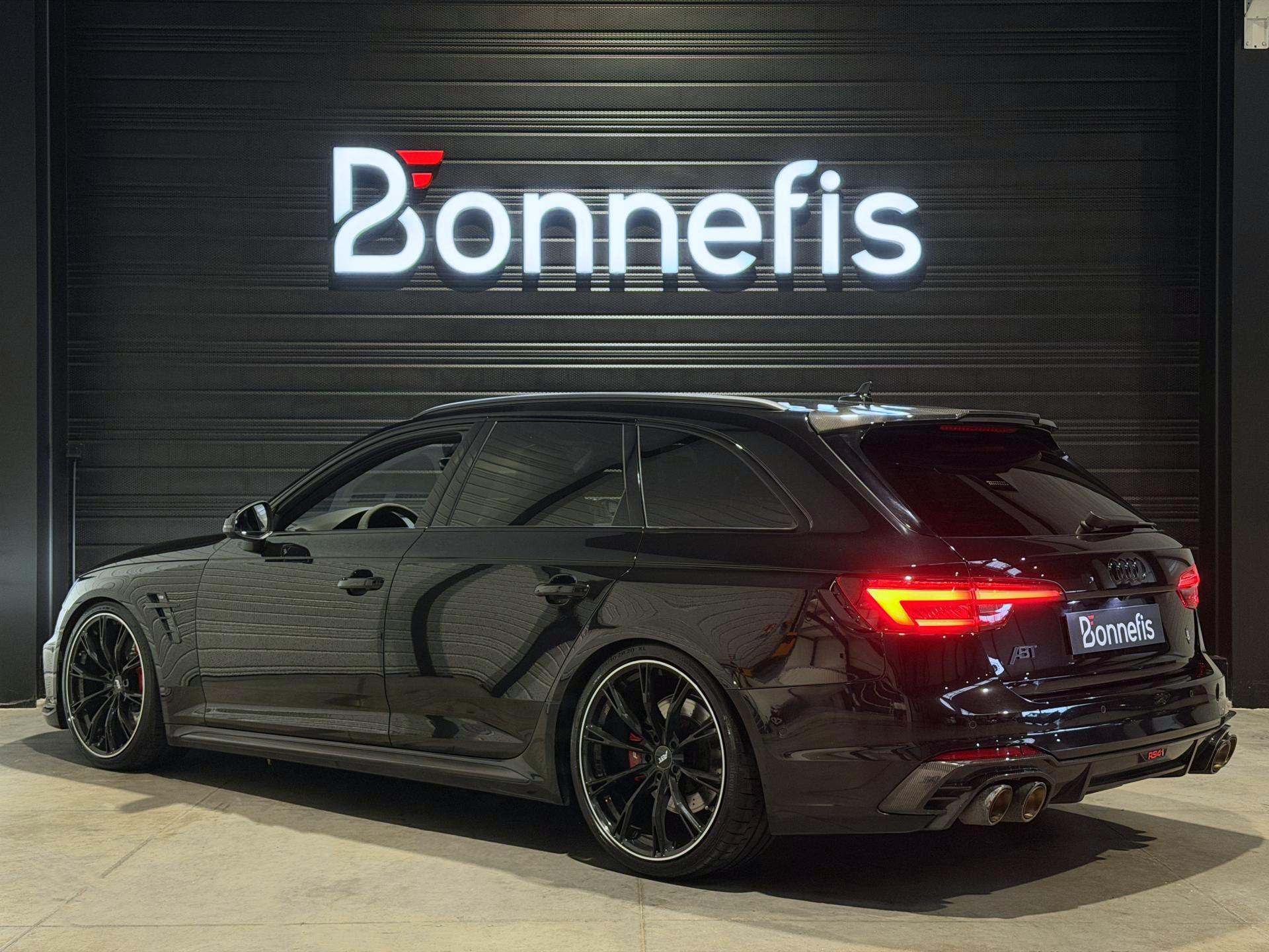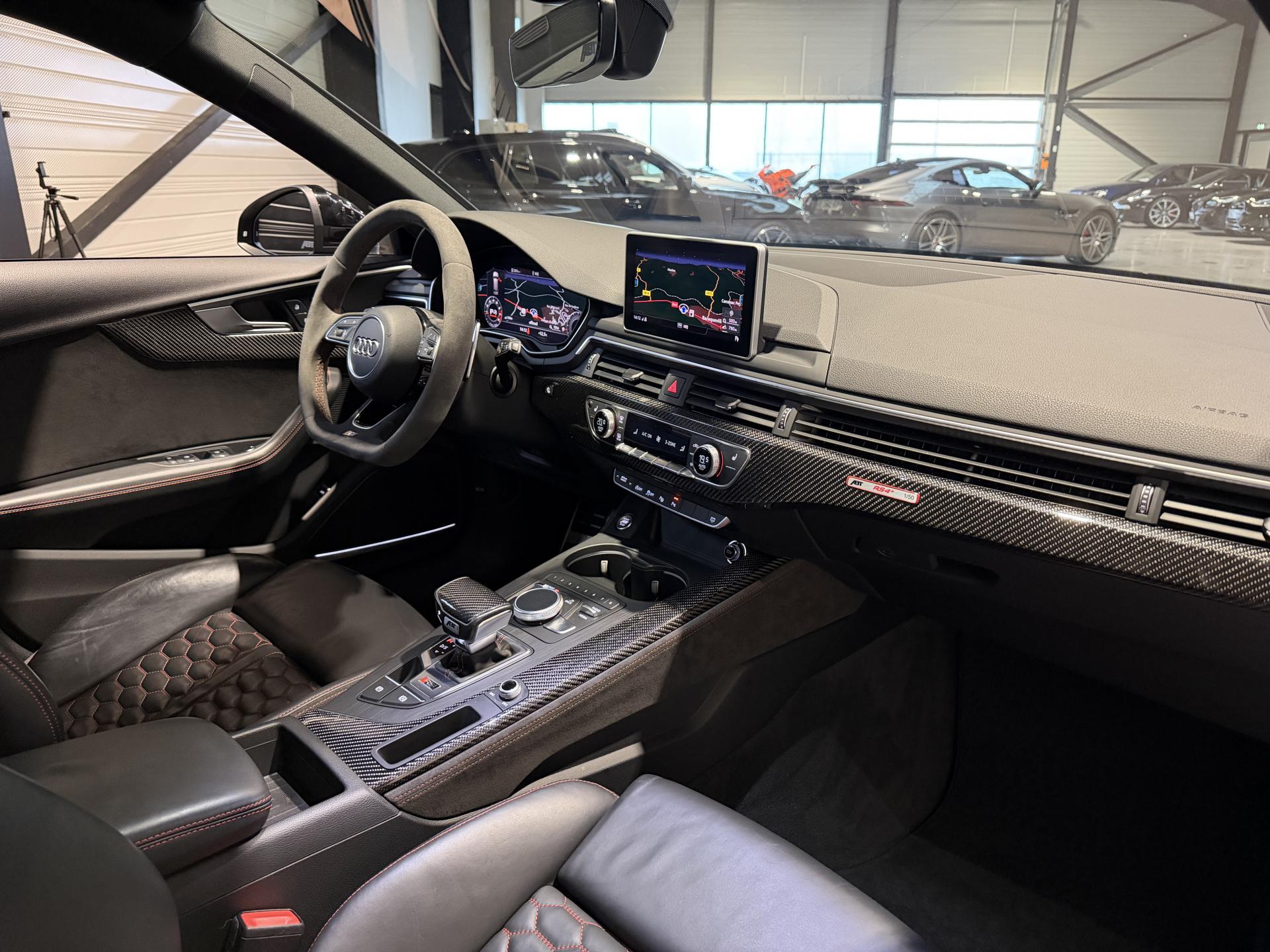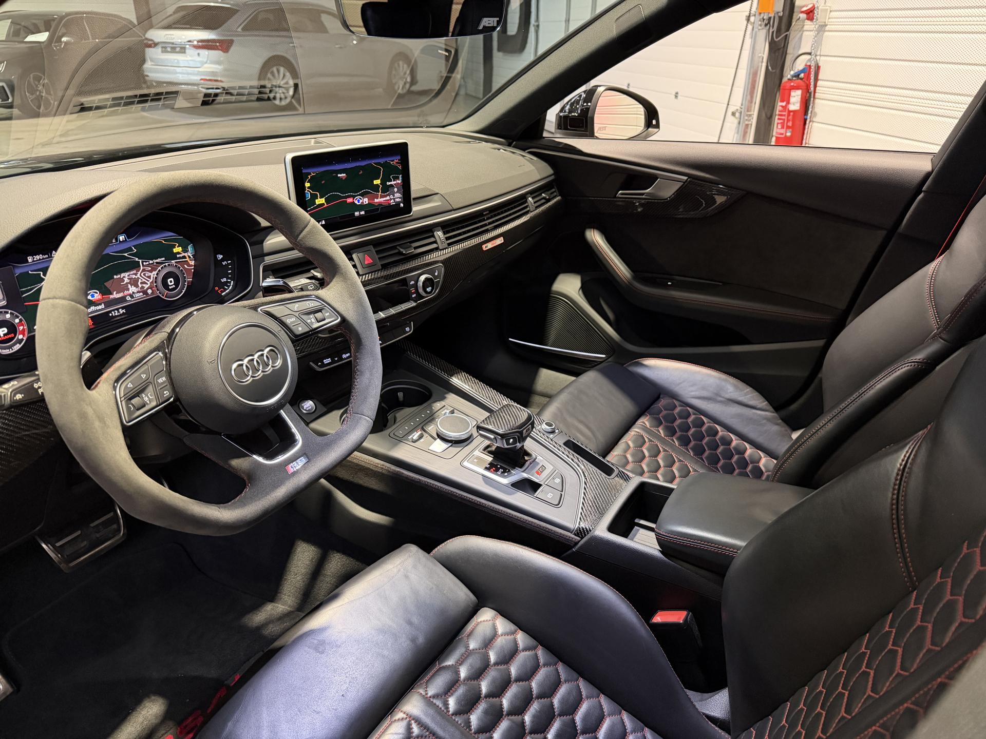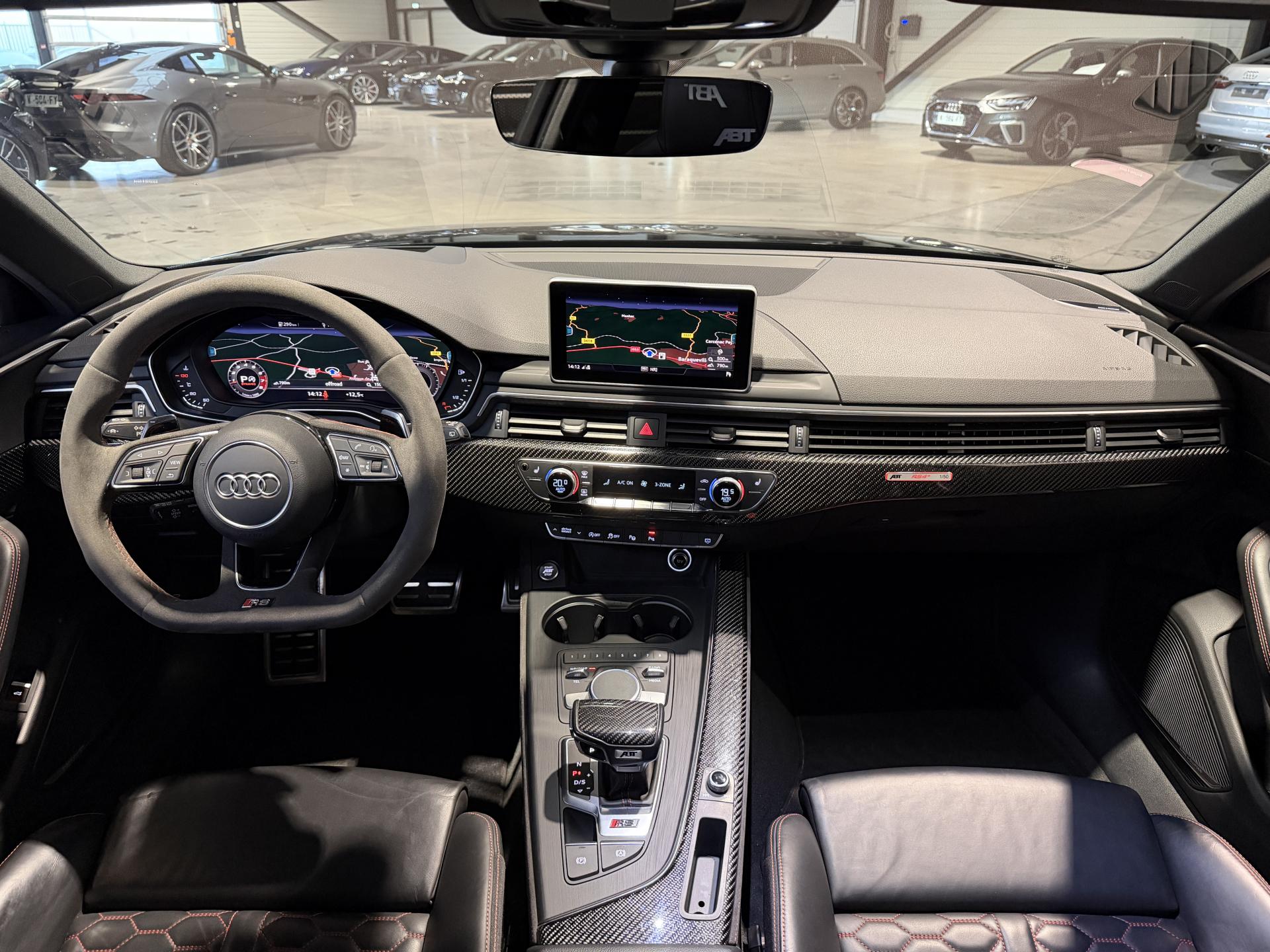 Audi RS4 Avant ABT+ 2.9 TFSI 510Ch Quattro Tiptronic 8, extérieur noir métallisée ( 841 € ), intérieur noit cuir Nappa fin ( 8 75 € ), 34 cv, 5 portes, première mise en circulation le 13/08/2019.