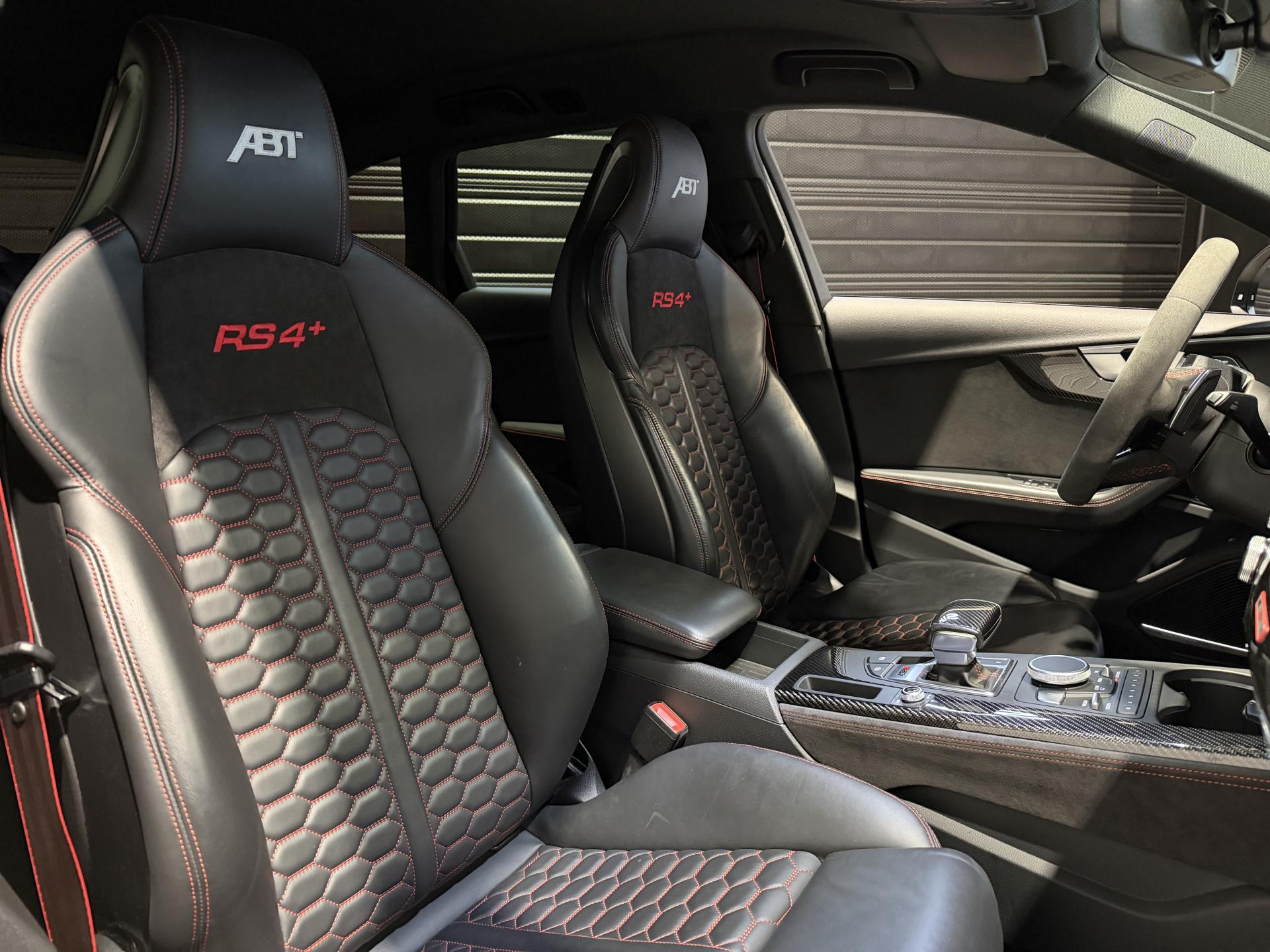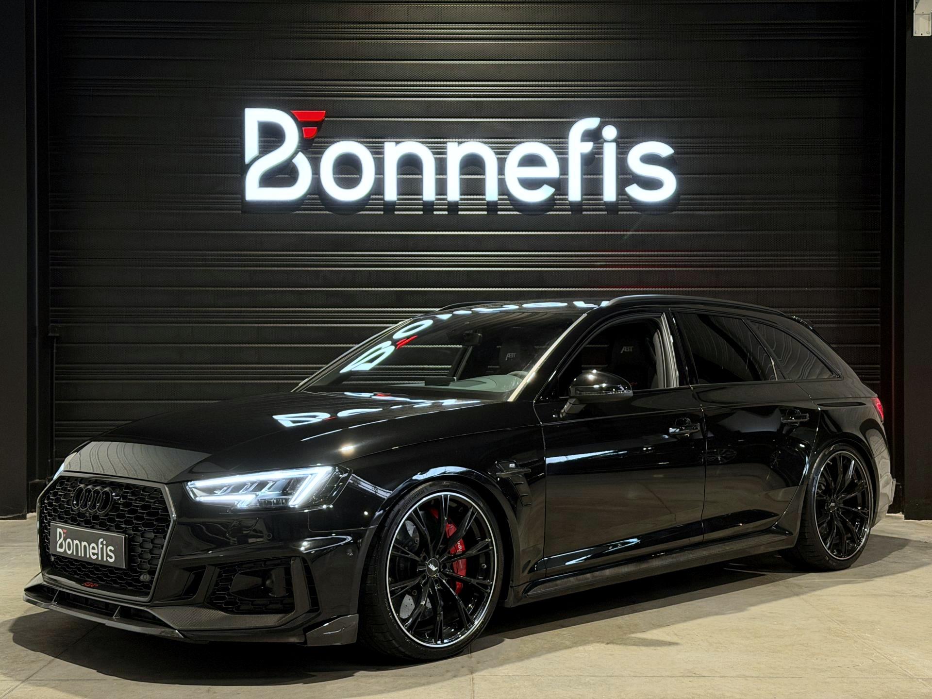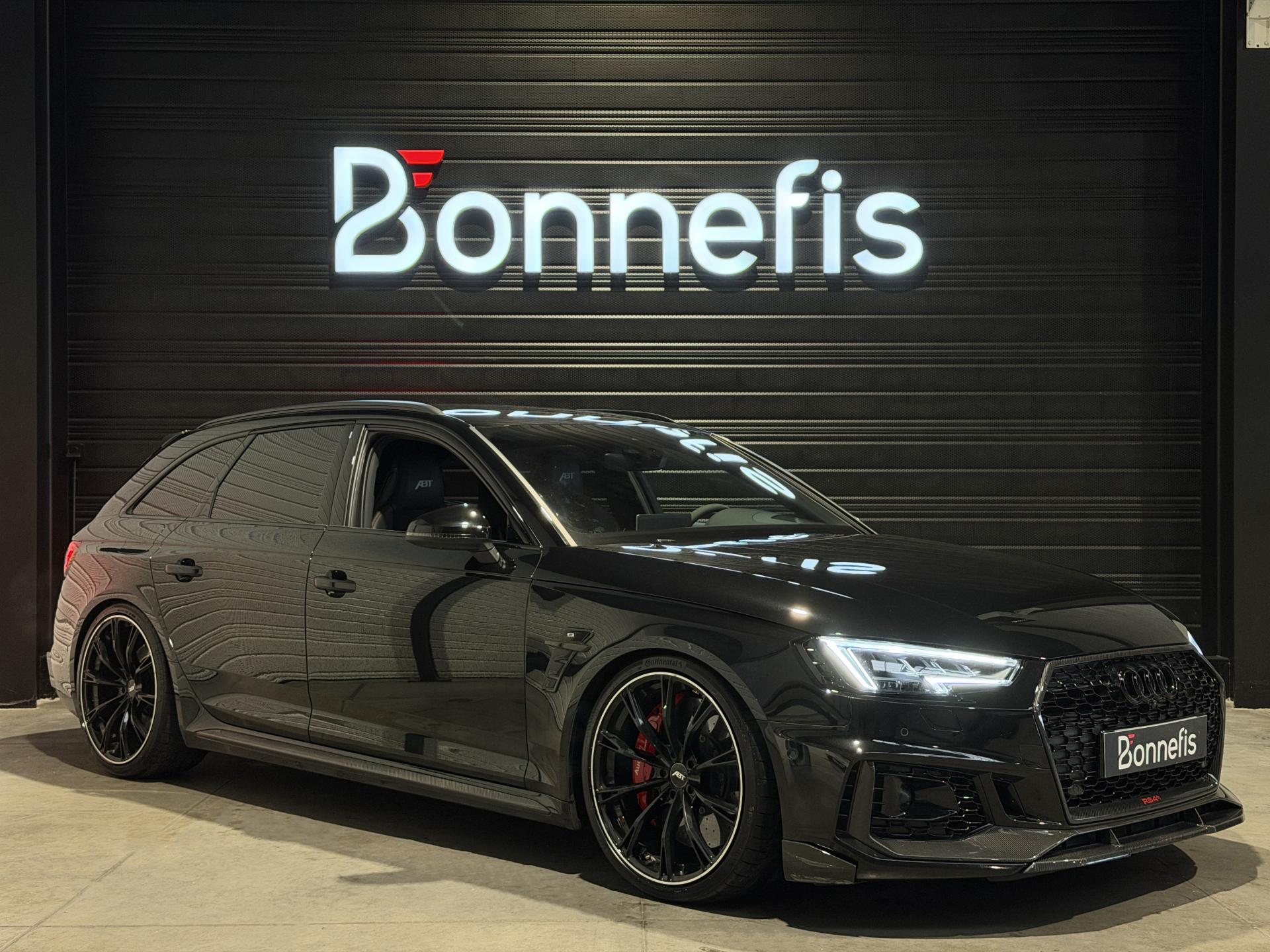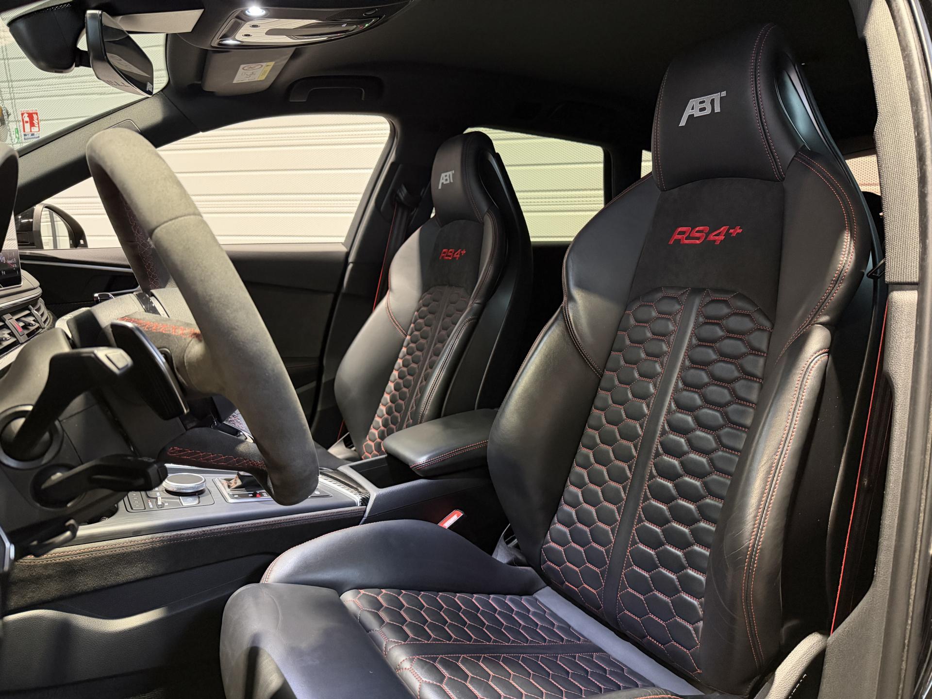 Audi RS4 Avant ABT+ 2.9 TFSI 510Ch Quattro Tiptronic 8, extérieur noir métallisée ( 841 € ), intérieur noit cuir Nappa fin ( 8 75 € ), 34 cv, 5 portes, première mise en circulation le 13/08/2019.