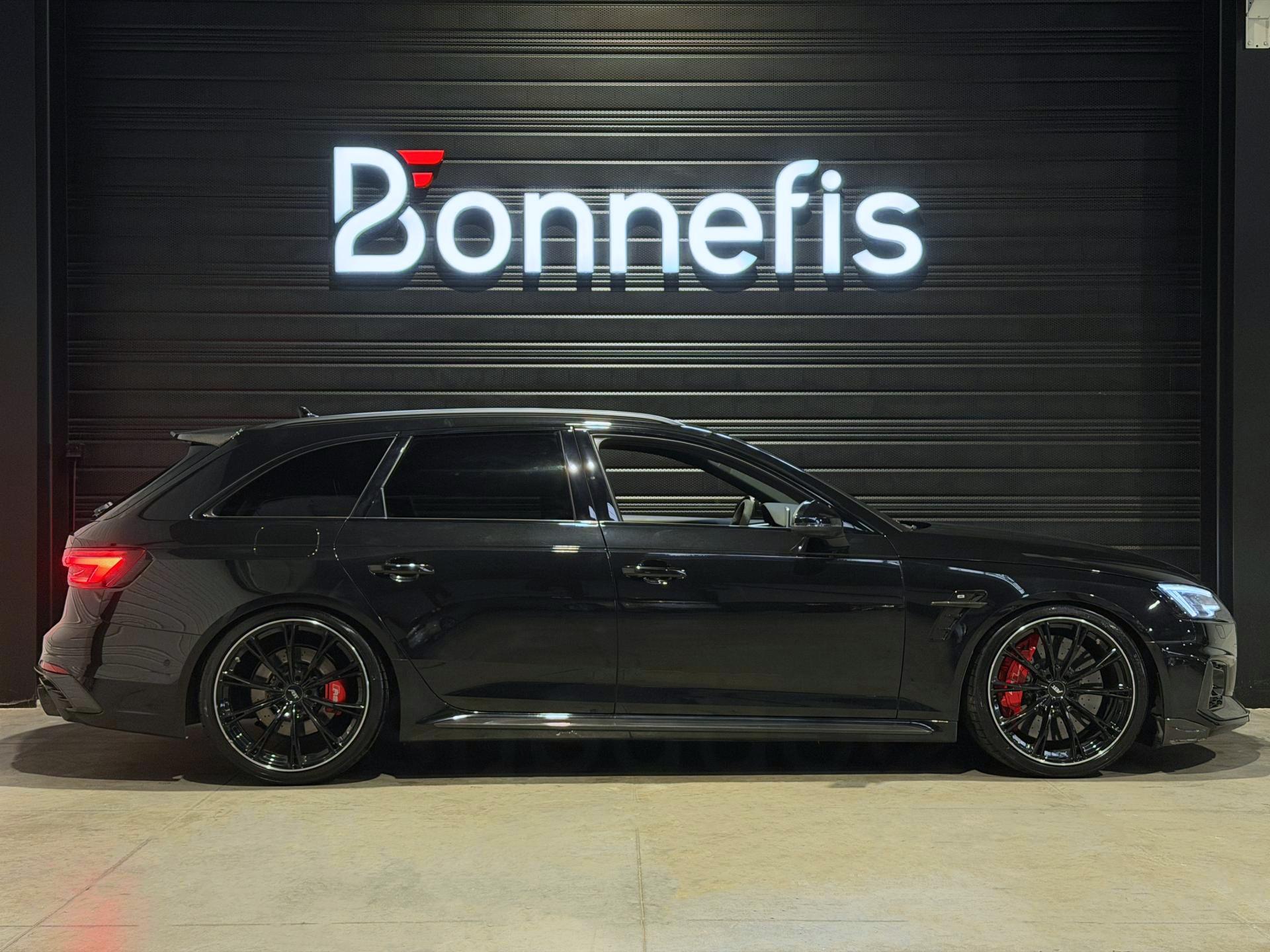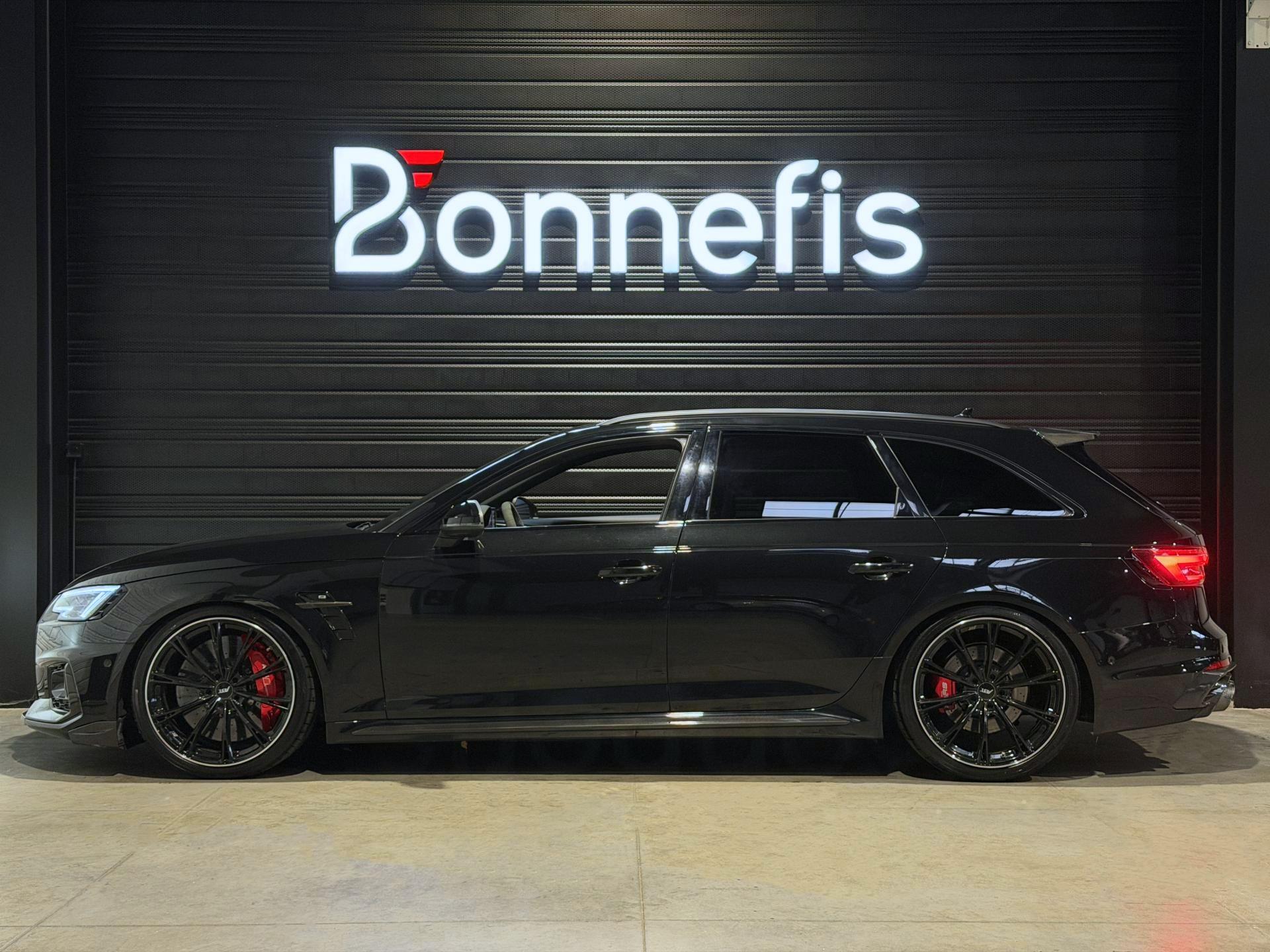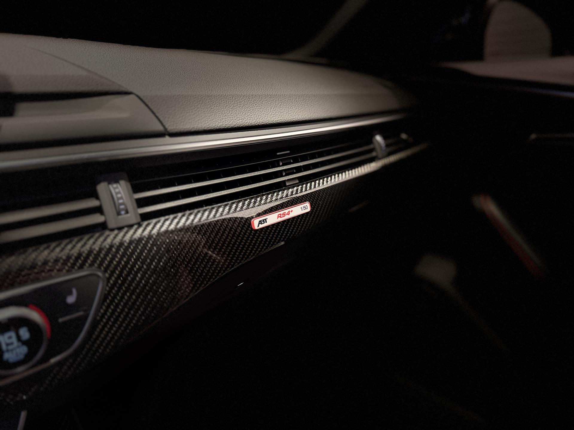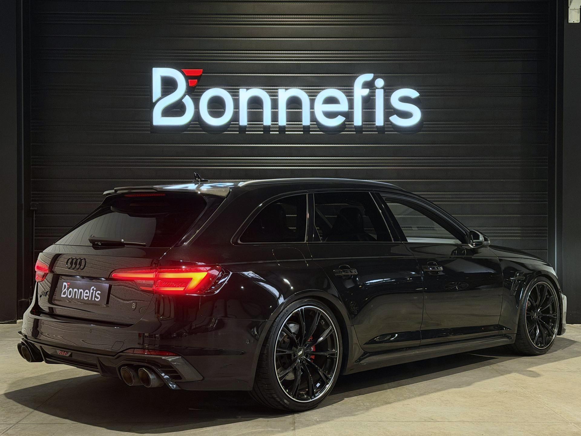 Audi RS4 Avant ABT+ 2.9 TFSI 510Ch Quattro Tiptronic 8, extérieur noir métallisée ( 841 € ), intérieur noit cuir Nappa fin ( 8 75 € ), 34 cv, 5 portes, première mise en circulation le 13/08/2019.