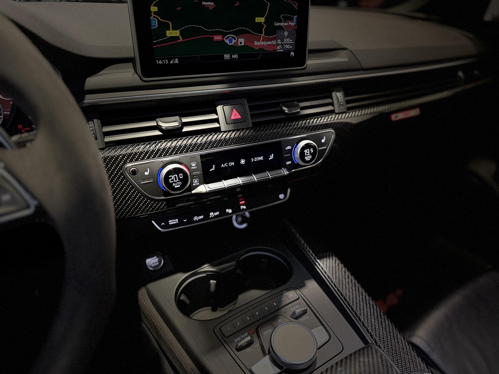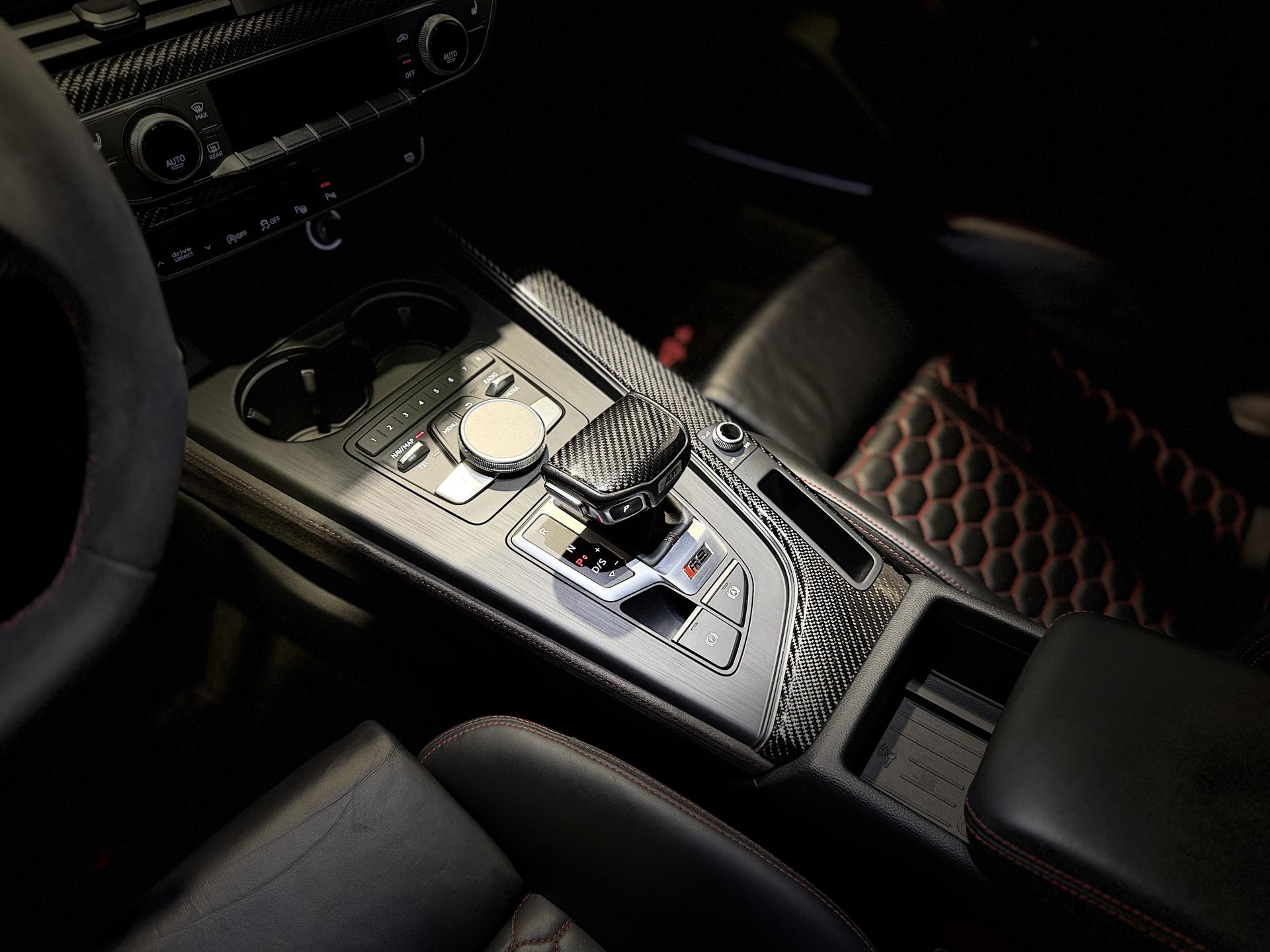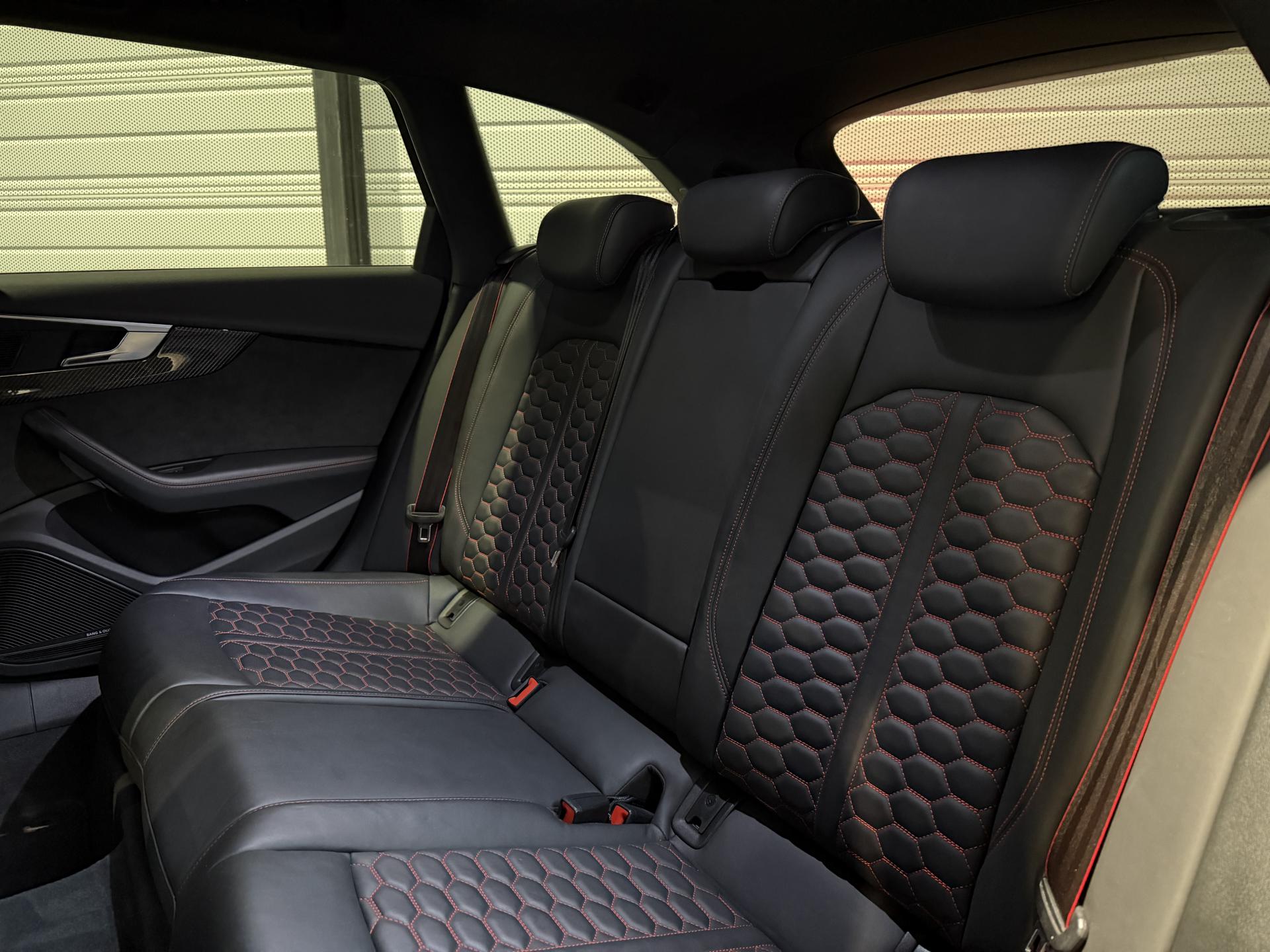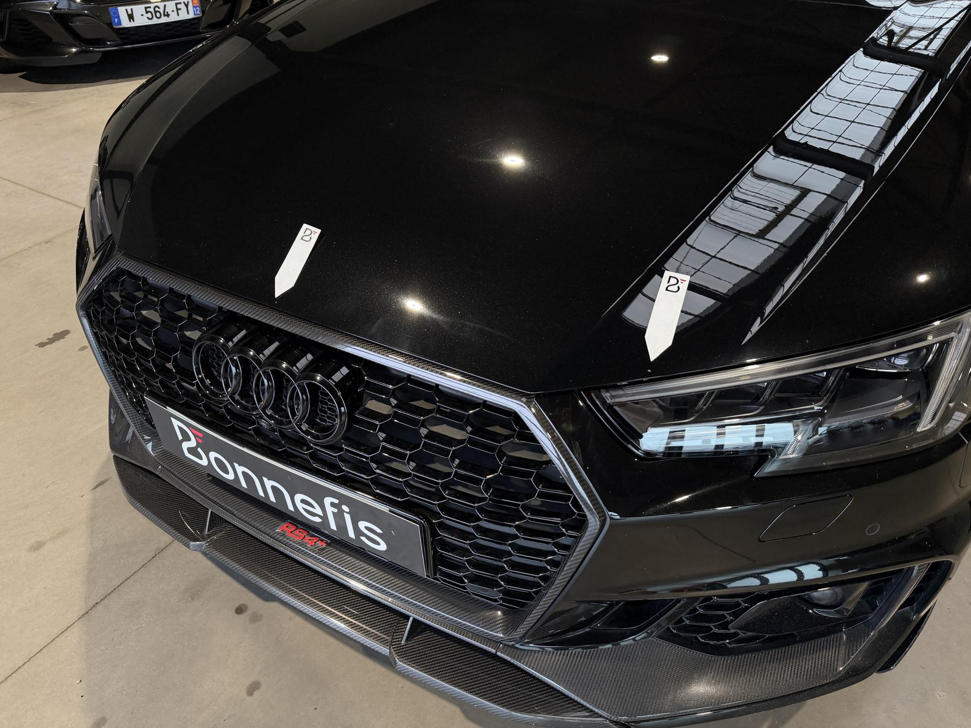 Nombreuses options : GPS, caméra périphériques à 360°, radars avants et arrières de détection d'obstacles, échappement Sport RS incluant sonorité encore plus travaillée et sorties d'échappement noires ( 1 250 € ), applications décoratives en Carbone ( 1 000 € ), affichage tête haute ( 991 € ), Bang & Olufsen Sound System avec son en 3D ( 858 € ), vitres surteintées (Privacy glass) : vitrage acoustique pour les vitres de portières AV, ainsi que vitres latérales AR et lunette AR surteintées ( 483 € ), réception radio numérique (DAB) ajoute à l'offre de radios analogiques la réception de stations numériques selon le standard DAB, incluant DAB+ et DMB Audio ( 341 € ), anneaux Audi et monogrammes en Noir Brillant ( 308 € ), coques de rétroviseurs extérieurs en couleur carrosserie ( 108 € ), fixation pour sièges enfants ISOFIX pour le siège passager AV avec commande de sécurité enfant électrique sur les portières AR et commande de désactivation de l’airbag passager AV ( 83 € ), Audi Hold Assist maintient le véhicule à l'arrêt aussi bien en côte qu’en descente au sein de la circulation routière, sans limite de temps ( 83 € ), Audi Park Assist incluant Audi Parking System Plus, Audi Pre Sense Front avec Assistant d'évitement collision et Assistant changement direction, châssis Sport RS plus avec Dynamic Ride Control (DRC) réglable sur 3 niveaux: comfort, auto, dynamic, Quattro avec différentiel Sport, différentiel Quattro Sport, répartition dynamique de couple droite/gauche sur l'essieu AR, direction Dynamique, Pack Audi Lane Assist, Adaptive Cruise Control Stop & Go avec assistant embouteillage ( ACC / Active Cruise Control ), Phares Audi Matrix LED, augmentation de la vitesse de pointe à 280 km/h, becquet AV, inserts dans les bas de caisse, becquet AR et insert dans le diffuseur AR en carbone, encadrement de calandre, lame AV et baguettes décoratives sur les vitres latérales, partie centrale du diffuseur AR en noir brillant et rampes de pavillon noir mat, rampes de pavillon Noires, système de lecture des panneaux de signalisation par caméra, assistant de conduite efficiente, Audi Park Assist, porte-boissons dans l'accoudoir central AR, 3 profils de couleur prédéfinis et un profil de couleur personnalisable via l'Audi drive select aux parties suivantes : porte-boissons à l'AV, zone des pieds à l’AV, vide-poches de portières et éclairage d'ambiance des portières, filet dans le logement gauche et sangles de serrage à gauche et à droite (dans le coffre), filet de coffre, filet de rangement au dos des sièges AV, vide-poches côté conducteur, boîte à gants verrouillable, ...