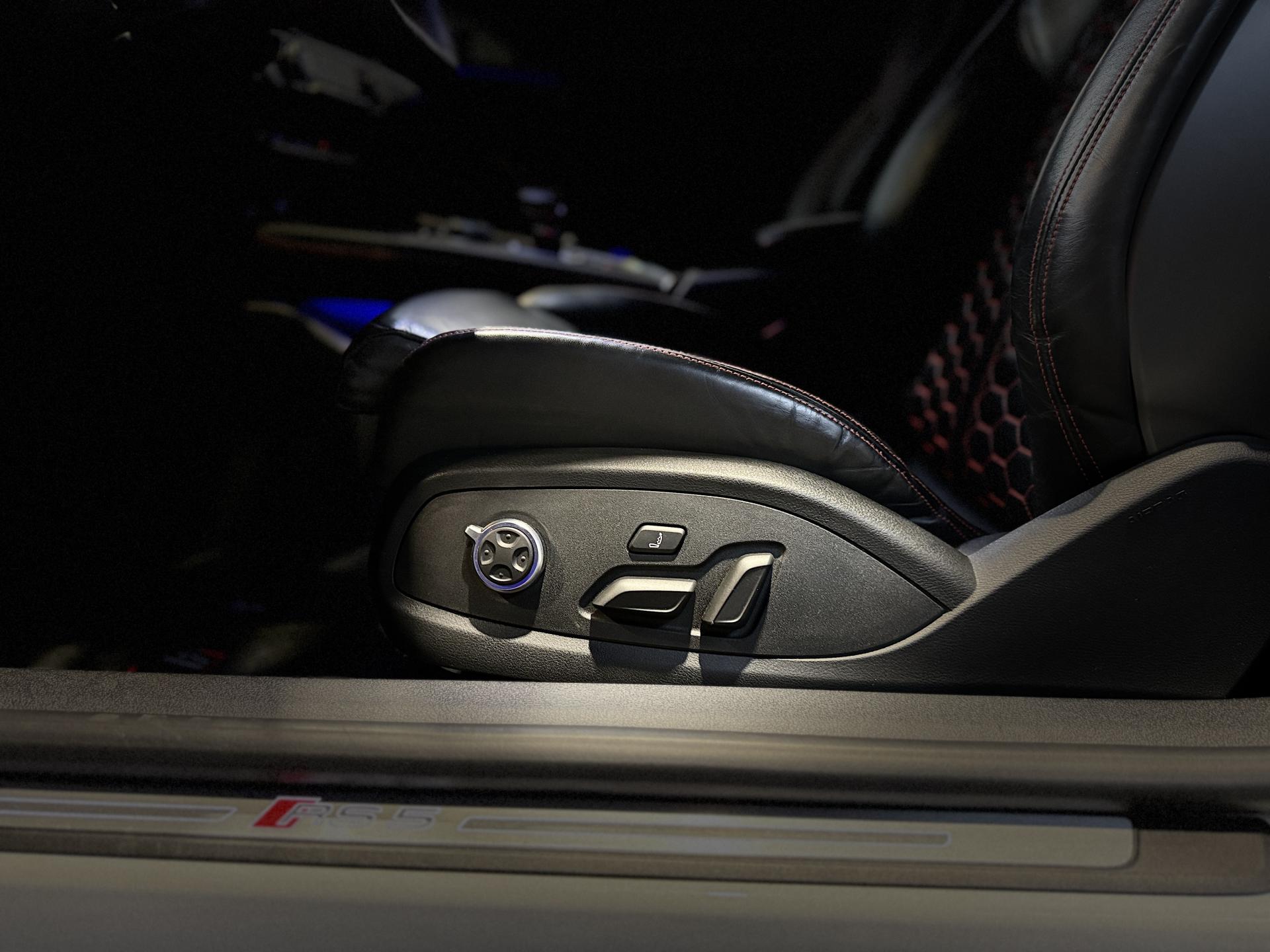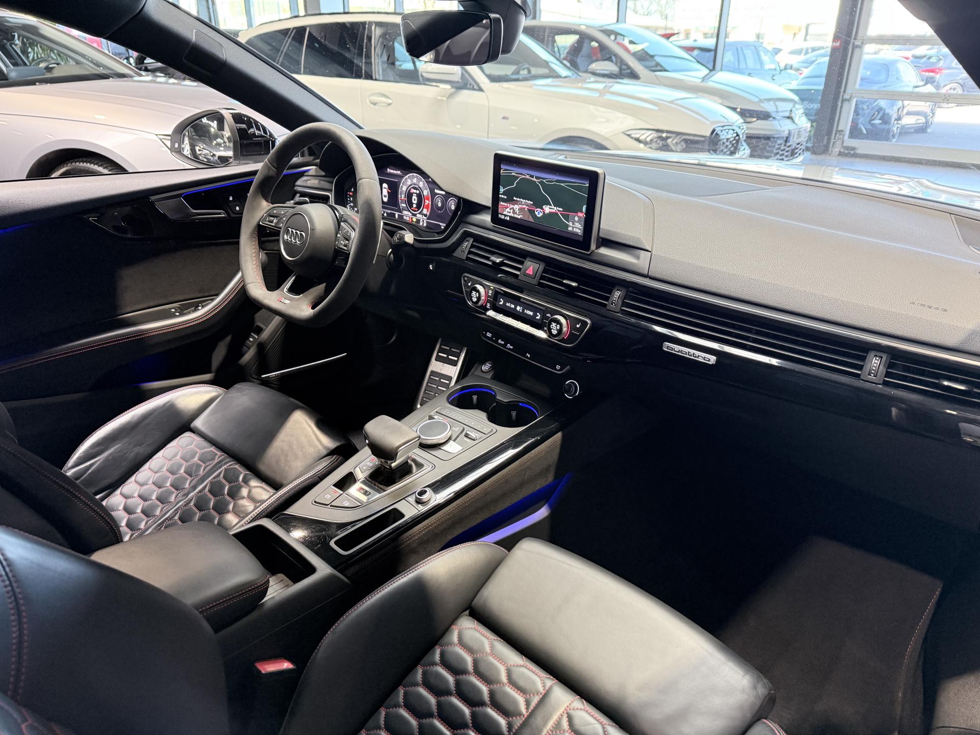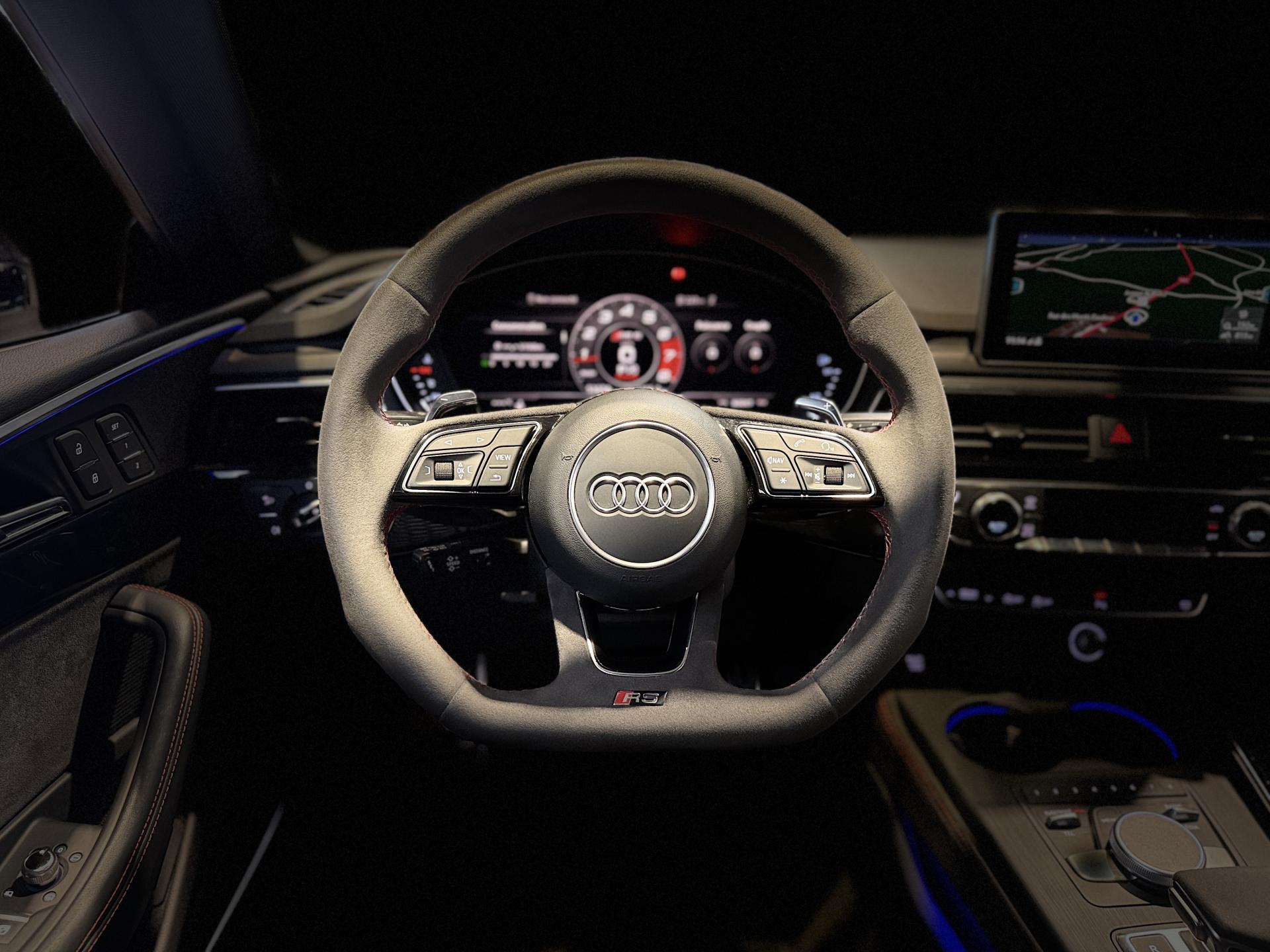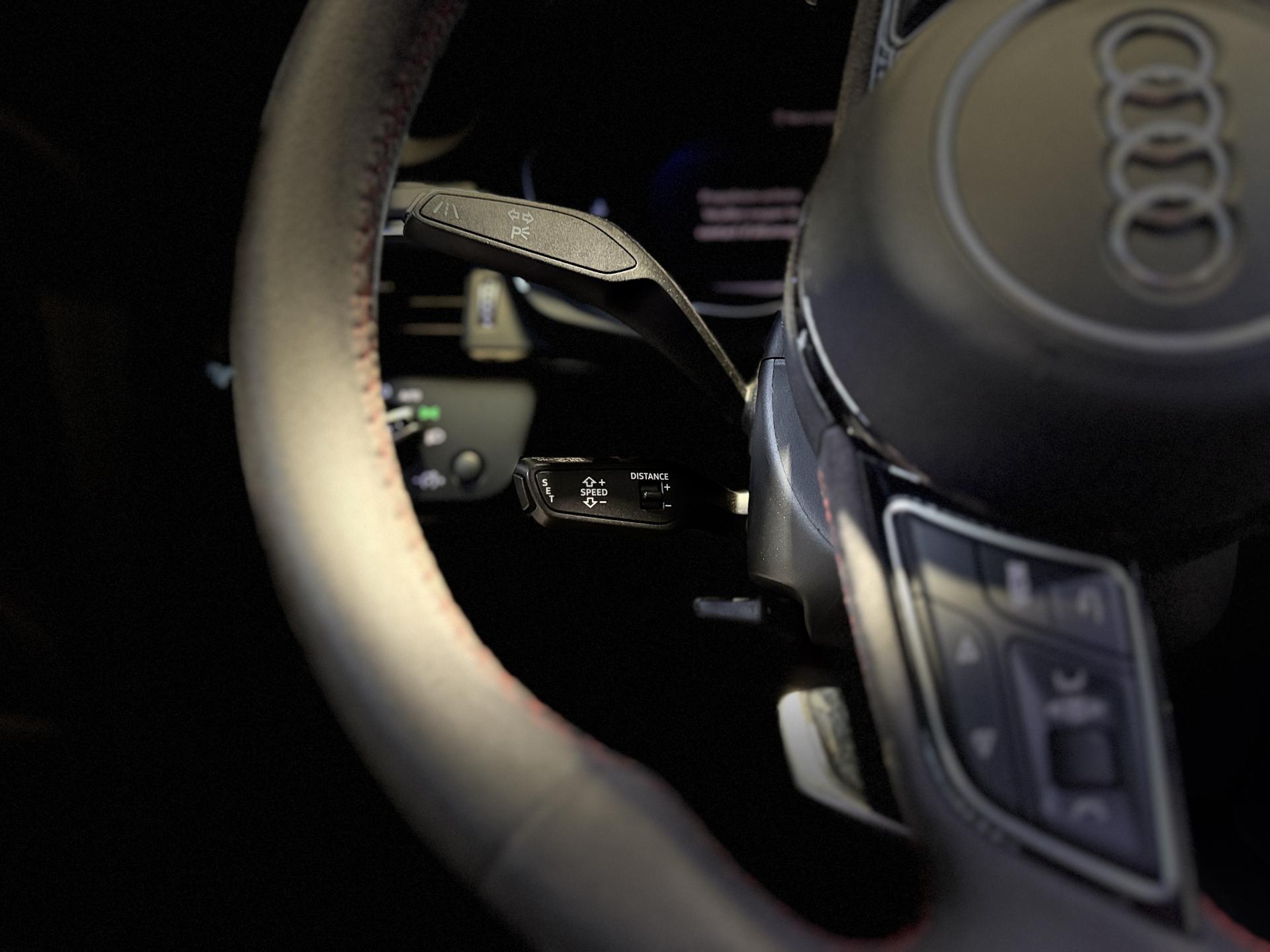 Nombreuses options : GPS, caméra de recul, radars avants et arrières de détection d'obstacles, Vitesse maximale relevée à 280km/h ( 1 500 EUR ), Différentiel Quattro Sport ( 1 358 EUR ), Jantes aluminium forgé, 5 branches trapézoïdales, noir anthracite brillant 20 ( 1 375 EUR ), Echappement Sport incluant sonorité encore plus travaillée et sorties d'échappement noires ( 1 250 EUR ), Bang & Olufsen Sound System avec son en 3D ( 858 EUR ), Clé confort + Alarme antivol avec fonction safelock +fonction d'ouverture du coffre à l'aide du pied ( 483 EUR ), Vitres surteintées (Privacy Glass) ( 425 EUR ), Réception radio numérique (DAB) ( 341 EUR ), Etriers de frein laqués rouge brillant avec inscription RS à l'AV et à l'AR ( 308 EUR ), Système de lecture des panneaux de signalisation par caméra ( 308 EUR ), Applications décoratives en Piano laqué noir ( 216 EUR ), Coques de rétroviseurs noir brillant ( 108 EUR ), Accoudoirs de porte en cuir Nappa fin noir avec surpiqûres rouge Dynamite, Active Lane Assist, Adaptive Cruise Control stop & go avec Assistant de conduite en embouteillage, Assistant de conduite efficiente, Audi Pre Sense Front avec Assistant d'évitement collision et Assistant changement direction, Augmentation de la vitesse de pointe à 280 km/h, Baguettes décoratives sur les vitres latérales noires, Becquet AV, Becquet AV en noir brillant, Ceintures de sécurité noires avec bordure rouge, Châssis Sport RS plus avec Dynamic Ride Control (DRC) réglable sur 3 niveaux: comfort, auto, dynamic, Diffuseur AR noir brillant, Direction Dynamique, Eléments de commande et repose genoux en Alcantara noir avec surpiqûres rouge Dynamite, Encadrement de calandre noir brillant, Lecture des panneaux de signalisation, Pack Eclairage, Phares Audi Matrix LED, Quattro avec différentiel Sport : sur la base d?une transmission intégrale permanente quattro à répartition asymétrique et dynamique du couple, le différentiel Sport régulé électroniquement répartit différemment la pu, Tapis de sol noir avec surpiqûres rouge Dynamite et inscription RS AV, ...