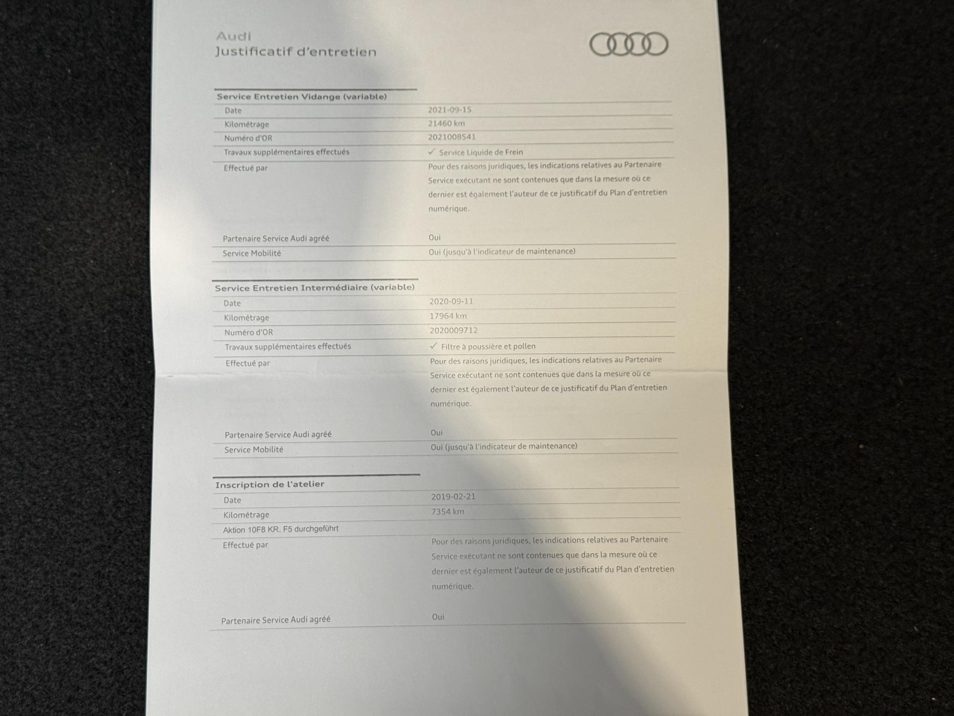 - 4ème entretien fait le 15/09/2021 à 21 460Km chez Audi. ( Vidange moteur + liquide de frein )