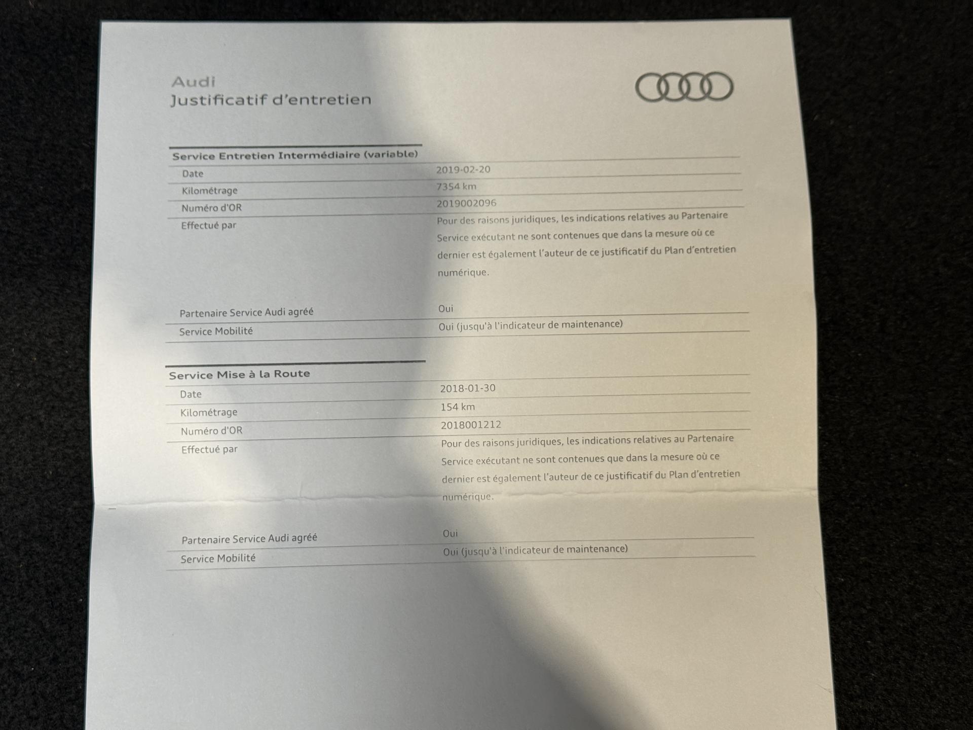 - 1er entretien fait le 30/01/2018 à 154Km chez Audi. ( Contrôle à la livraison )