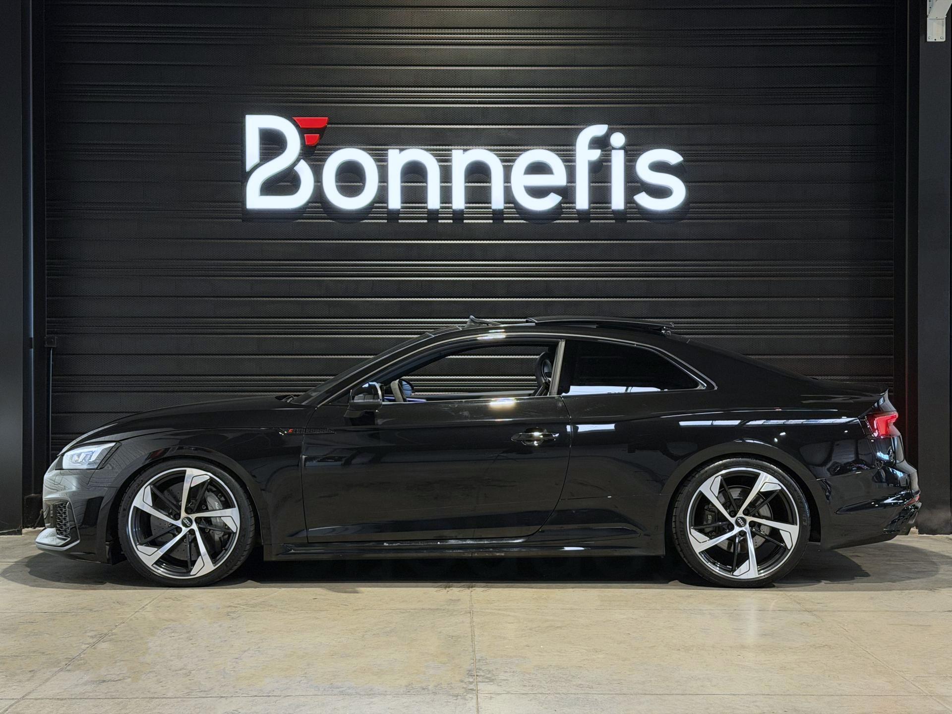 Audi RS5 Coupé 2.9 V6 TFSI 450Ch Tiptronic 8 quattro, extérieur noir métallisée ( 841 € ), intérieur cuir nappa fin ( 875 € ), 34 cv, 5 portes, première mise en circulation le 29/09/2017.