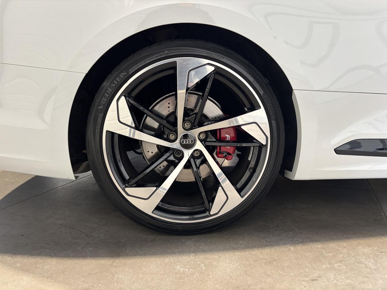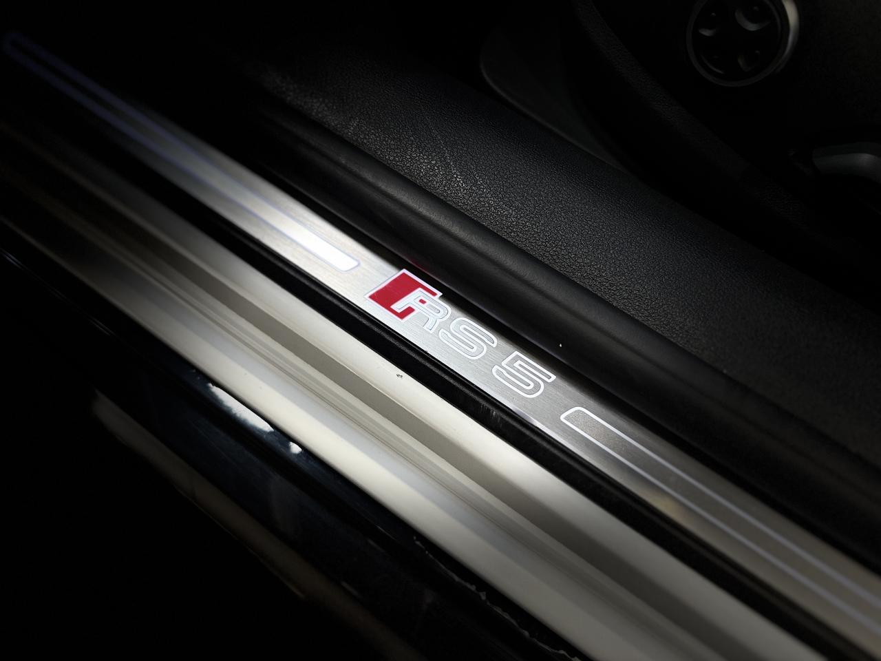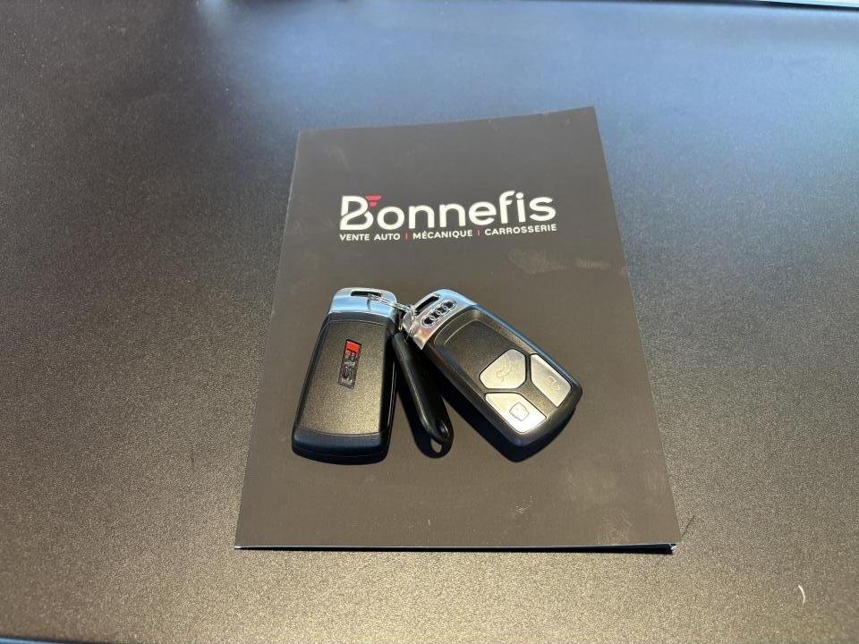 Nombreuses options : GPS, caméra de recul, radars avants et arrières de détection d'obstacles, Vitesse maximale relevée à 280km/h ( 1 500 € ), Jantes aluminium forgé 20'' ( 1 375 € ), Différentiel Quattro Sport ( 1 358 € ), Echappement Sport incluant sonorité encore plus travaillée et sorties d'échappement noires ( 1 250 € ), Bang & Olufsen Sound System avec son en 3D ( 858 € ), Peinture métallisée ( 841 € ), Sellerie en cuir Nappa fin ( 875 € ), Clé confort + Alarme antivol avec fonction safelock + fonction d'ouverture du coffre à l'aide du pied ( 483 € ), Vitres surteintées (Privacy Glass) ( 425 € ), Réception radio numérique (DAB) ( 341 € ), Système de lecture des panneaux de signalisation par caméra ( 308 € ), Etriers de frein laqués rouge brillant avec inscription RS à l'AV et à l'AR ( 308 € ), Applications décoratives en Piano laqué noir ( 216 € ), Coques de rétroviseurs noir brillant ( 108 € ), 3 profils de couleur prédéfinis et un profil de couleur personnalisable via l'Audi drive select aux parties suivantes : porte-boissons à l'AV, zone des pieds à l’AV, vide-poches de portières et éclairage d'ambiance des portières, Accoudoirs de porte en cuir Nappa fin noir avec surpiqûres rouge Dynamite, Active Lane Assist, ACC / Adaptive Cruise Control stop & go avec Assistant de conduite en embouteillage, Assistant de conduite efficiente, Audi Pre Sense Front avec Assistant d'évitement collision et Assistant changement direction, Augmentation de la vitesse de pointe à 280 km/h, Baguettes décoratives sur les vitres latérales noires, Becquet AV, Becquet AV en noir brillant, Ceintures de sécurité noires avec bordure rouge, Châssis Sport RS plus avec Dynamic Ride Control (DRC) réglable sur 3 niveaux: comfort, auto, dynamic, Diffuseur AR noir brillant, Direction Dynamique, Eléments de commande et repose genoux en Alcantara noir avec surpiqûres rouge Dynamite, Encadrement de calandre noir brillant, Lecture des panneaux de signalisation, Pack Eclairage, Phares Audi Matrix LED, Quattro avec différentiel Sport : sur la base d’une transmission intégrale permanente quattro à répartition asymétrique et dynamique du couple, le différentiel Sport régulé électroniquement répartit différemment la puissance, Tapis de sol noir avec surpiqûres rouge Dynamite et inscription RS AV...