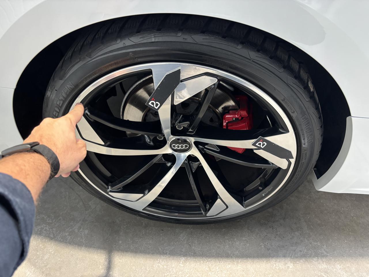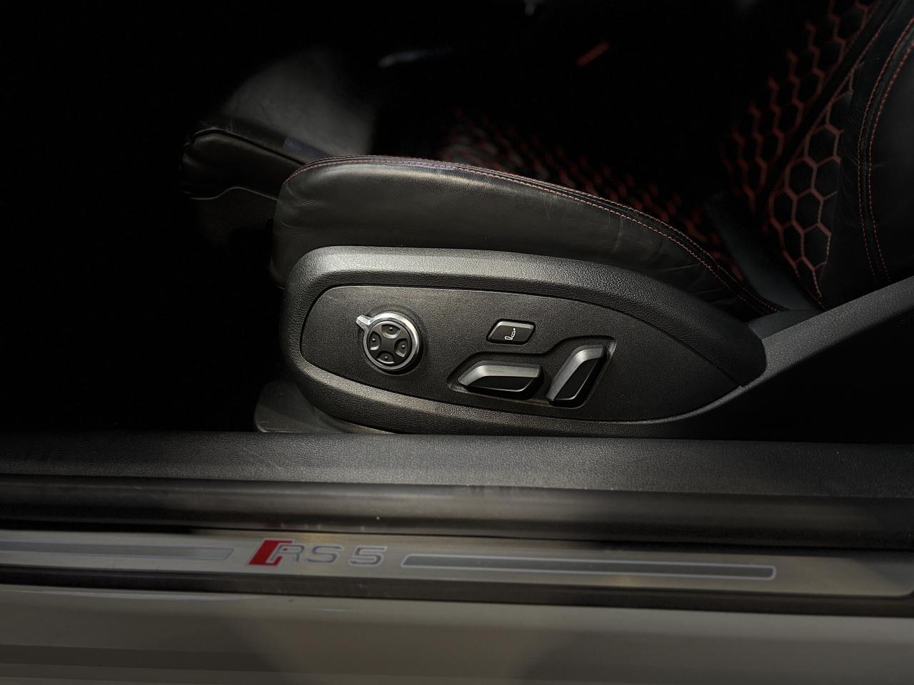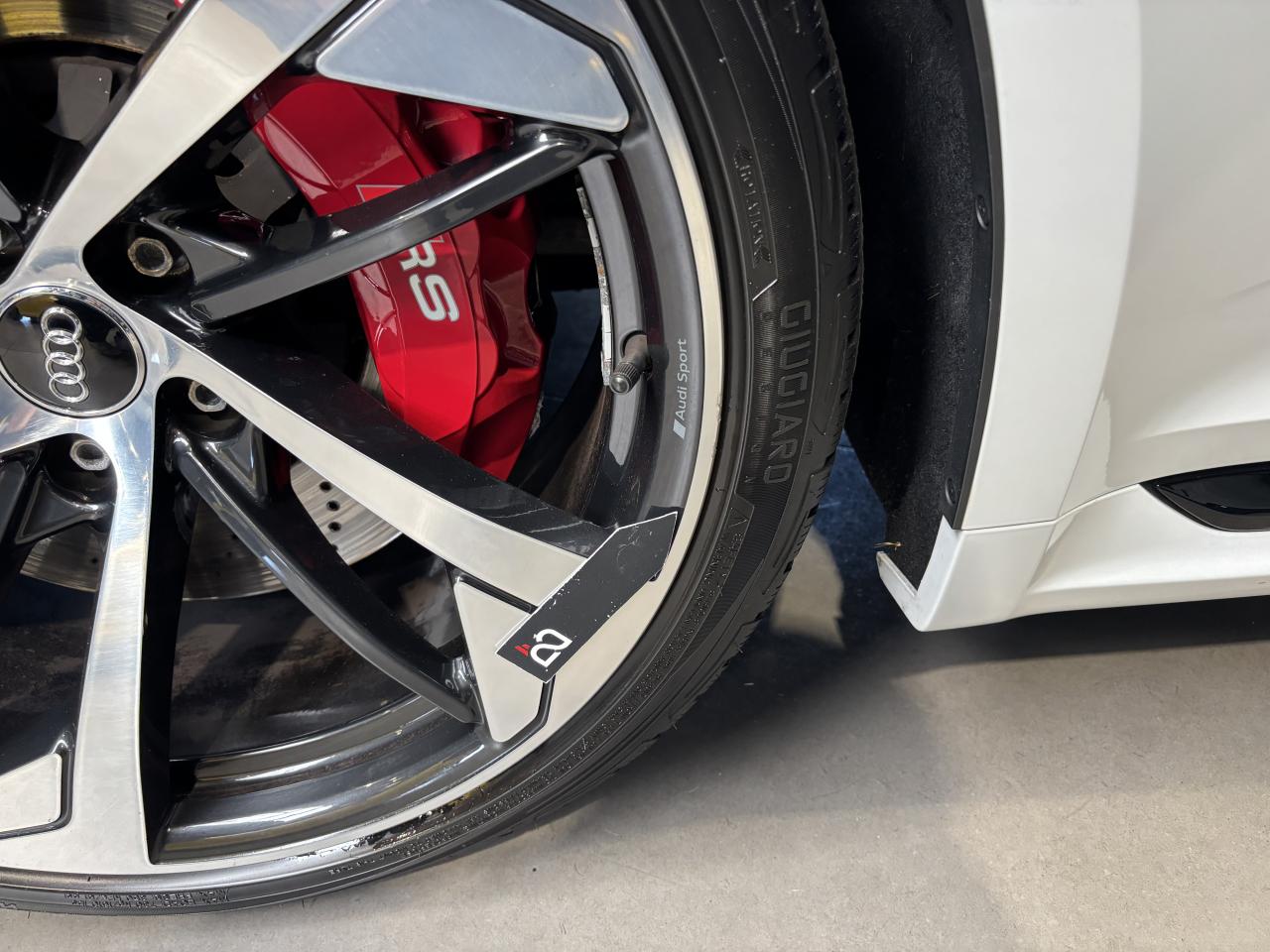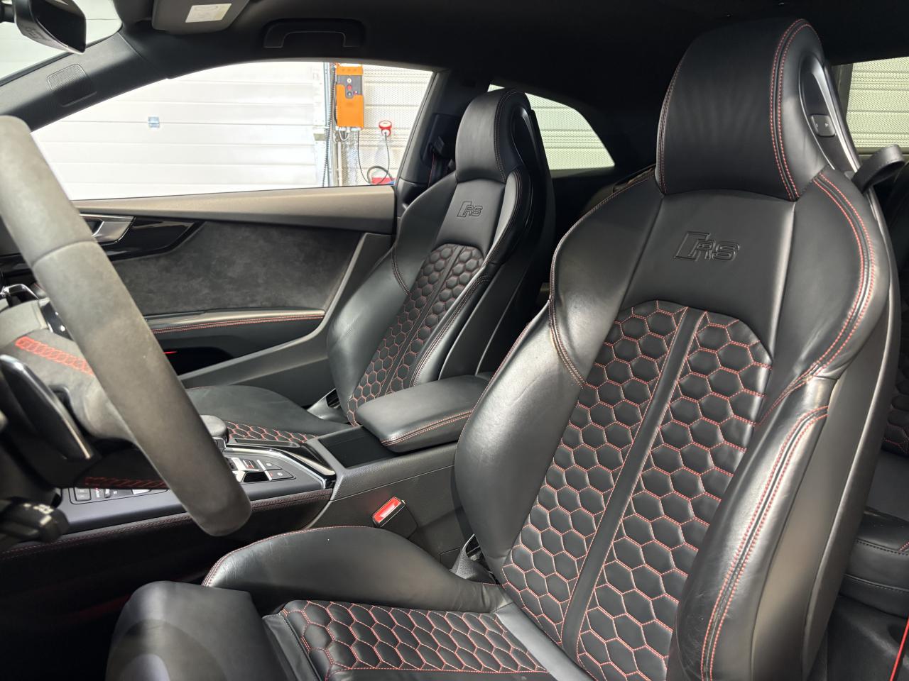 Nombreuses options : GPS, caméra de recul, radars avants et arrières de détection d'obstacles, Vitesse maximale relevée à 280km/h ( 1 500 € ), Jantes aluminium forgé 20'' ( 1 375 € ), Différentiel Quattro Sport ( 1 358 € ), Echappement Sport incluant sonorité encore plus travaillée et sorties d'échappement noires ( 1 250 € ), Bang & Olufsen Sound System avec son en 3D ( 858 € ), Peinture métallisée ( 841 € ), Sellerie en cuir Nappa fin ( 875 € ), Clé confort + Alarme antivol avec fonction safelock + fonction d'ouverture du coffre à l'aide du pied ( 483 € ), Vitres surteintées (Privacy Glass) ( 425 € ), Réception radio numérique (DAB) ( 341 € ), Système de lecture des panneaux de signalisation par caméra ( 308 € ), Etriers de frein laqués rouge brillant avec inscription RS à l'AV et à l'AR ( 308 € ), Applications décoratives en Piano laqué noir ( 216 € ), Coques de rétroviseurs noir brillant ( 108 € ), 3 profils de couleur prédéfinis et un profil de couleur personnalisable via l'Audi drive select aux parties suivantes : porte-boissons à l'AV, zone des pieds à l’AV, vide-poches de portières et éclairage d'ambiance des portières, Accoudoirs de porte en cuir Nappa fin noir avec surpiqûres rouge Dynamite, Active Lane Assist, ACC / Adaptive Cruise Control stop & go avec Assistant de conduite en embouteillage, Assistant de conduite efficiente, Audi Pre Sense Front avec Assistant d'évitement collision et Assistant changement direction, Augmentation de la vitesse de pointe à 280 km/h, Baguettes décoratives sur les vitres latérales noires, Becquet AV, Becquet AV en noir brillant, Ceintures de sécurité noires avec bordure rouge, Châssis Sport RS plus avec Dynamic Ride Control (DRC) réglable sur 3 niveaux: comfort, auto, dynamic, Diffuseur AR noir brillant, Direction Dynamique, Eléments de commande et repose genoux en Alcantara noir avec surpiqûres rouge Dynamite, Encadrement de calandre noir brillant, Lecture des panneaux de signalisation, Pack Eclairage, Phares Audi Matrix LED, Quattro avec différentiel Sport : sur la base d’une transmission intégrale permanente quattro à répartition asymétrique et dynamique du couple, le différentiel Sport régulé électroniquement répartit différemment la puissance, Tapis de sol noir avec surpiqûres rouge Dynamite et inscription RS AV...