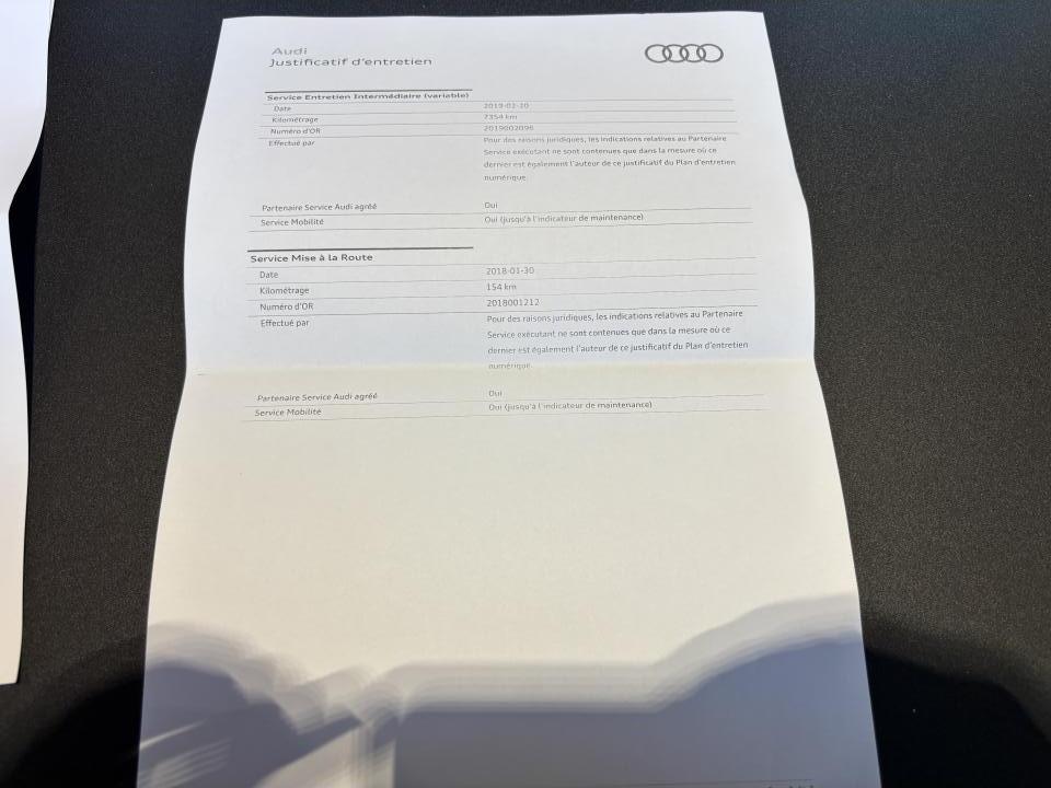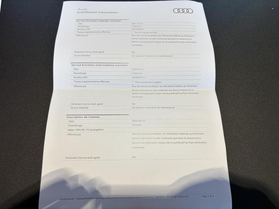 - 1er entretien fait le 20/02/2019 à 7 354Km chez Audi. ( Vidange moteur )