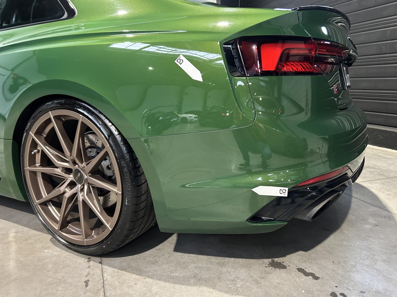 Audi RS5 Coupé 2.9 V6 TFSI 450Ch Tiptronic 8 quattro, 34 cv, 5 portes, vert sonoma métallisée ( 841 € ), première mise en circulation le 02/07/2018.