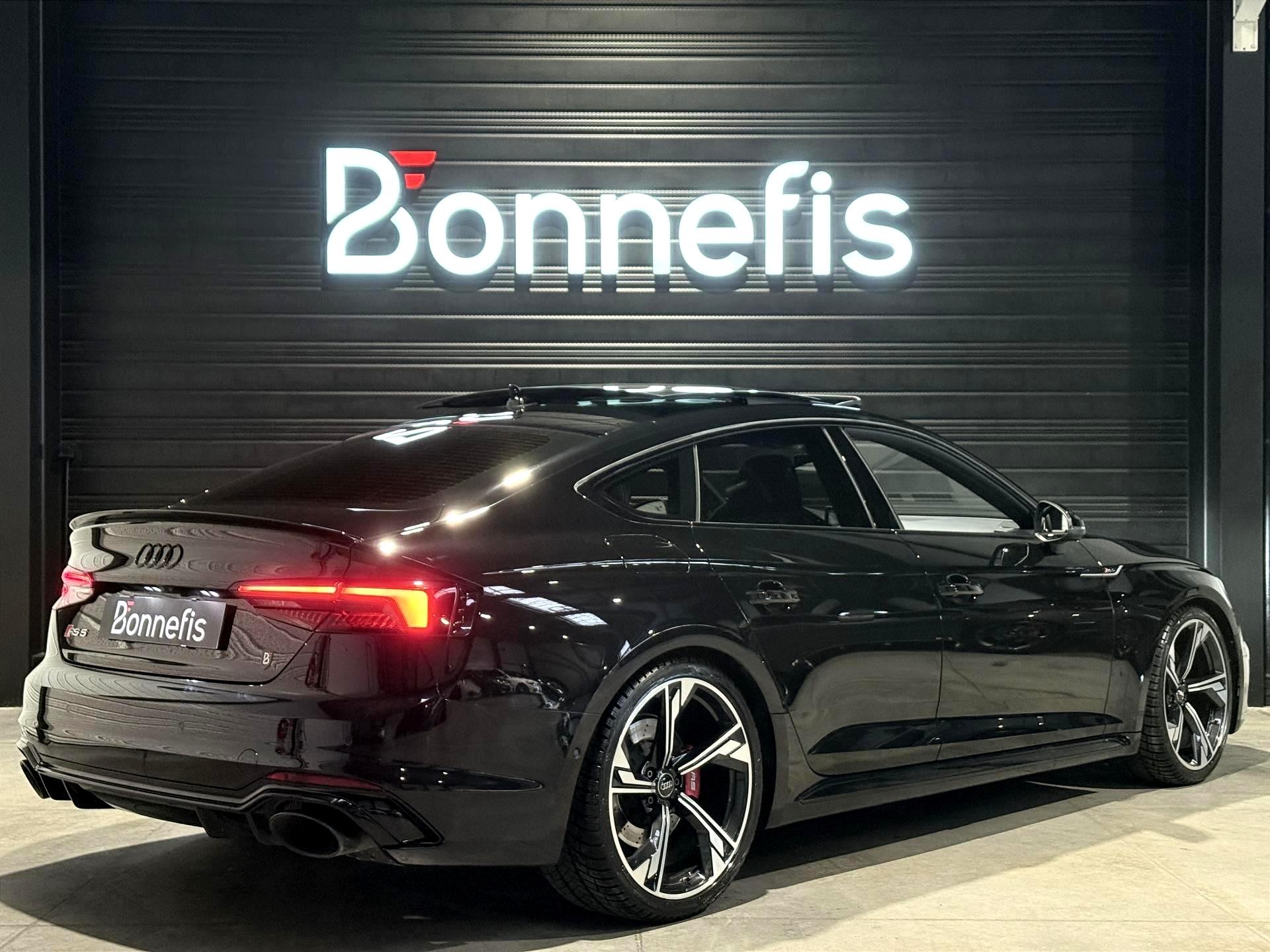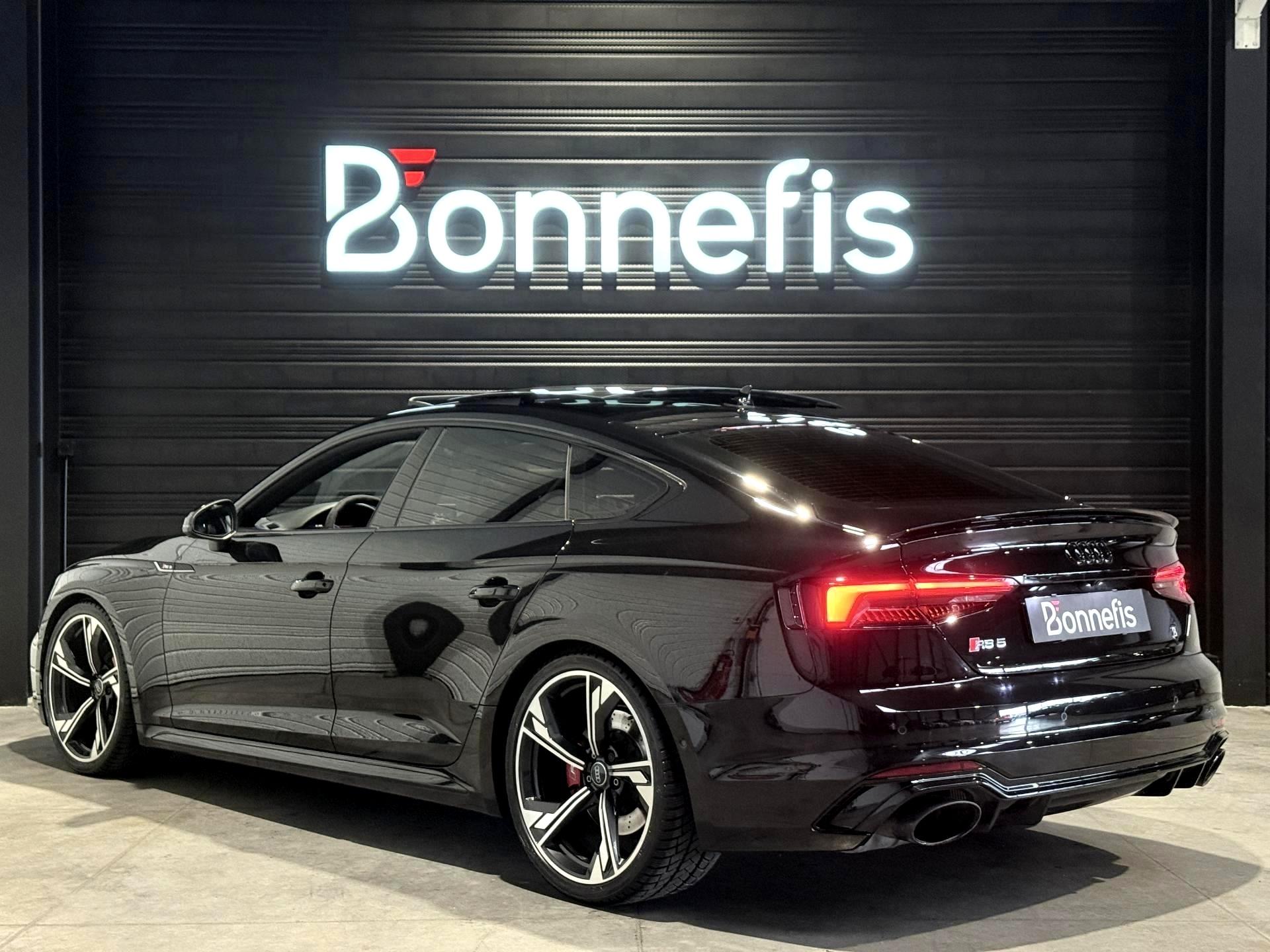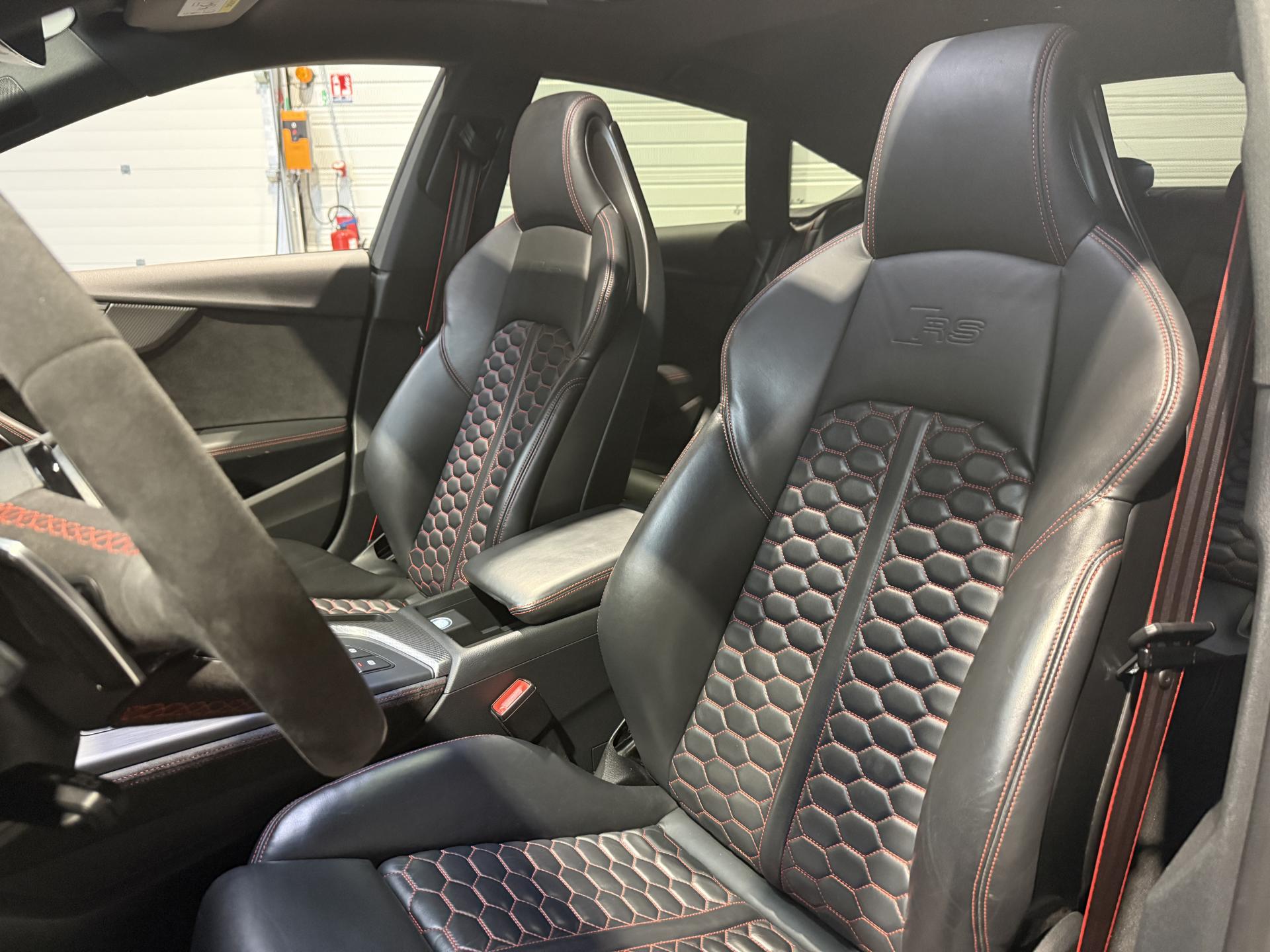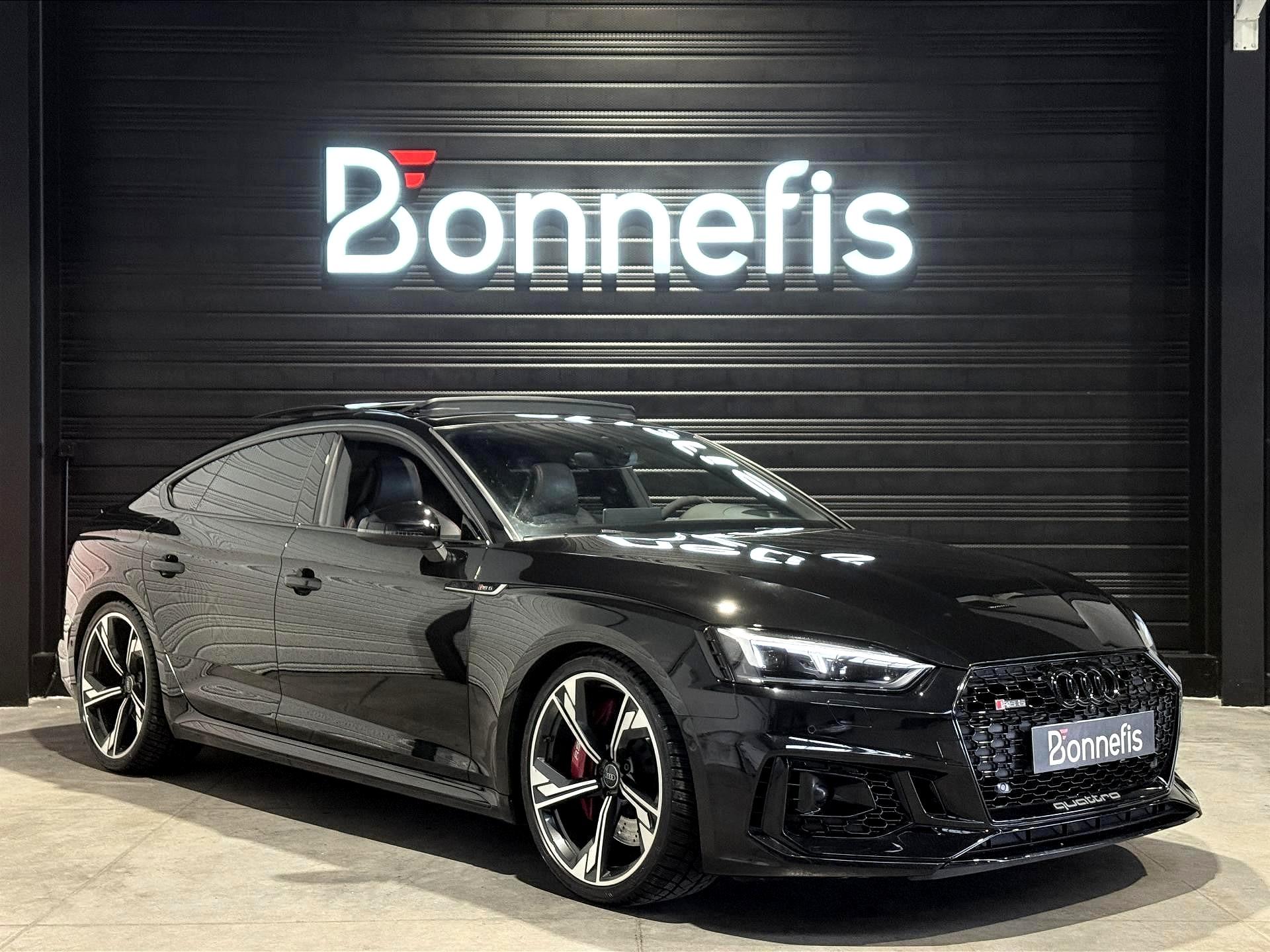 Audi RS5 Sportback 2.9 V6 TFSI 450 Ch Tiptronic 8 quattro, 34 cv, 5 portes, extérieur noir métallisée ( 883 € ), intérieur cuir nappa fin ( 875 € ), première mise en circulation le 15/08/2019.