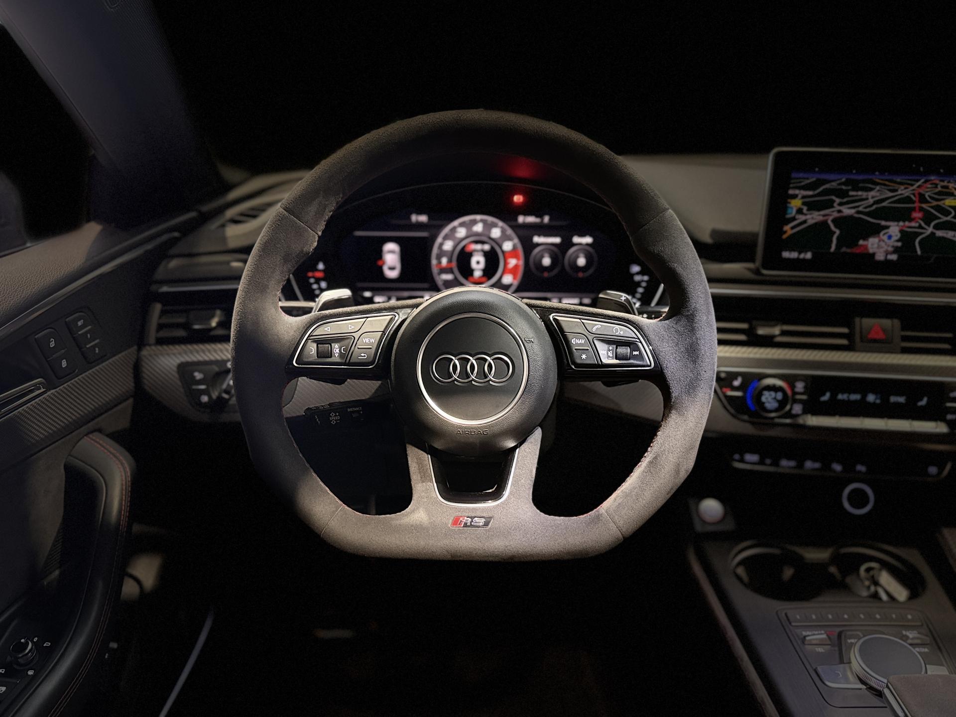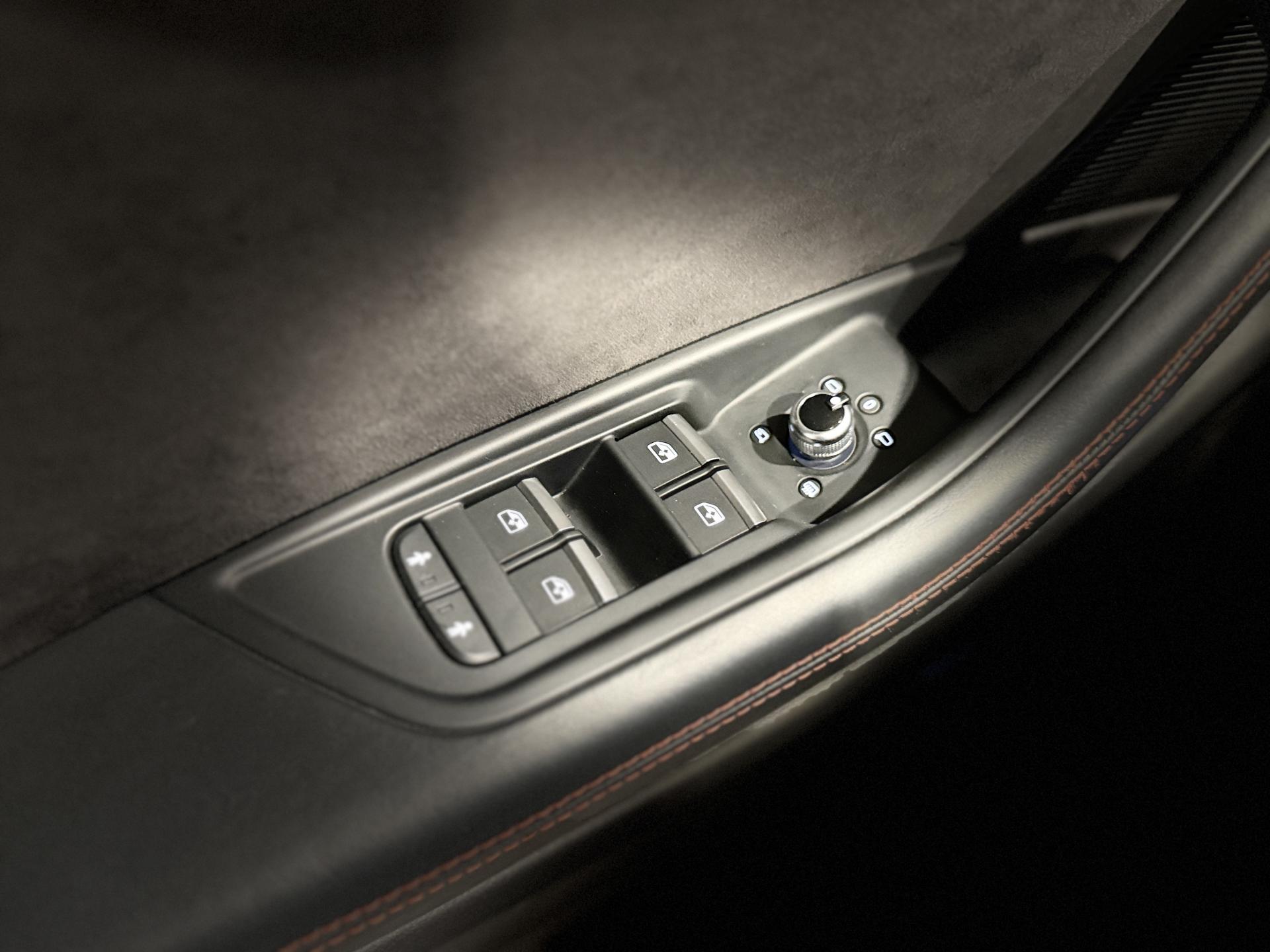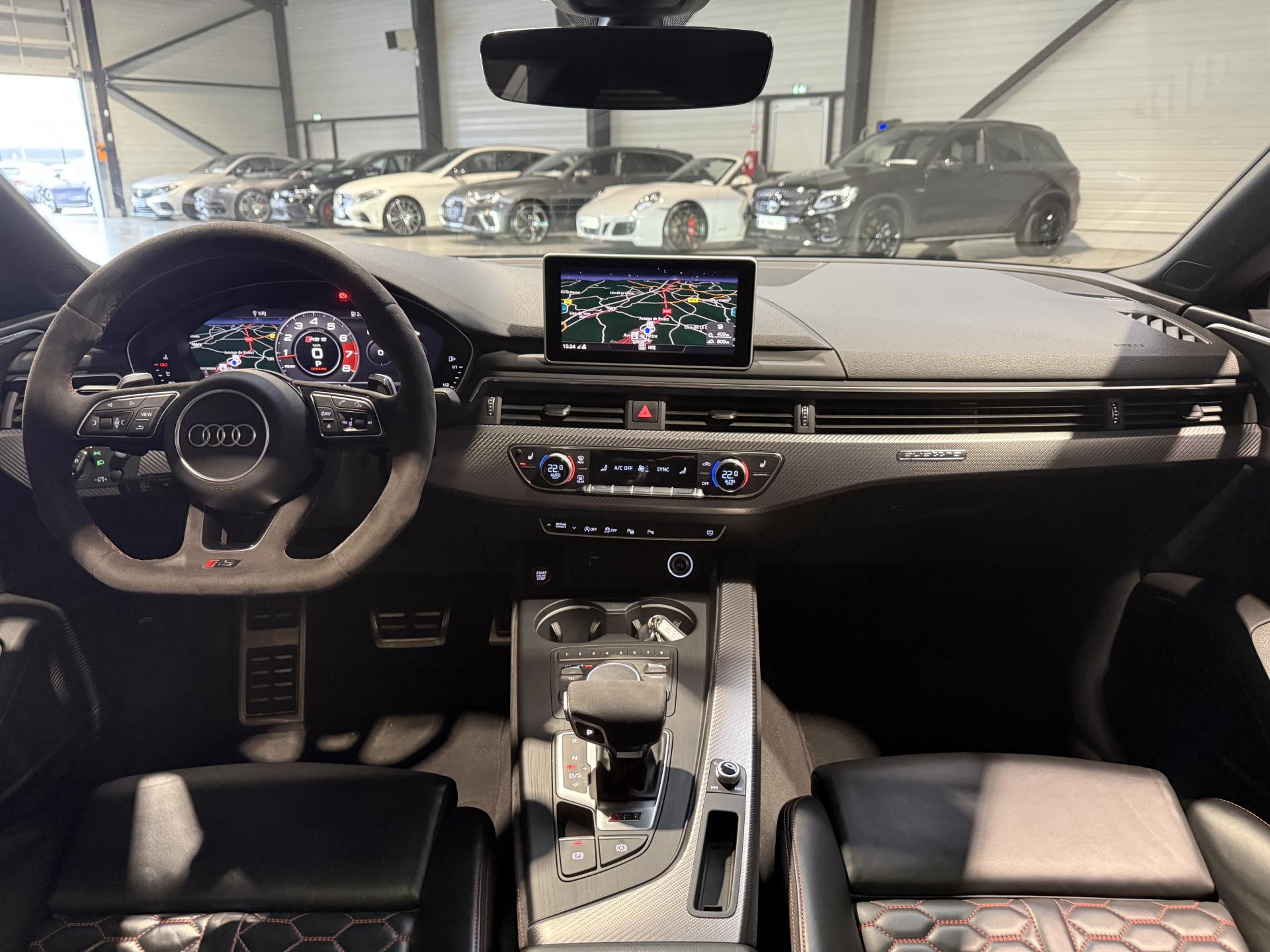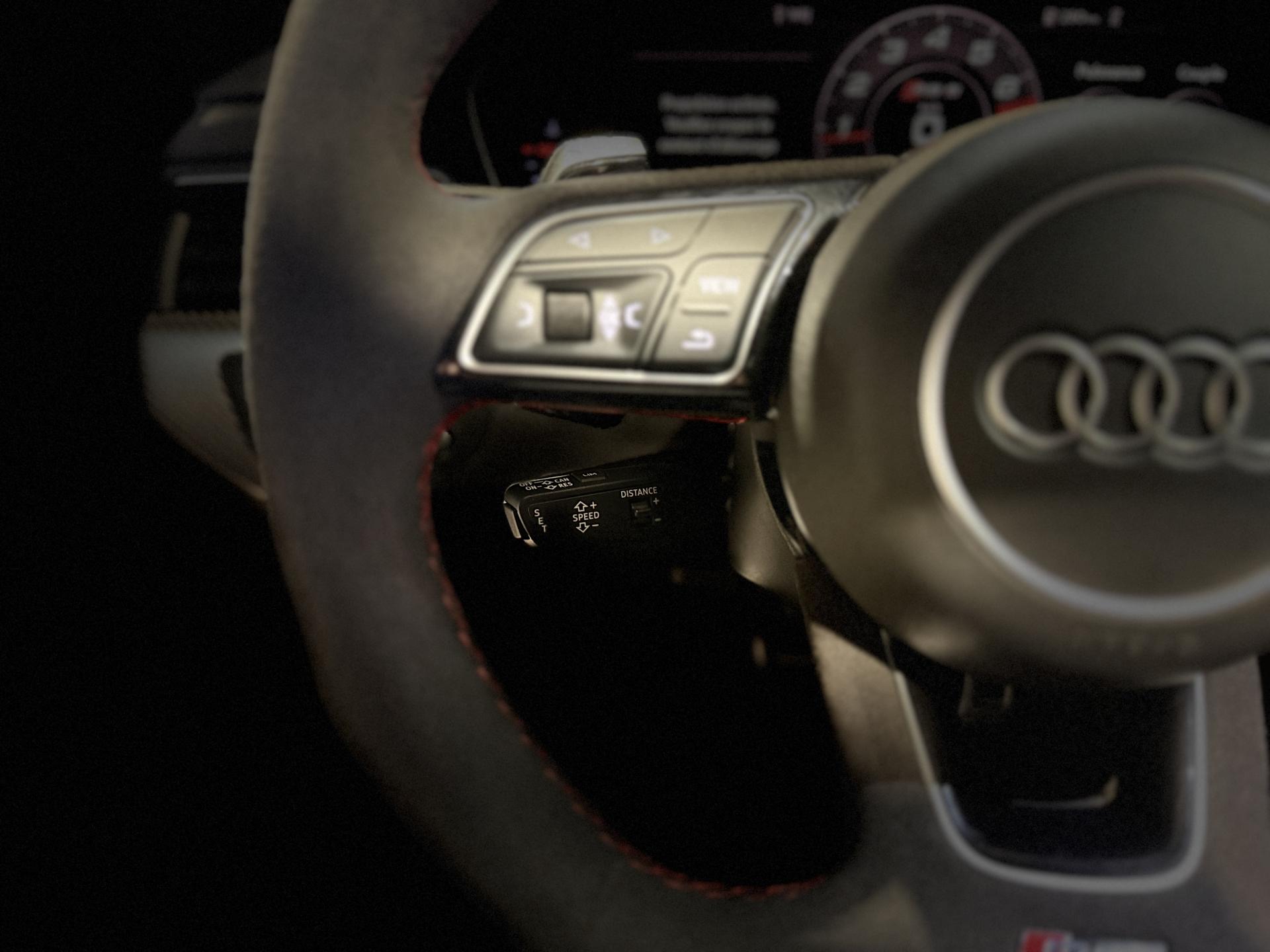 Nombreuses options : GPS, caméra de recul, Apple Carplay, radars avants et arrières de détection d'obstacles, Jantes aluminium forgé 20'' 5 branches en drapeau noir anthracite brillant ( 2 354 € ), Toit ouvrant coulissant/relevable électriquement en verre de sécurité teinté avec pare-soleil réglable en continu ( 1 341 € ), Échappement Sport avec sonorité travaillée et sorties d’échappement noires ( 1 250 € ), Affichage tête haute ( 991 € ), Bang & Olufsen Sound System avec son 3D ( 858 € ), Clé confort avec alarme antivol, fonction safelock et ouverture du coffre par mouvement du pied ( 483 € ), Airbags latéraux AR ( 375 € ), Applications décoratives en Aluminium Racing anthracite ( 350 € ), Réception radio numérique DAB ( 341 € ), Sièges AV et AR chauffants ( 333 € ), Étriers de frein laqués rouge brillant avec inscription RS à l’AV et à l’AR ( 308 € ), Audi Park Assist ( 275 € ), Système de contrôle de pression des pneus ( 250 € ), Commande d’ouverture de porte de garage HomeLink ( 237 € ), Coques de rétroviseurs noir brillant ( 108 € ), Fixation ISOFIX pour siège passager AV avec désactivation de l’airbag et sécurité enfant électrique ( 83 € ), ACC / Active Cruise Control stop & go avec assistant de conduite en embouteillage, Active Lane Assist, Assistant de conduite efficiente, Audi Pre Sense Front avec assistant d’évitement de collision et assistant de changement de direction, Châssis Sport RS plus avec Dynamic Ride Control DRC réglable sur 3 niveaux, Différentiel Quattro Sport, Direction Dynamique, Phares Audi Matrix LED, Pack Éclairage, Lecture des panneaux de signalisation, Système de lecture des panneaux de signalisation par caméra, Vitesse maximale relevée à 280 km/h, Volant 3 branches multifonctions plus en Alcantara avec méplat et logo RS, Accoudoirs de porte en cuir Nappa fin noir avec surpiqûres rouge Dynamite, Éléments de commande et repose-genoux en Alcantara noir avec surpiqûres rouge Dynamite, Ceintures de sécurité noires avec liseré rouge, Tapis de sol noir avec surpiqûres rouge Dynamite et inscription RS AV, Porte-boissons dans l’accoudoir central AR, Boîte à gants verrouillable, Prise 12V dans le coffre, Vide-poches côté conducteur, Crochets pour sacs dans le coffre, Filet de coffre, Filet dans le logement gauche du coffre, Filet de rangement au dos des sièges AV, Éclairage d’ambiance personnalisable avec profils de couleur via Audi drive select, ....