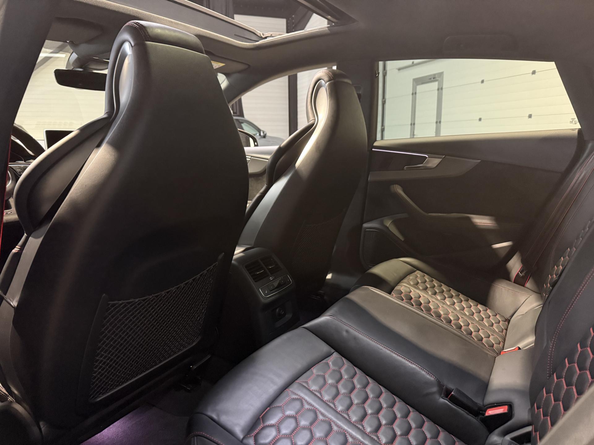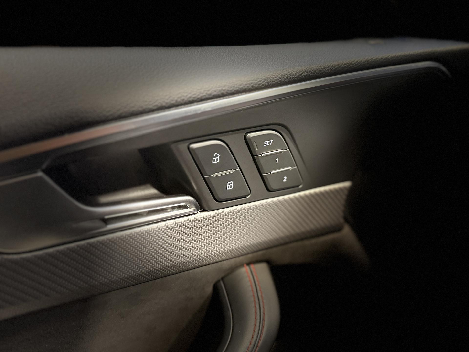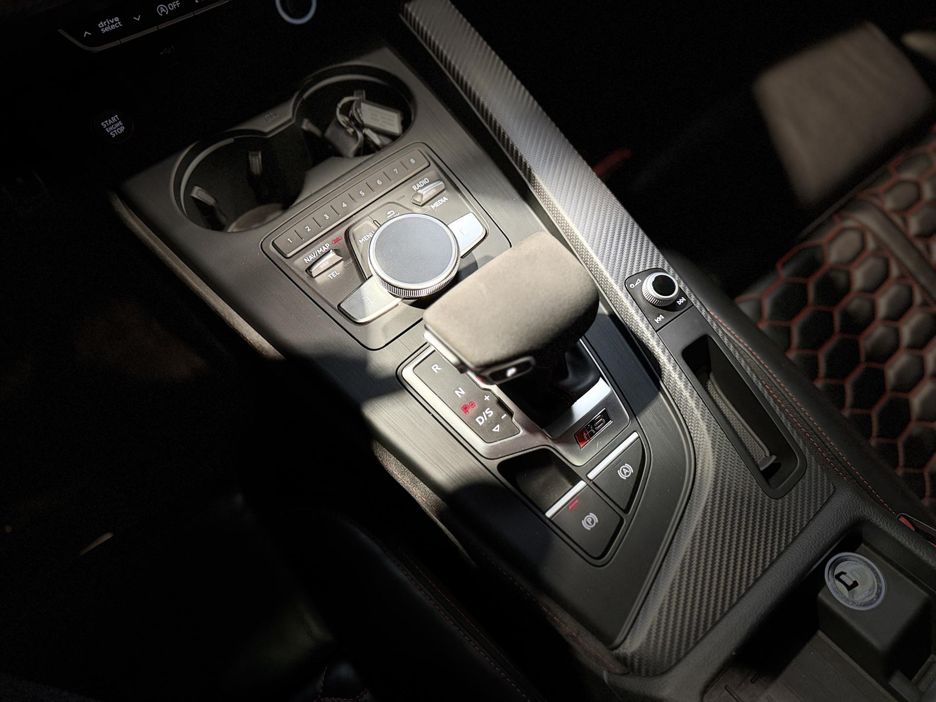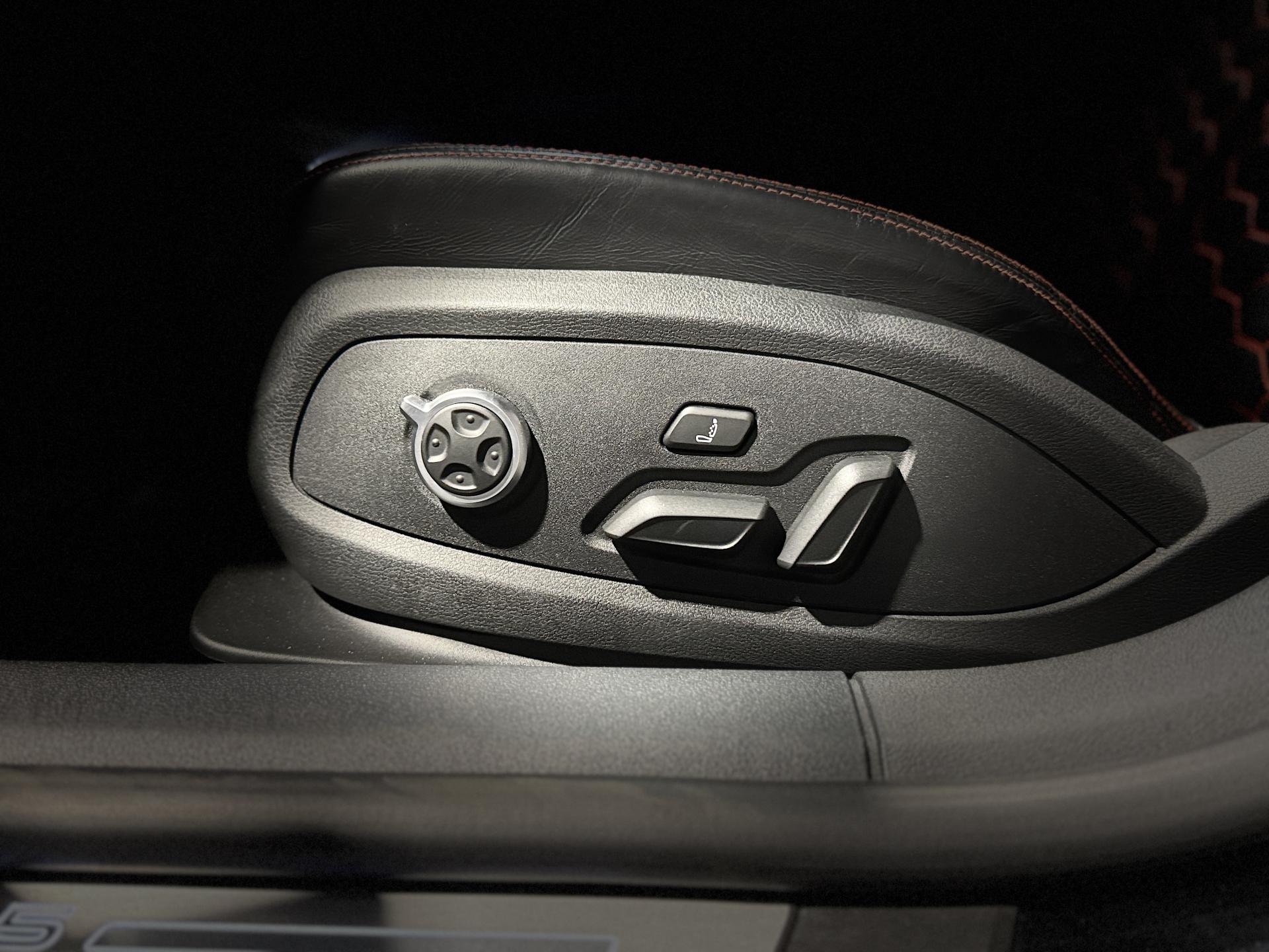 Nombreuses options : GPS, caméra de recul, Apple Carplay, radars avants et arrières de détection d'obstacles, Jantes aluminium forgé 20'' 5 branches en drapeau noir anthracite brillant ( 2 354 € ), Toit ouvrant coulissant/relevable électriquement en verre de sécurité teinté avec pare-soleil réglable en continu ( 1 341 € ), Échappement Sport avec sonorité travaillée et sorties d’échappement noires ( 1 250 € ), Affichage tête haute ( 991 € ), Bang & Olufsen Sound System avec son 3D ( 858 € ), Clé confort avec alarme antivol, fonction safelock et ouverture du coffre par mouvement du pied ( 483 € ), Airbags latéraux AR ( 375 € ), Applications décoratives en Aluminium Racing anthracite ( 350 € ), Réception radio numérique DAB ( 341 € ), Sièges AV et AR chauffants ( 333 € ), Étriers de frein laqués rouge brillant avec inscription RS à l’AV et à l’AR ( 308 € ), Audi Park Assist ( 275 € ), Système de contrôle de pression des pneus ( 250 € ), Commande d’ouverture de porte de garage HomeLink ( 237 € ), Coques de rétroviseurs noir brillant ( 108 € ), Fixation ISOFIX pour siège passager AV avec désactivation de l’airbag et sécurité enfant électrique ( 83 € ), ACC / Active Cruise Control stop & go avec assistant de conduite en embouteillage, Active Lane Assist, Assistant de conduite efficiente, Audi Pre Sense Front avec assistant d’évitement de collision et assistant de changement de direction, Châssis Sport RS plus avec Dynamic Ride Control DRC réglable sur 3 niveaux, Différentiel Quattro Sport, Direction Dynamique, Phares Audi Matrix LED, Pack Éclairage, Lecture des panneaux de signalisation, Système de lecture des panneaux de signalisation par caméra, Vitesse maximale relevée à 280 km/h, Volant 3 branches multifonctions plus en Alcantara avec méplat et logo RS, Accoudoirs de porte en cuir Nappa fin noir avec surpiqûres rouge Dynamite, Éléments de commande et repose-genoux en Alcantara noir avec surpiqûres rouge Dynamite, Ceintures de sécurité noires avec liseré rouge, Tapis de sol noir avec surpiqûres rouge Dynamite et inscription RS AV, Porte-boissons dans l’accoudoir central AR, Boîte à gants verrouillable, Prise 12V dans le coffre, Vide-poches côté conducteur, Crochets pour sacs dans le coffre, Filet de coffre, Filet dans le logement gauche du coffre, Filet de rangement au dos des sièges AV, Éclairage d’ambiance personnalisable avec profils de couleur via Audi drive select, ....