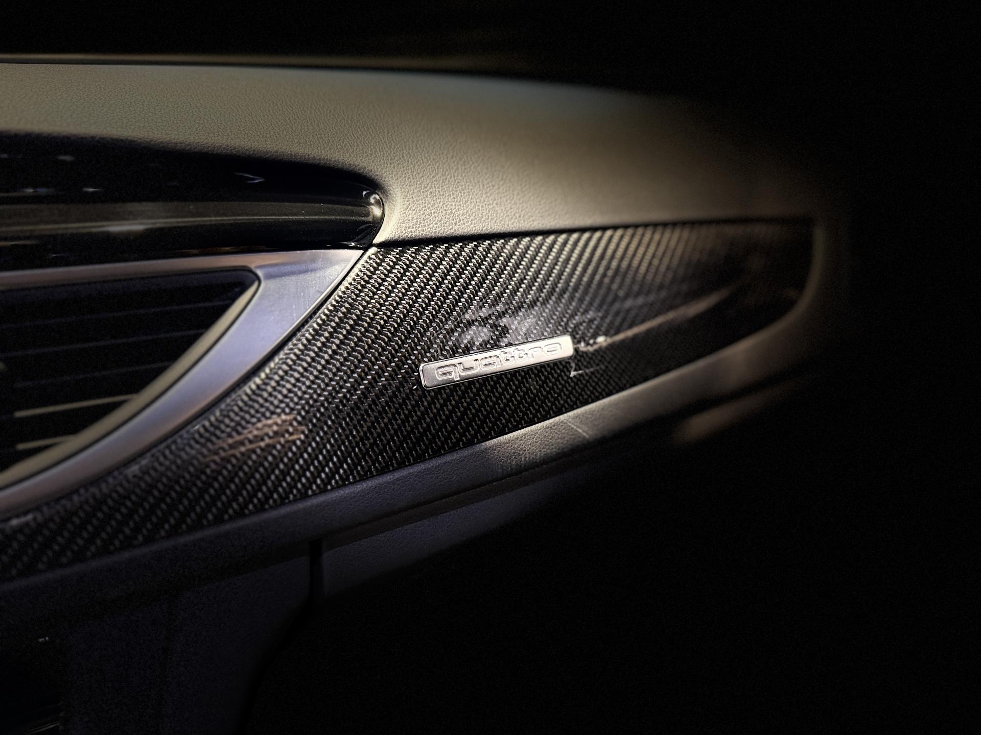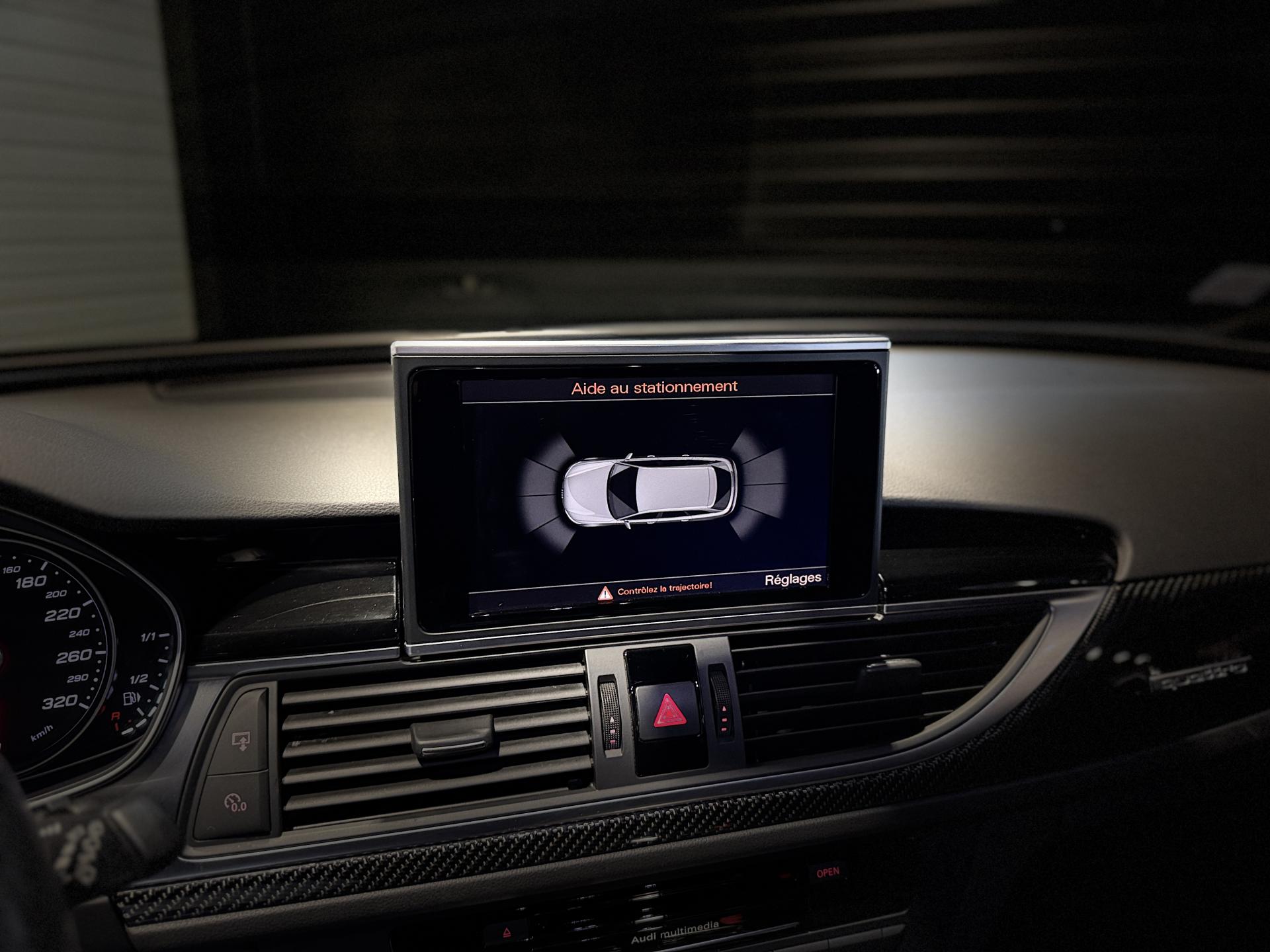 Nombreuses options : GPS, radars avants et arrières de détection d'obstacles, Pack Dynamique Plus avec différentiel quattro Sport, phares AV intégralement à LED, freins céramique et vitesse maximale relevée à 305km/h ( 10 625 EUR ), Jantes Audi Sport en aluminium coulé style 5 branches doubles noires ( 2 025 EUR ), Différentiel Quattro Sport, répartition dynamique de couple droite/gauche sur l'essieu AR ( 1 075 EUR ), Système d'échappement Sport avec sorties ovales noir brillant ( 1 008 EUR ), Pack Audi Lane Assist ( 562 EUR ), Indicateur de limitation de vitesse ( 154 EUR ), Audi Hold Assist (Assistant de démarrage en pente), Ciel de pavillon en tissu noir, Sièges AV chauffants, Trappe à skis avec sac amovible, ...