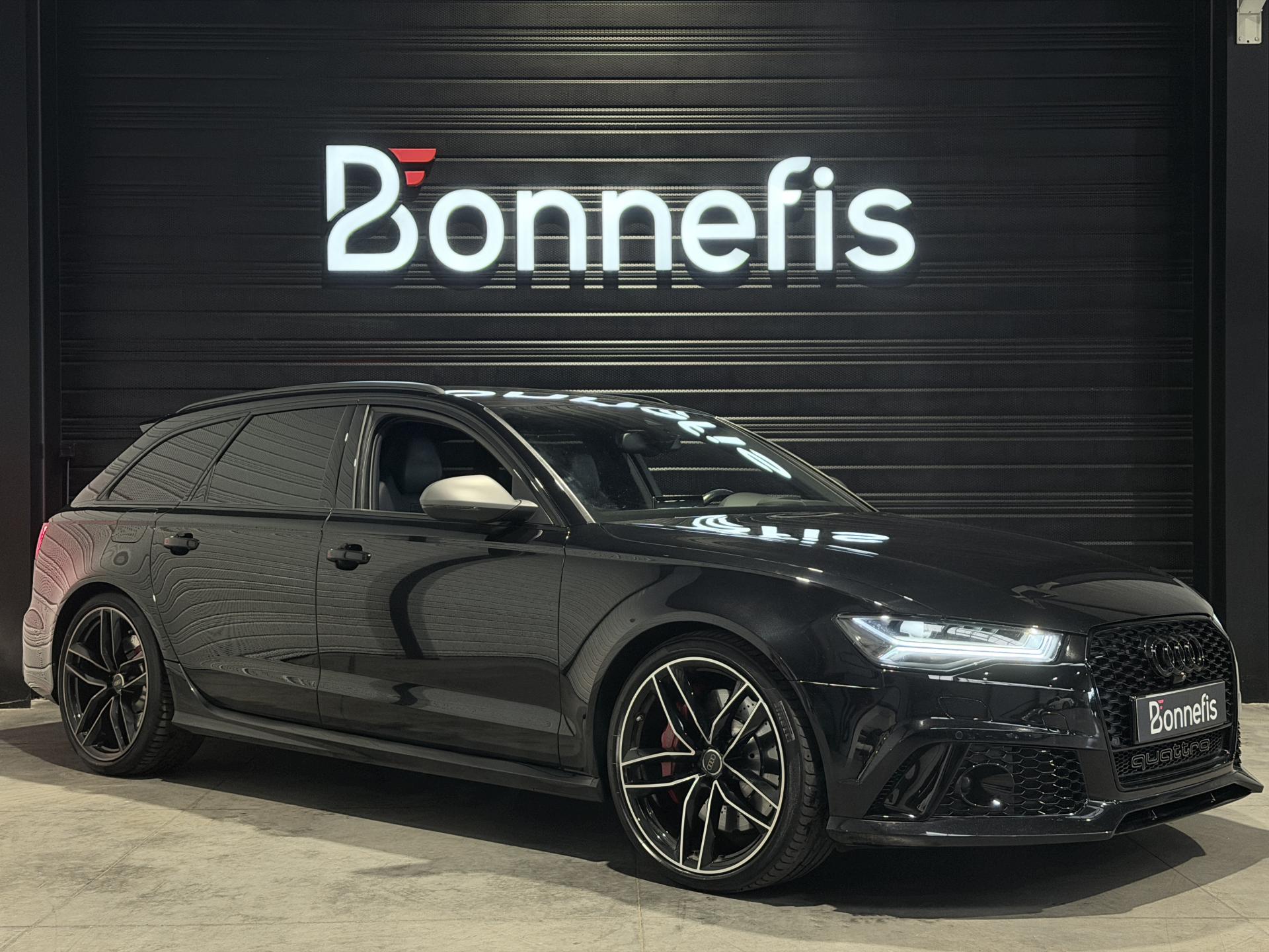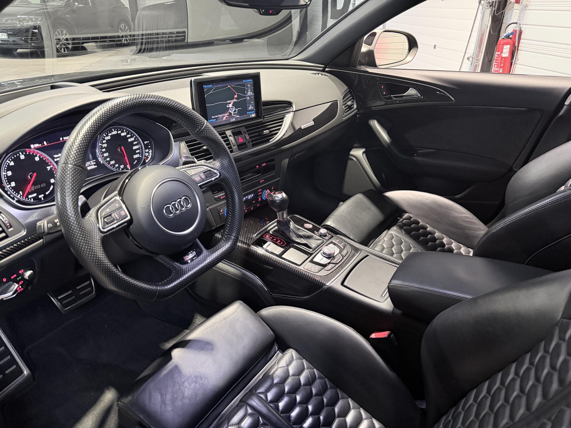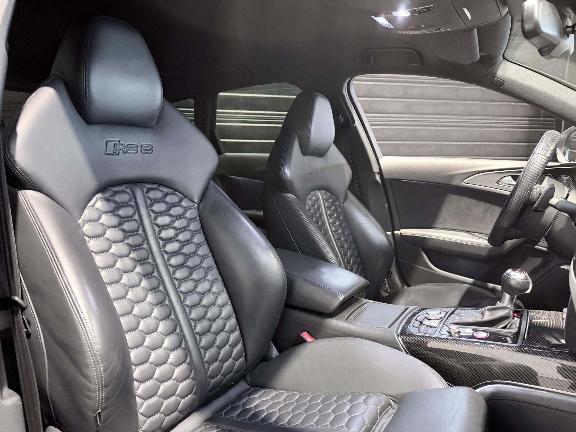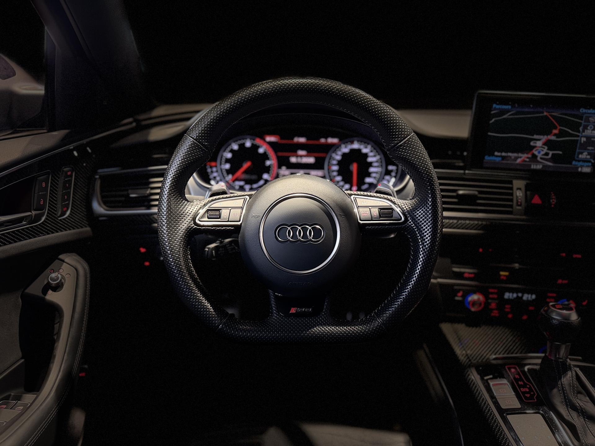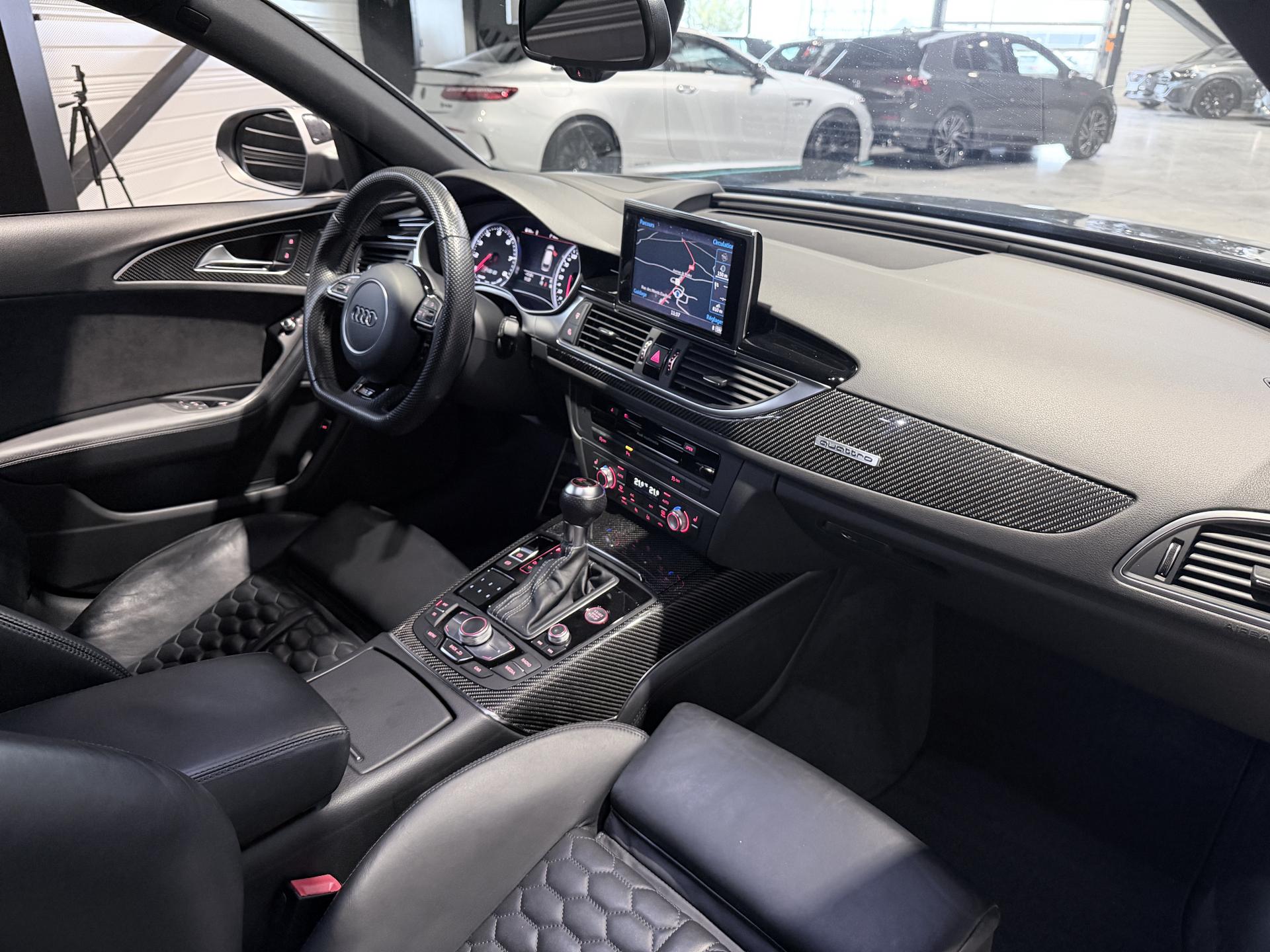 Audi RS6 Avant C7 Performance 4.0 V8 TFSI 605 Ch Quattro BVA Tiptronic 8 Pack RS Dynamic, break, 52 cv, 5 portes, extérieur noir métallisée, intérieur sellerie cuir Valcona avec surpiqûres contrastées en nid d'abeille et embossée RS6 / insertion carbone - alcantara, première mise en circulation le 25/04/2017.