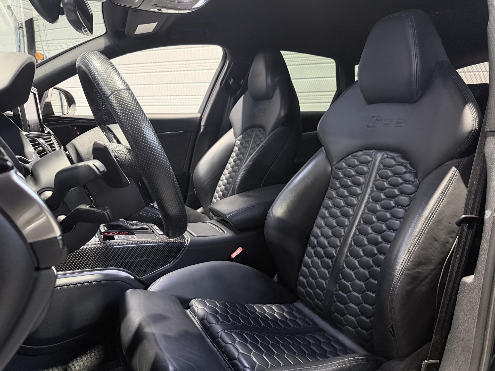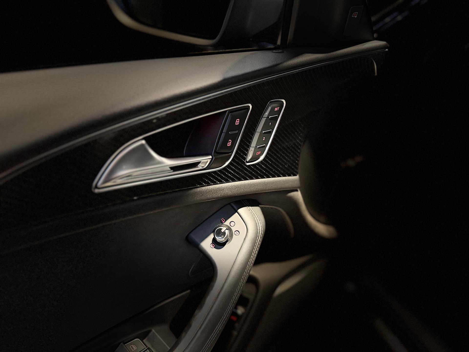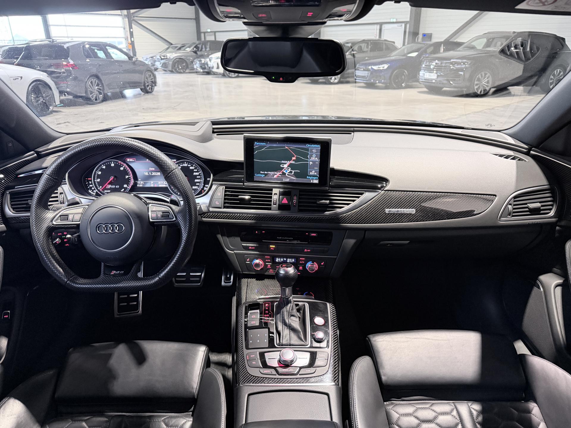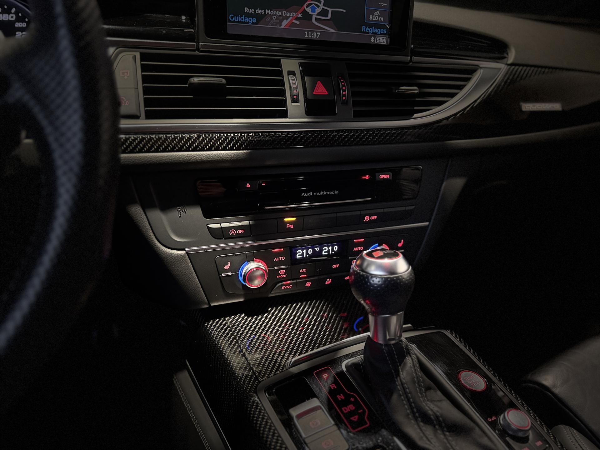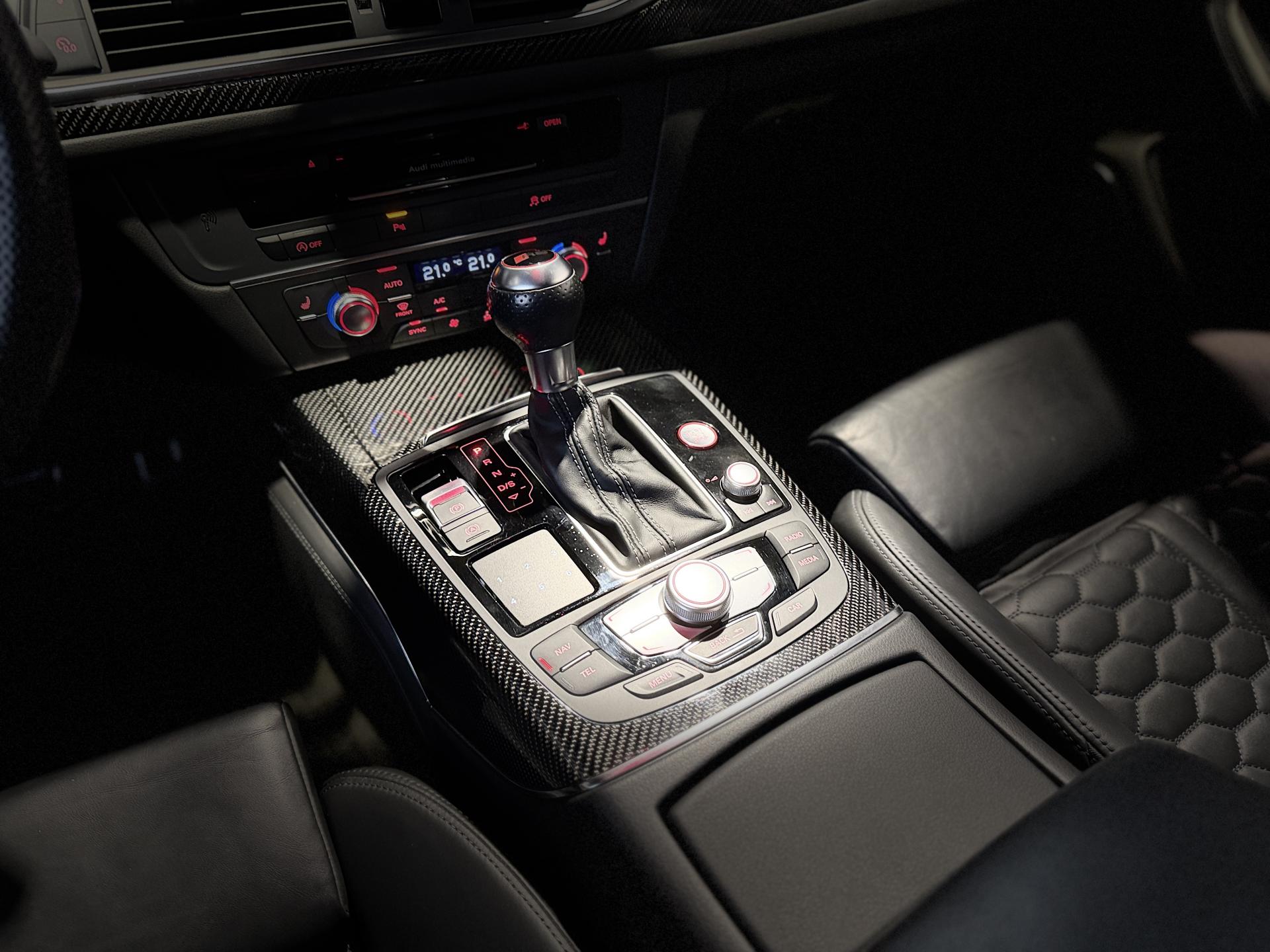 Audi RS6 Avant C7 Performance 4.0 V8 TFSI 605 Ch Quattro BVA Tiptronic 8 Pack RS Dynamic, break, 52 cv, 5 portes, extérieur noir métallisée, intérieur sellerie cuir Valcona avec surpiqûres contrastées en nid d'abeille et embossée RS6 / insertion carbone - alcantara, première mise en circulation le 25/04/2017.
