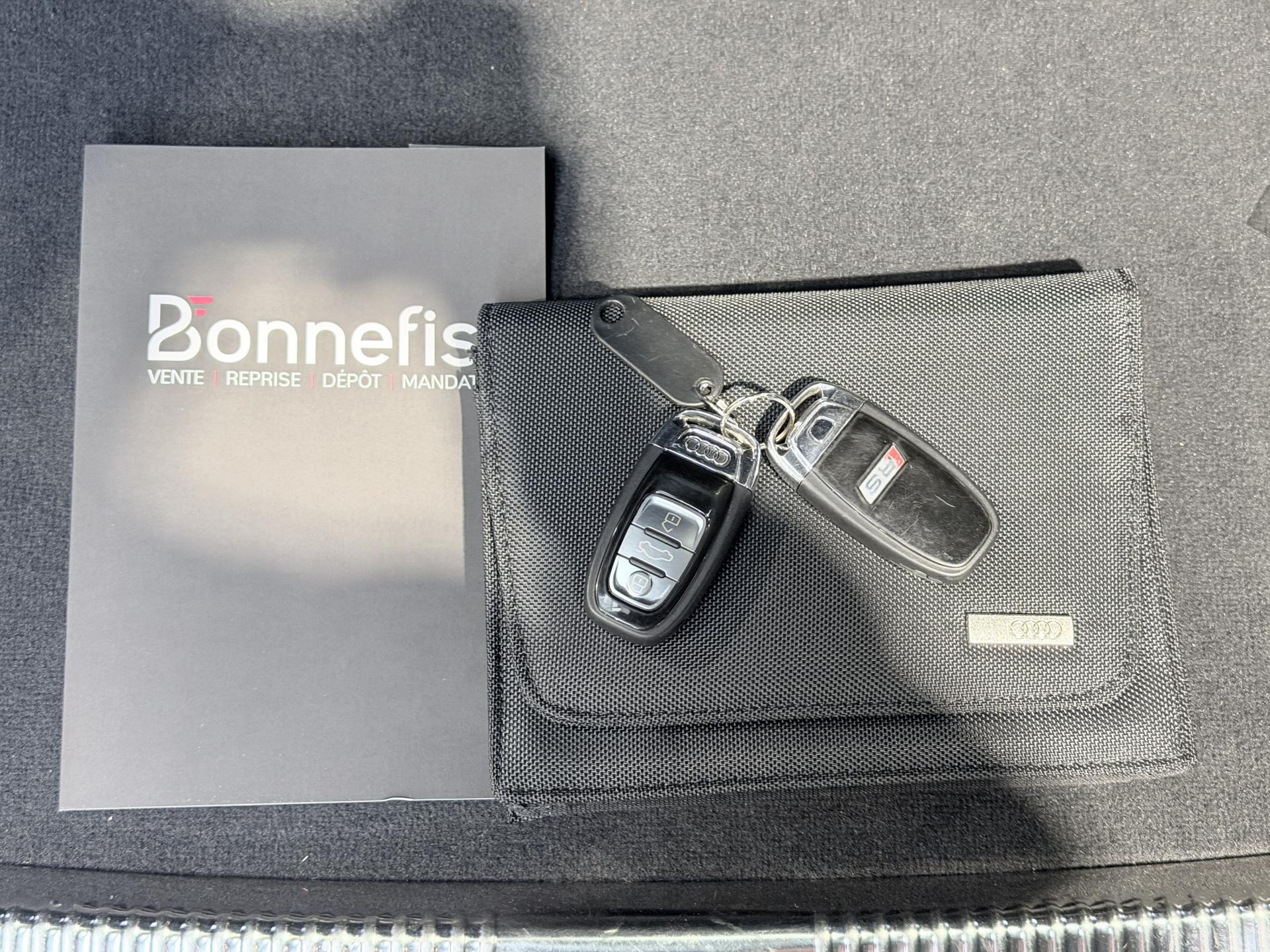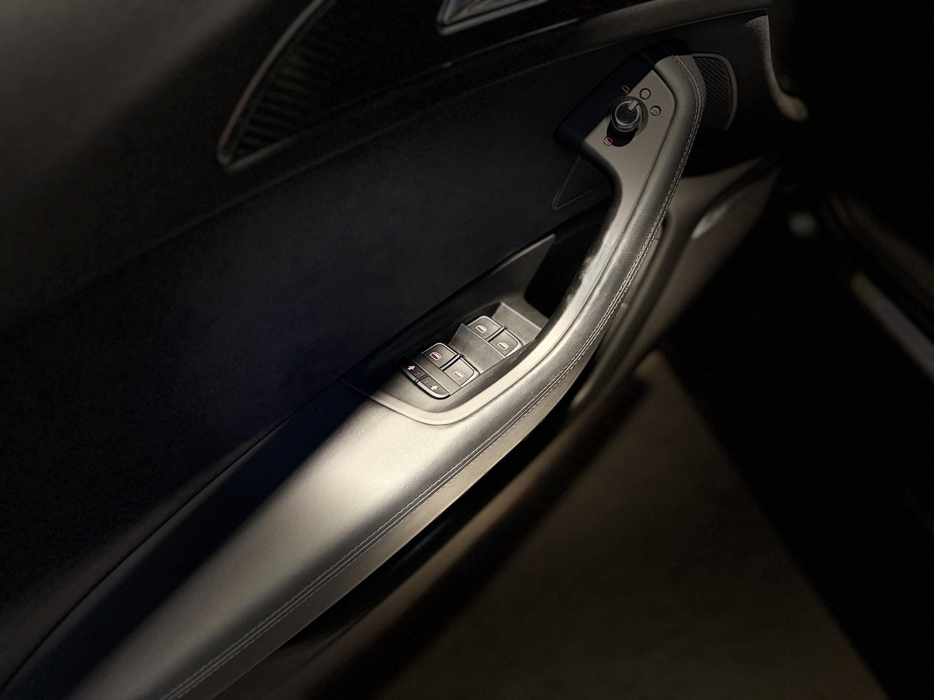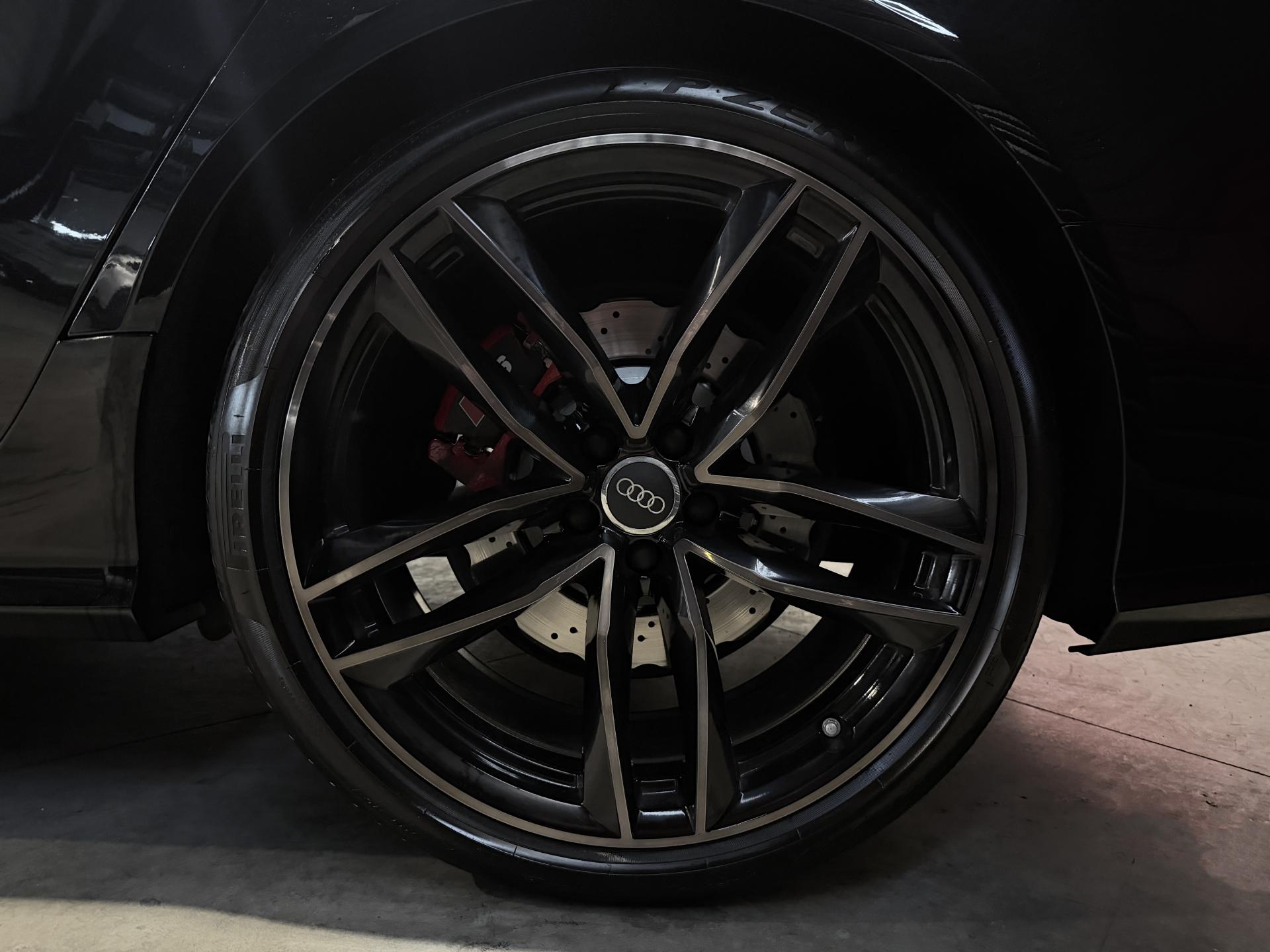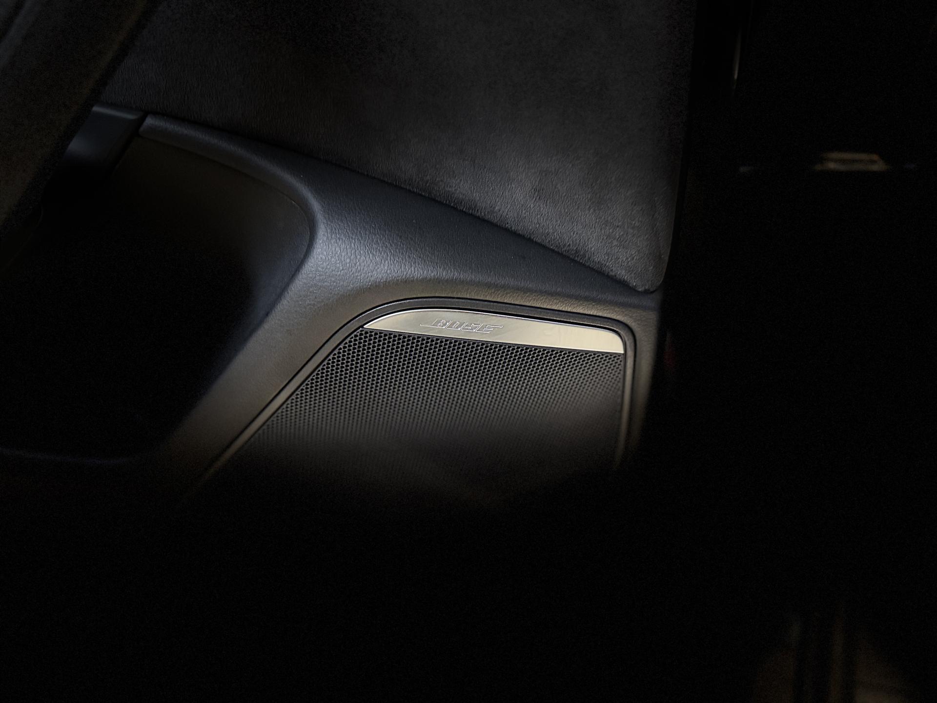 Nombreuses options : GPS, Audi Smartphone Interface (Apple CarPlay ou Google Android Auto) ( 250 € ), caméra périphérique 360° quatre caméras grand angle couvrent l'ensemble de la zone autour du véhicule, affichage sur l'écran MMI ( 662 € ), radars avants et arrières de détection d'obstacles, étriers de freins peints en rouge ( 404 € ), chauffage des sièges AV et AR ( 387 € ), réception radio numérique DAB ( 400 € ), airbags latéraux AR intégrés aux dossiers des sièges ( 370 € ), vitres surteintées : lunette AR, custodes et vitres latérales AR ( 466 € ), télécommande universelle programmable Homelink à fréquence radio ( 245 € ), indicateur de limitation de vitesse ( 154 € ), fixations sièges enfant Isofix avec commande de désactivation d'airbag passager AV ( 87 € ), système d'échappement Sport avec sortie ovale noir brillant de chaque côté pour une sonorité accrue, différentiel Quattro Sport avec répartition dynamique de couple droite/gauche sur l'essieu AR, applications décoratives en Carbone, suppression totale d'identification (modèle et moteur), phares AV avec technologie Audi Matrix LED, vitesse maximale relevée à 280 km/h, affichage tête haute, siège conducteur électrique à mémoires, sytème audio Bose, ...