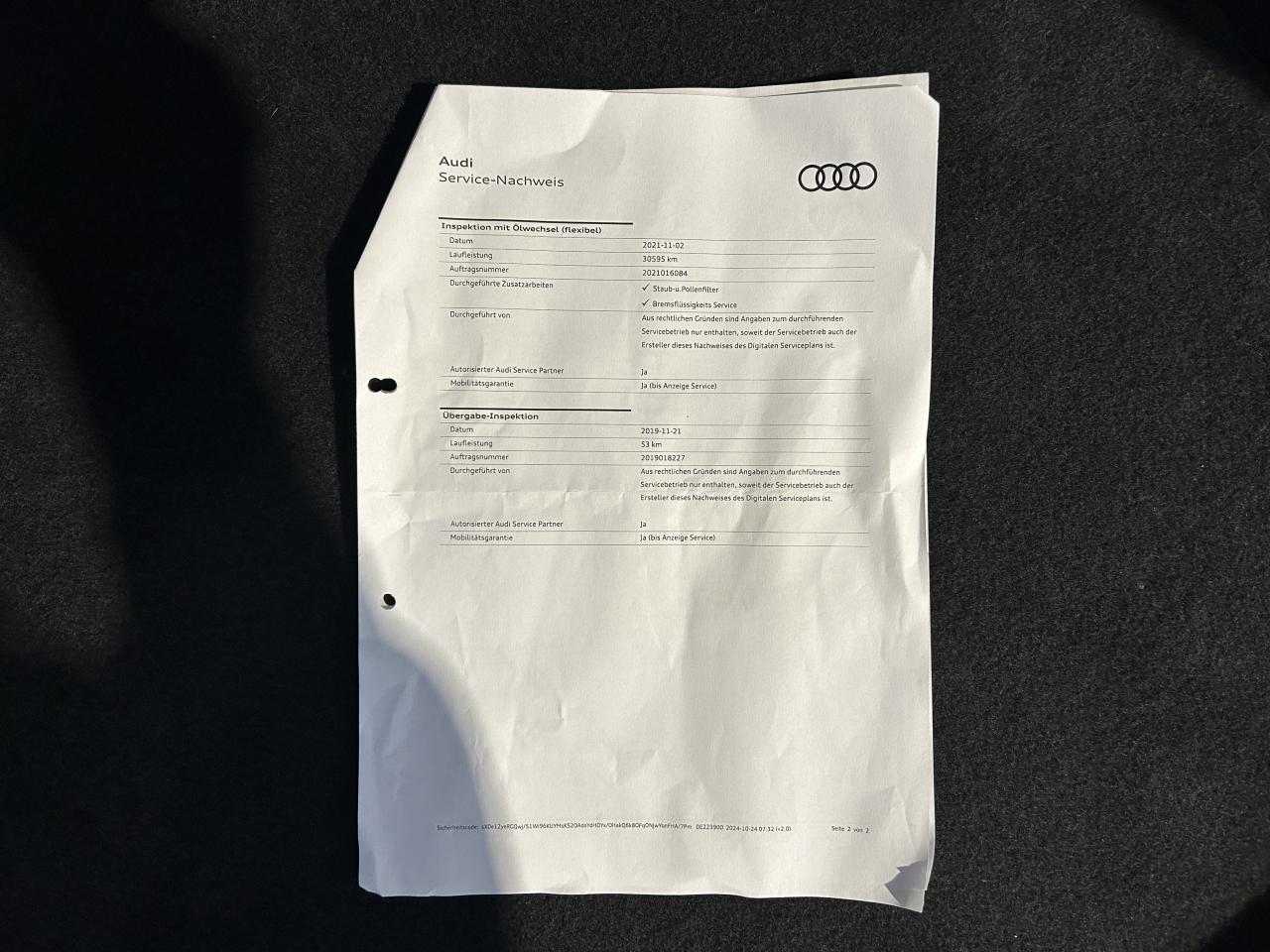 - 1er entretien fait le 21/11/2019 à 53Km chez Audi. ( Contrôle à la livraison )