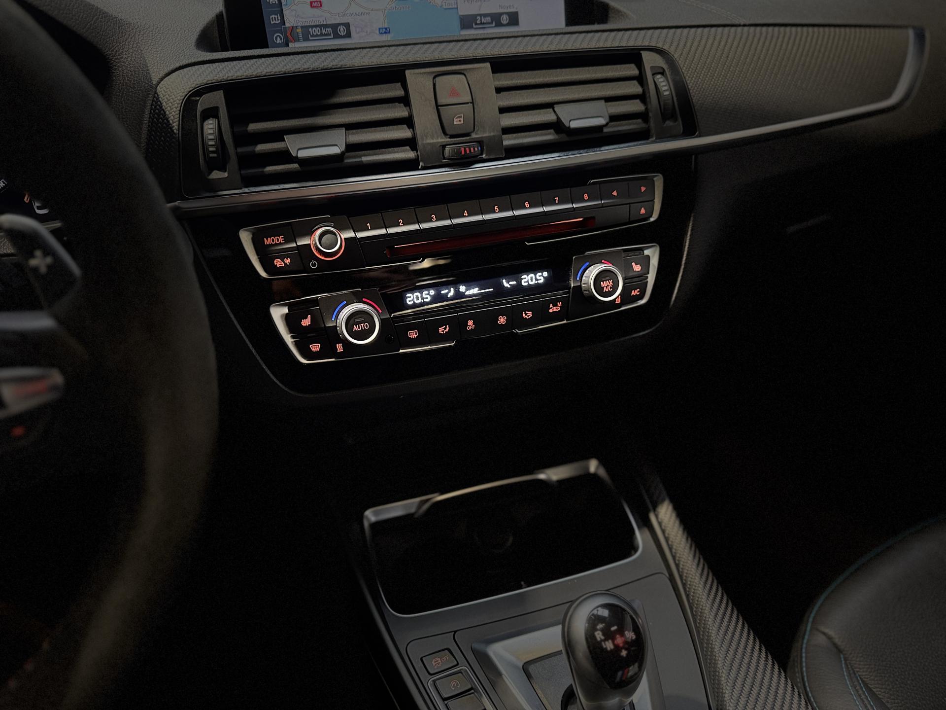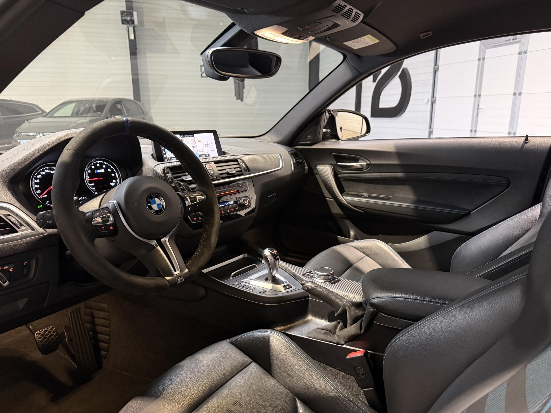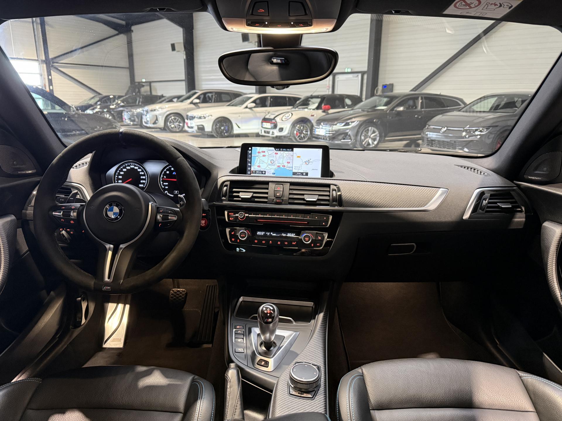 Nombreuses options : GPS, caméra de recul, Apple Carplay, radars avants et arrières de détection d'obstacles, Sièges AV Sport M intégraux avec logo "M2" rétroéclairé ( 1 291 € ), Système Hi-Fi Harman/Kardon 12 HP ( 666 € ), Inserts décoratifs en fibre de carbone ( 383 € ), Connectivité avancée sans fil avec recharge par induction ( 383 € ), Vitrage calorifuge ( 291 € ), Tuner DAB ( 275 € ), Sièges AV avec appui lombaire ajustable ( 208 € ), Musique à la demande "Online Entertainment" ( 183 € ), Touches multifonctions sur le volant, Appel d'Urgence Intelligent (durée de vie de la voiture), Ceintures de sécurité noires avec liserés aux couleurs M, Mesure individuelle de pression des pneumatiques avec 3 niveaux d'alerte, Régulateur de vitesse avec fonction freinage, Rétroviseur intérieur électrochrome, Sièges AV chauffants, feux BMW adaptive LED, ....