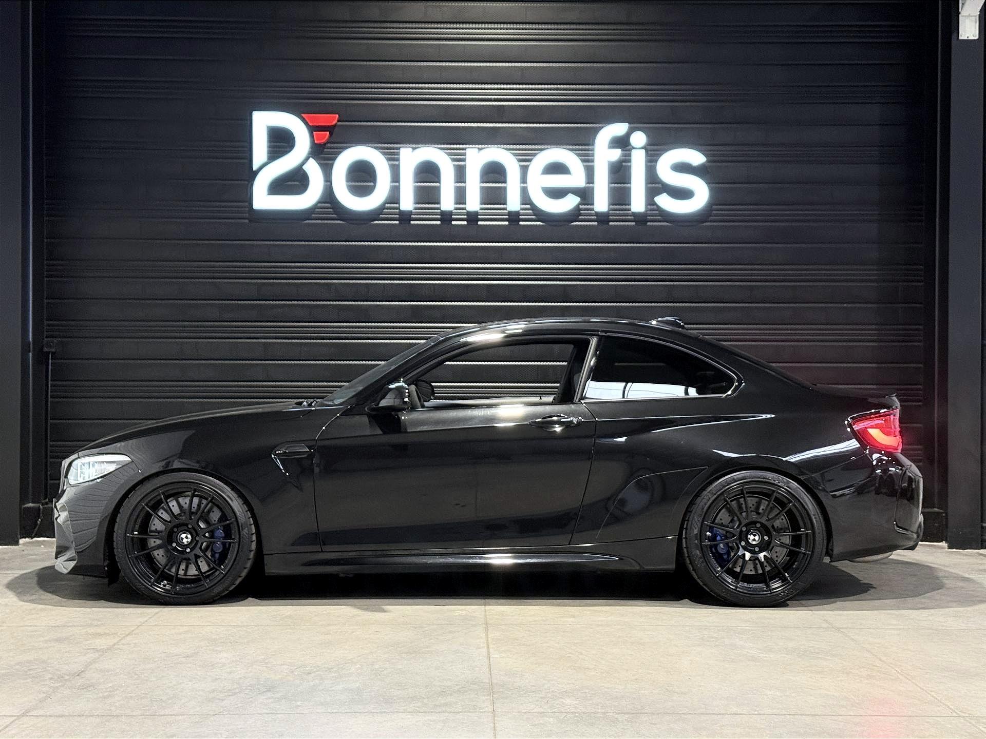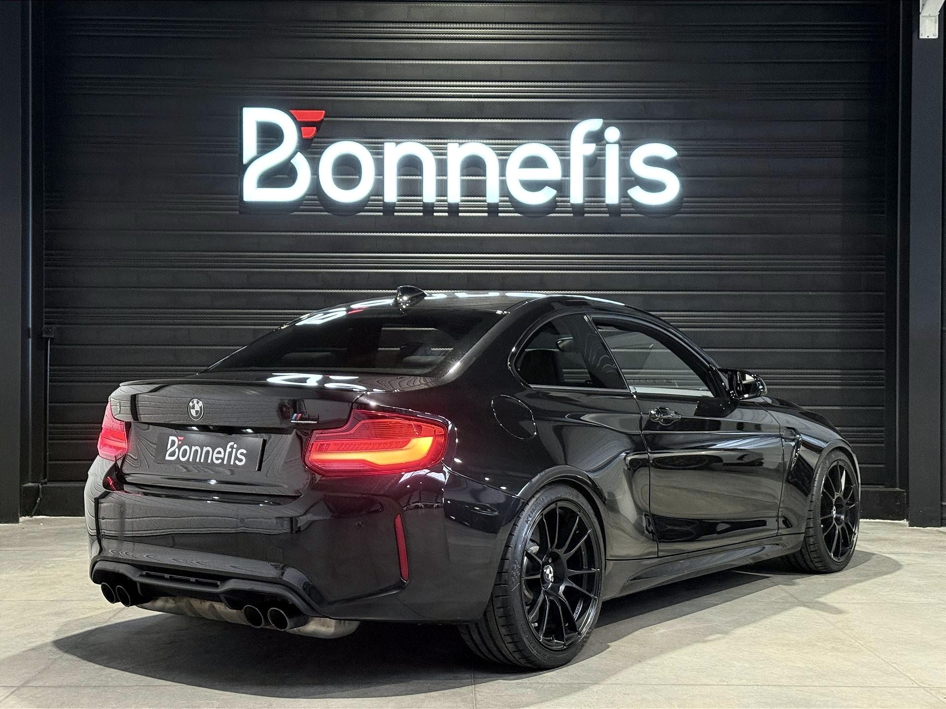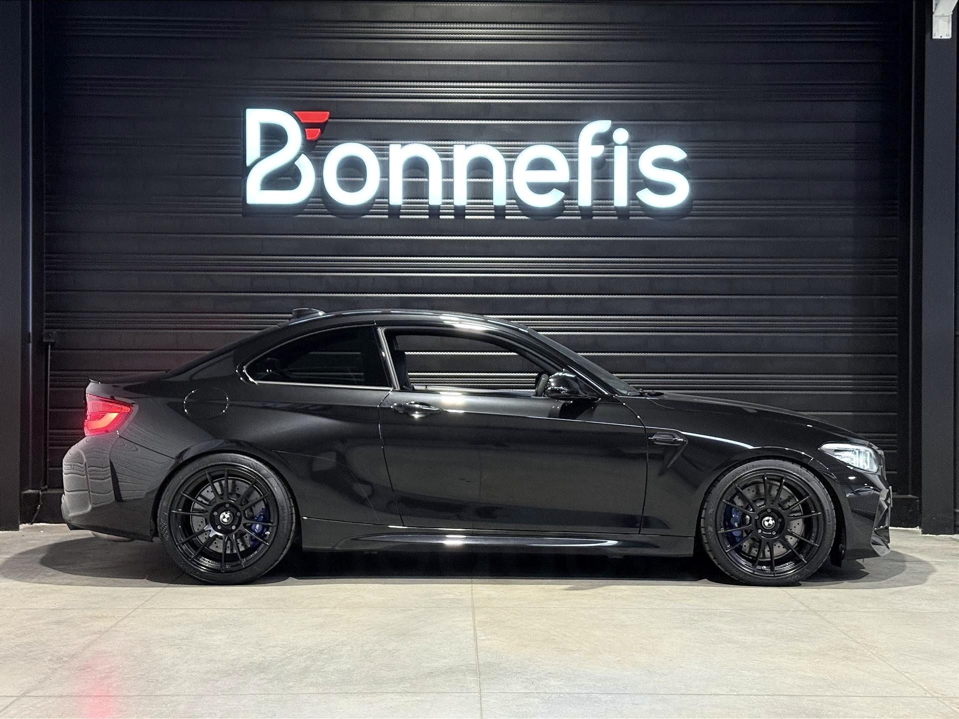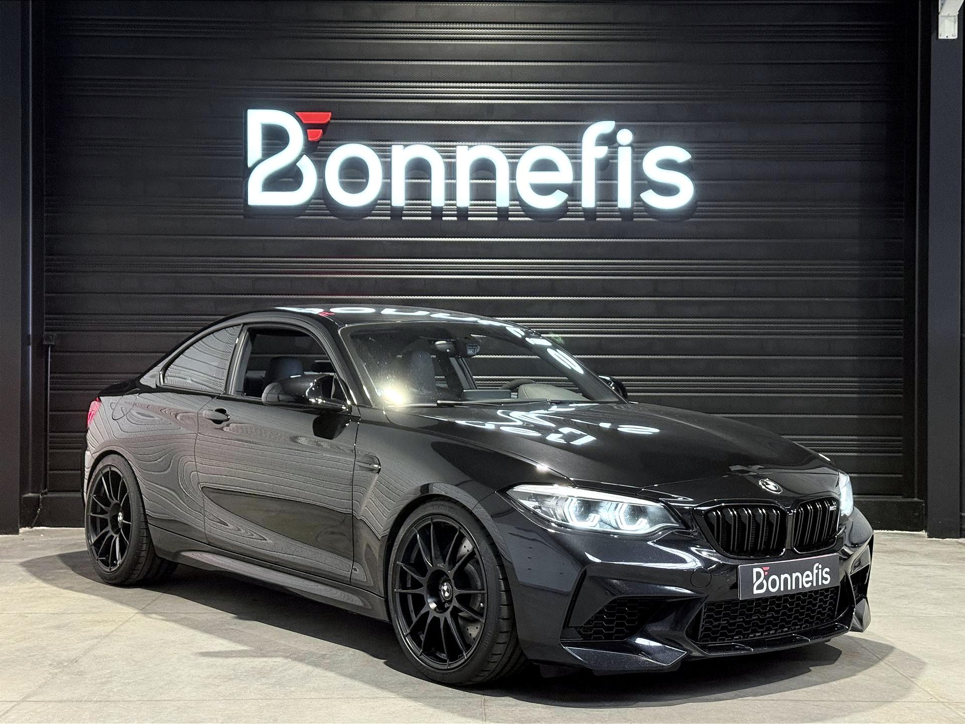 BMW M2 Compétition 3.0 410 Ch LCI BVA DKG7, coupé, extérieur noir métallisée ( Saphirschwarz )( 700 € ), intérieur cuir noir, 30 cv, 3 portes, première mise en circulation le 10/09/2018.