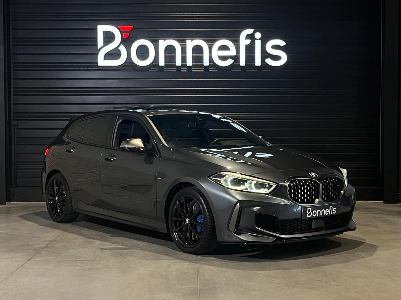 BMW Serie 1 M 135 i 135i F 40 F40 xDrive X drive 306 ch BVA8, gris métallisée, 19 cv, 5 portes, première mise en circulation le 05/02/2020.