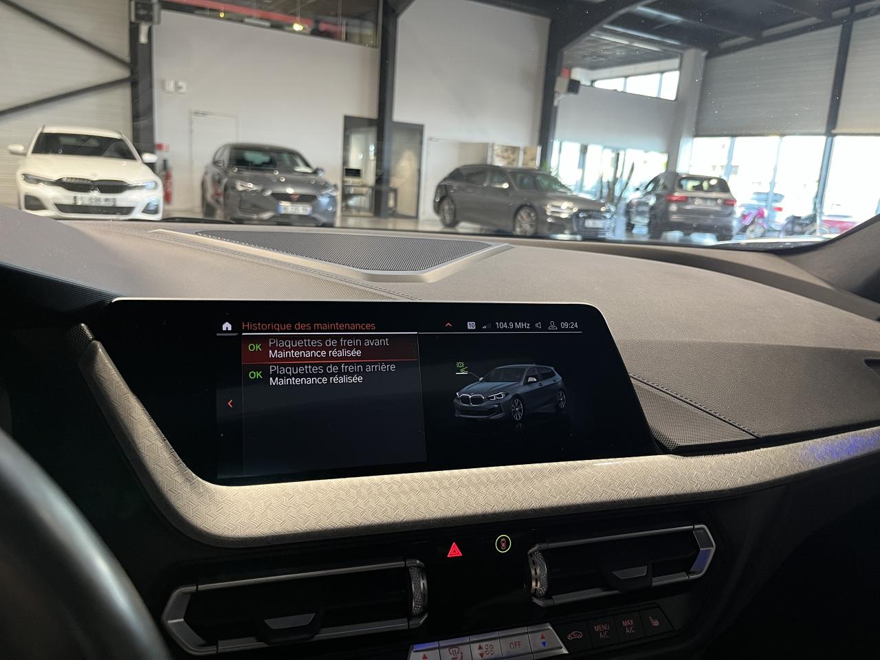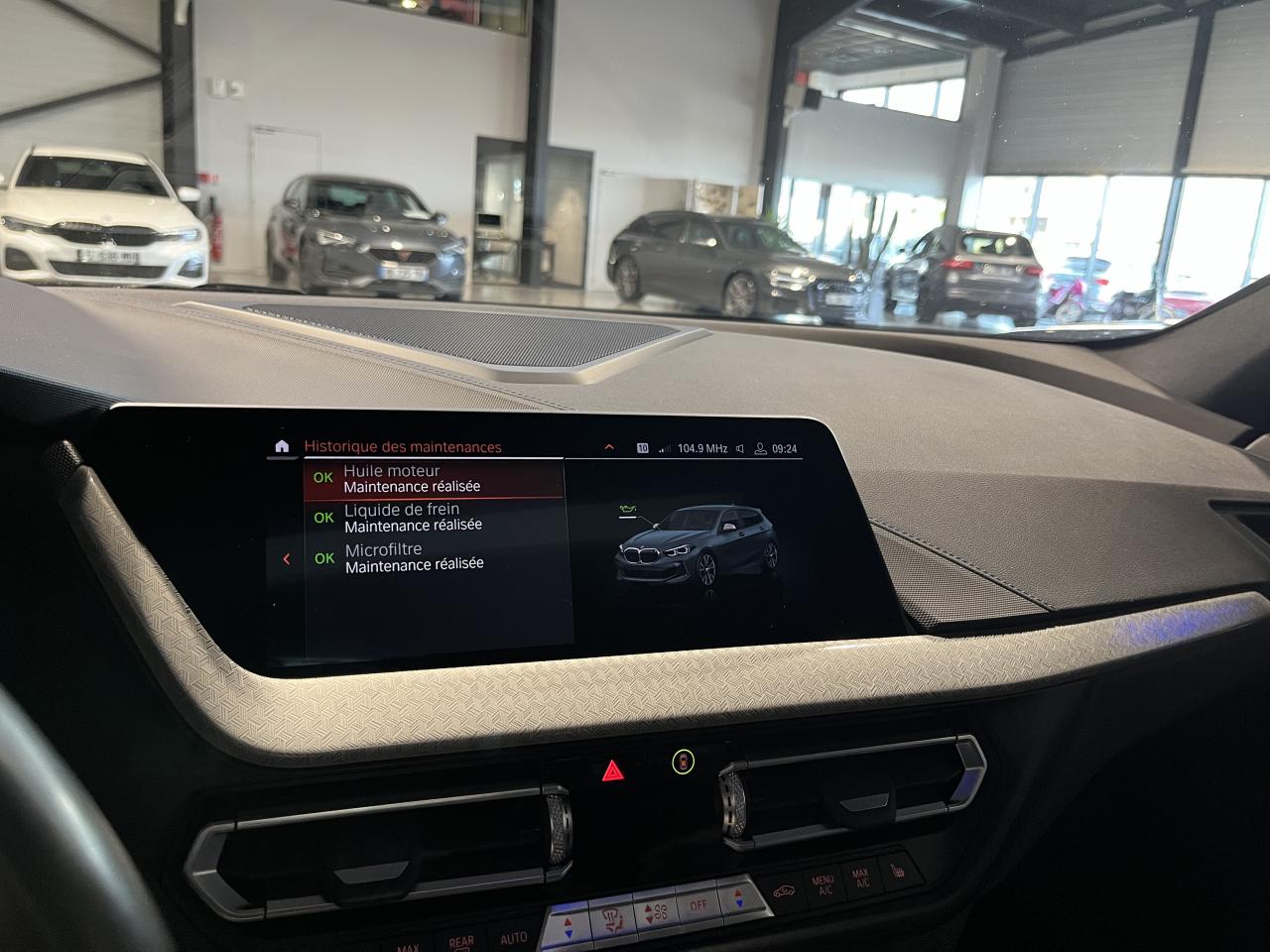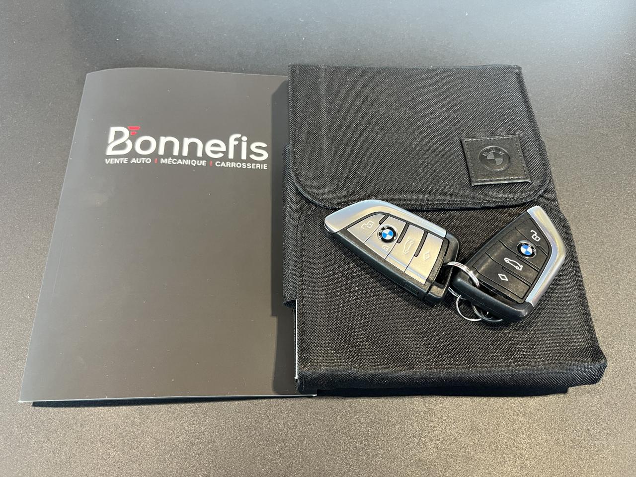 Nombreuses options : GPS, caméra de recul, Apple CarPlay, radars avants et arrières de détection d'obstacles, régulateur de vitesse, système Hi-Fi Harman Kardon ( 716 € ), à rayons doubles, bicolores ( 550 € ), climatisation automatique bi-zone ( 466 € ), accès confort avec préparation "BMW Digital Key" ( ouverture et démarrage sans clé via smartphone ) ( 425 € ), commande électrique du coffre ( 425 € ), sièges AV chauffants ( 333 € ), kit Éclairage ( 258 € ), appui lombaire ajustable pour sièges AV ( 208 € ), volant chauffant ( 175 € ), rétroviseur intérieur électrochrome ( 150 € ), kit de mobilité BMW ( 45 € ), affichage Tête Haute ( projection des informations essentielles sur le pare-brise ), alarme antivol, connectivité avancée avec recharge sans fil par induction, Drive Assist ( assistance active pour plus de sécurité et de confort en conduite ), feux de route permanents anti-éblouissement ( ajustement automatique de l’intensité pour ne pas éblouir les autres conducteurs ), pack Advanced Full LED, pack Compartiment à bagages, rétroviseurs extérieurs rabattables électriquement avec fonction mémoire et aide au parking, toit ouvrant panoramique électrique en verre, vitrage calorifuge....