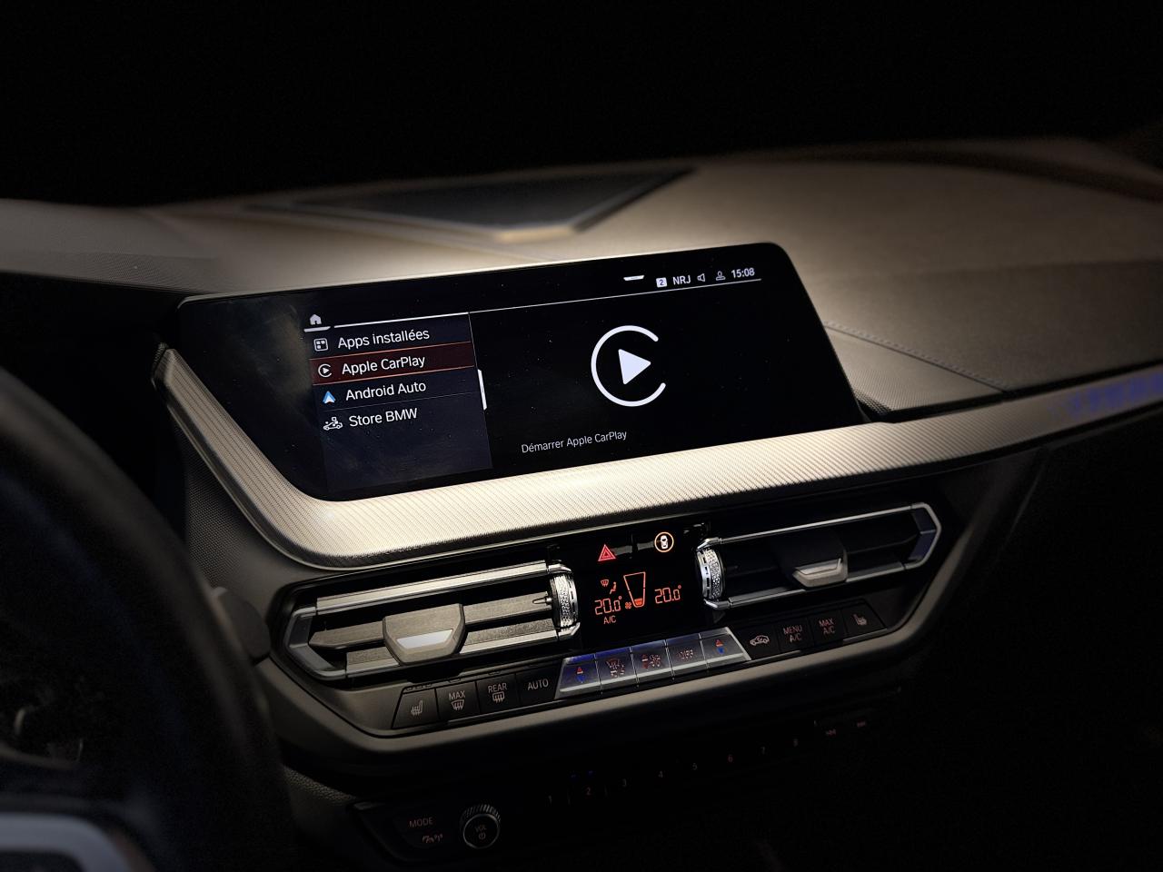 Nombreuses options : GPS, Apple CarPlay, radars avants et arrières de détection d'obstacles, climatisation automatique bi-zone ( 466 € ), connectivité avancée sans fil avec recharge par induction ( 341 € ), système Hifi 10 HP ( 300 € ), banquette AR rabattable 40/20/40 avec trappe à ski ( 175 € ), rétroviseur intérieur électrochrome ( 150 € ), feux de route permanents anti-éblouissement ( 141 € ), fixations ISOFIX AV avec désactivation de l'airbag passager ( 91 € ), capacité du réservoir augmentée ( 45 € ), hotspot Wi-Fi ( 45 € ), kit de mobilité BMW ( 45 € ), touches multifonctions sur le volant, appui lombaire ajustable pour sièges AV, BMW Live Cockpit Navigation Pro, commande électrique du coffre, sièges AV chauffants, volant chauffant...