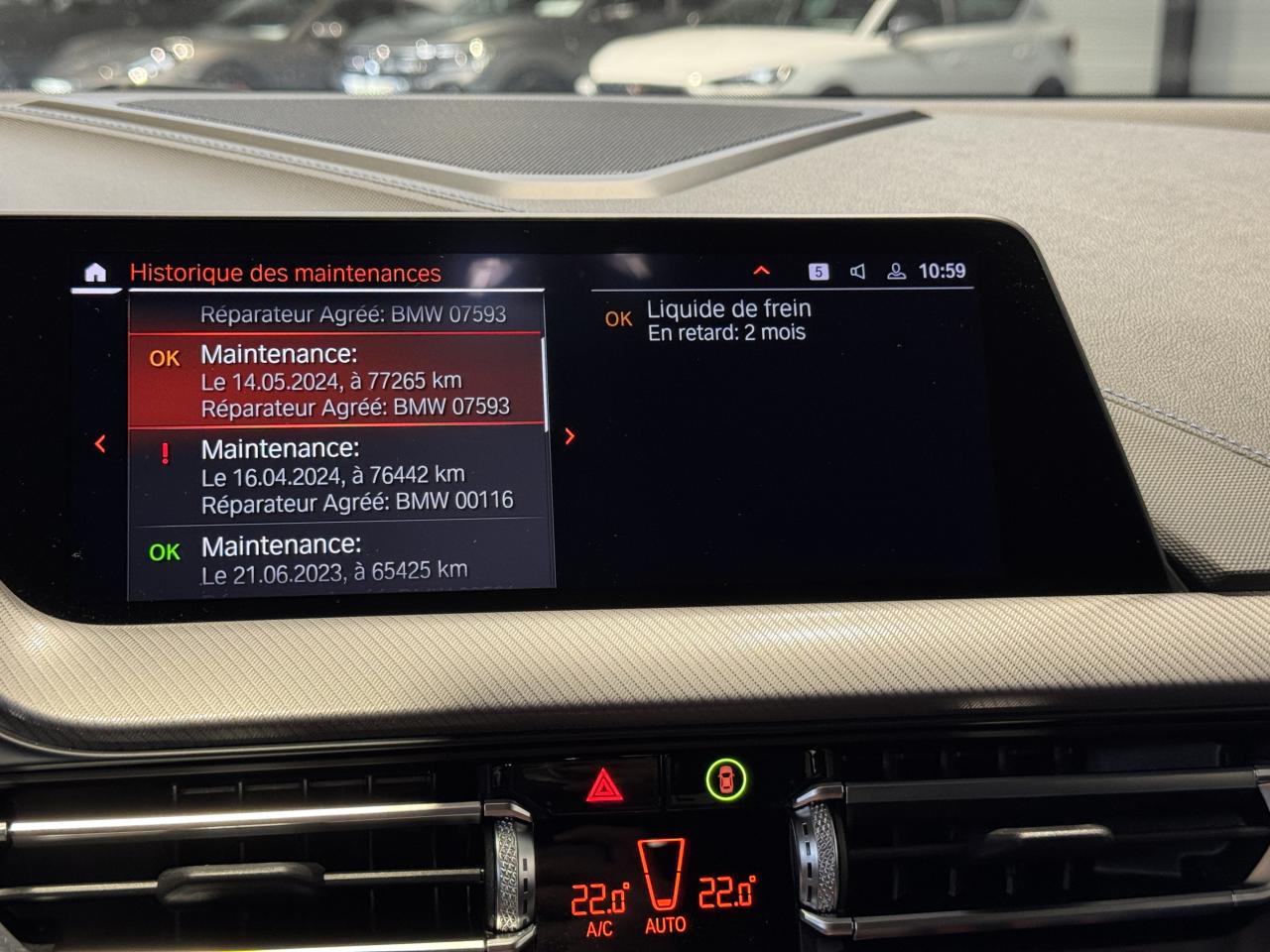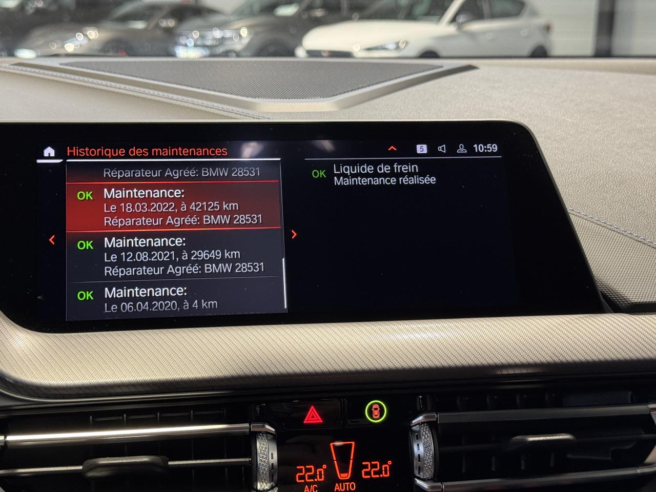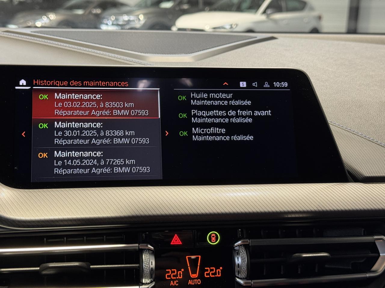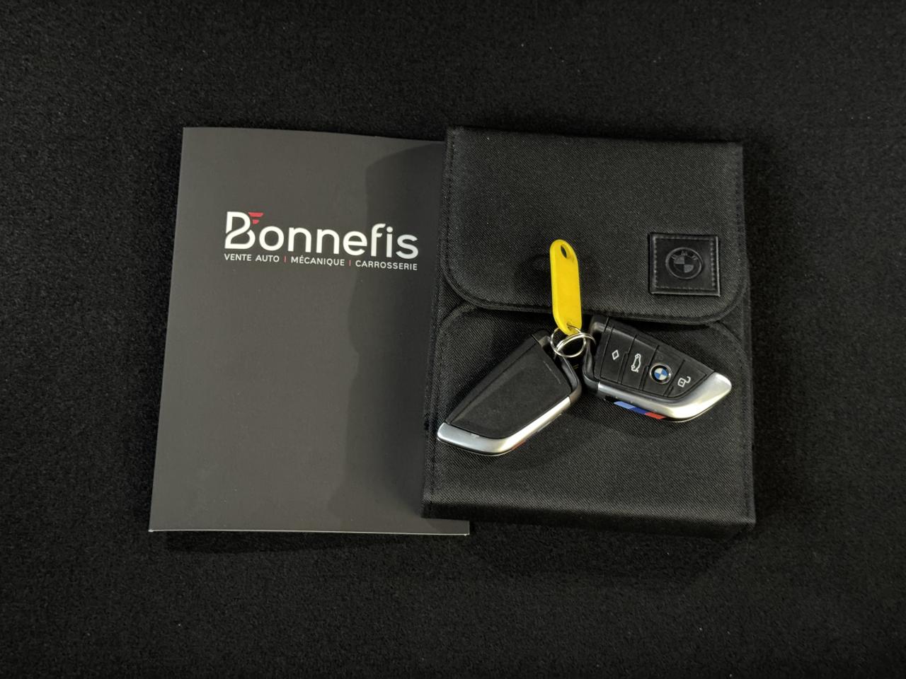 Nombreuses options : GPS, caméra de recul, Apple Carplay, radars avants et arrières de détection d'obstacles, affichage Tête Haute ( 758 € ), système Hi-Fi Harman Kardon ( 716 € ), jantes en alliage léger 19" style 557 M, à rayons doubles, Cerium Grey ( 550 € ), accès confort avec préparation "BMW Digital Key" ( 425 € ), alarme antivol ( 425 € ), connectivité avancée avec recharge sans fil par induction ( 383 € ), climatisation automatique bi-zone ( 466 € ), sièges AV chauffants Assise et dossier des sièges AV chauffants, Intensité selon 3 niveaux, Fonction de chauffage rapide ( 333 € ), appui lombaire ajustable pour sièges AV ( 208 € ), rétroviseurs extérieurs rabattables électriquement, intérieur et extérieur gauche électrochrome Fonction mémoire (par Personal Profile), aide au parking (enclenchement de la fonction guide-trottoir pour le rétroviseur droit au passage de la marche arrière) ( 208 € ), vitrage calorifuge ( 250 € ), kit Éclairage ( 258 € ), volant chauffant ( 175 € ), pack Compartiment à bagages ( 175 € ), rétroviseur intérieur électrochrome ( 150 € ), feux de route permanents anti-éblouissement ( 141 € ), kit de mobilité BMW ( 45 € ), BMW Live Cockpit Navigation Pro, projecteurs AV Full LED, régulateur de vitesse avec fonction freinage, rétroviseurs extérieurs rabattables électriquement, touches multifonctions sur le volant, boîte de vitesses automatique Sport 8 rapports avec palettes au volant, ciel de pavillon Anthracite, becquet AR M, freins Sport M, ...