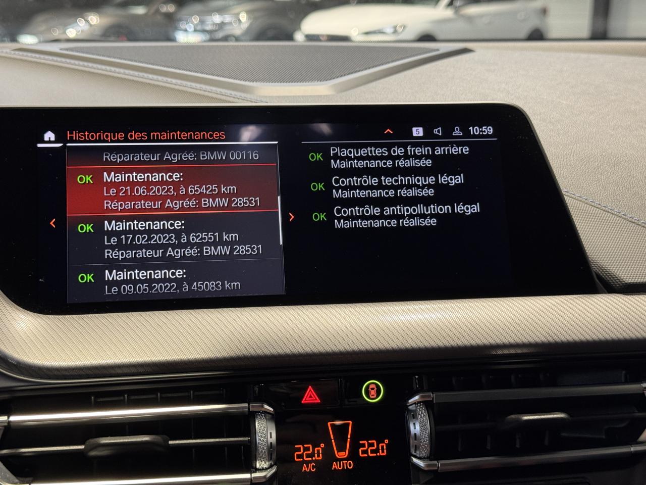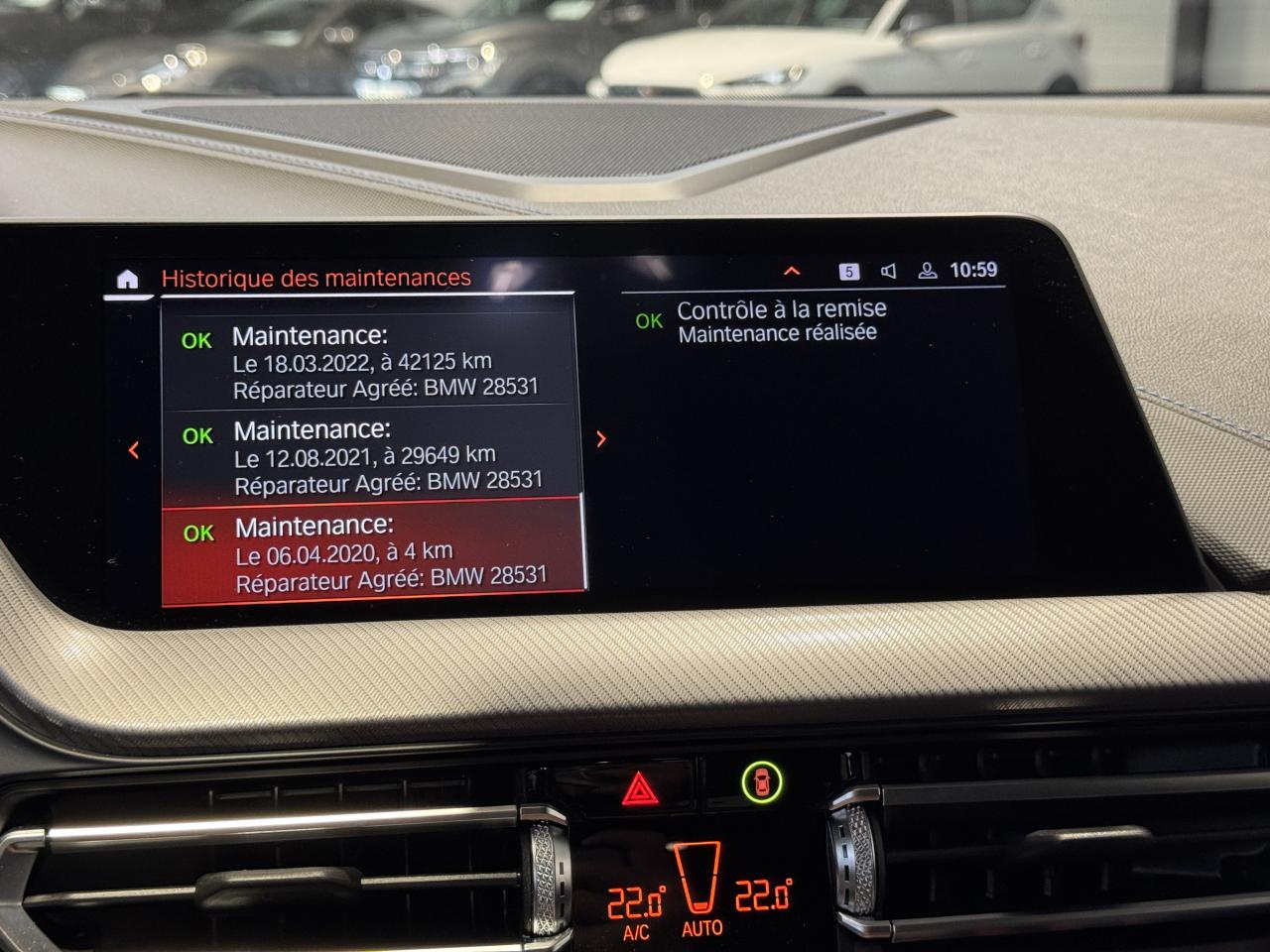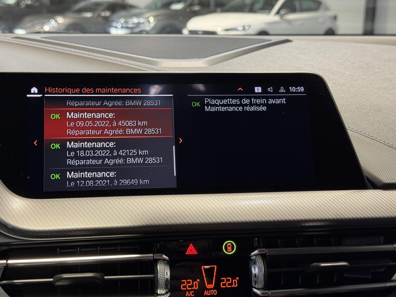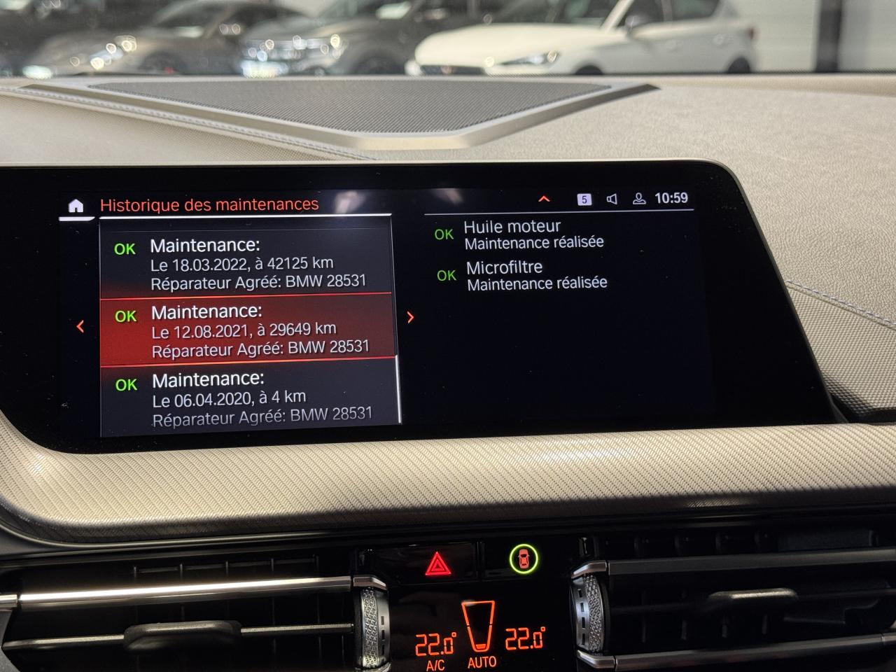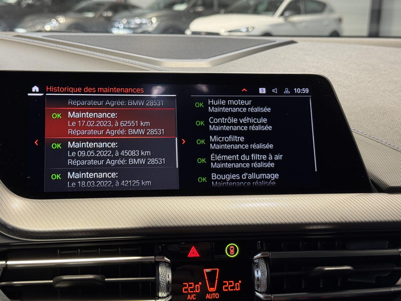 Nombreuses options : GPS, caméra de recul, Apple Carplay, radars avants et arrières de détection d'obstacles, affichage Tête Haute ( 758 € ), système Hi-Fi Harman Kardon ( 716 € ), jantes en alliage léger 19" style 557 M, à rayons doubles, Cerium Grey ( 550 € ), accès confort avec préparation "BMW Digital Key" ( 425 € ), alarme antivol ( 425 € ), connectivité avancée avec recharge sans fil par induction ( 383 € ), climatisation automatique bi-zone ( 466 € ), sièges AV chauffants Assise et dossier des sièges AV chauffants, Intensité selon 3 niveaux, Fonction de chauffage rapide ( 333 € ), appui lombaire ajustable pour sièges AV ( 208 € ), rétroviseurs extérieurs rabattables électriquement, intérieur et extérieur gauche électrochrome Fonction mémoire (par Personal Profile), aide au parking (enclenchement de la fonction guide-trottoir pour le rétroviseur droit au passage de la marche arrière) ( 208 € ), vitrage calorifuge ( 250 € ), kit Éclairage ( 258 € ), volant chauffant ( 175 € ), pack Compartiment à bagages ( 175 € ), rétroviseur intérieur électrochrome ( 150 € ), feux de route permanents anti-éblouissement ( 141 € ), kit de mobilité BMW ( 45 € ), BMW Live Cockpit Navigation Pro, projecteurs AV Full LED, régulateur de vitesse avec fonction freinage, rétroviseurs extérieurs rabattables électriquement, touches multifonctions sur le volant, boîte de vitesses automatique Sport 8 rapports avec palettes au volant, ciel de pavillon Anthracite, becquet AR M, freins Sport M, ...