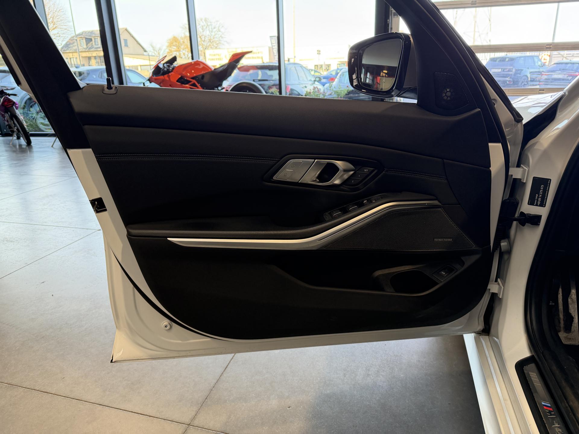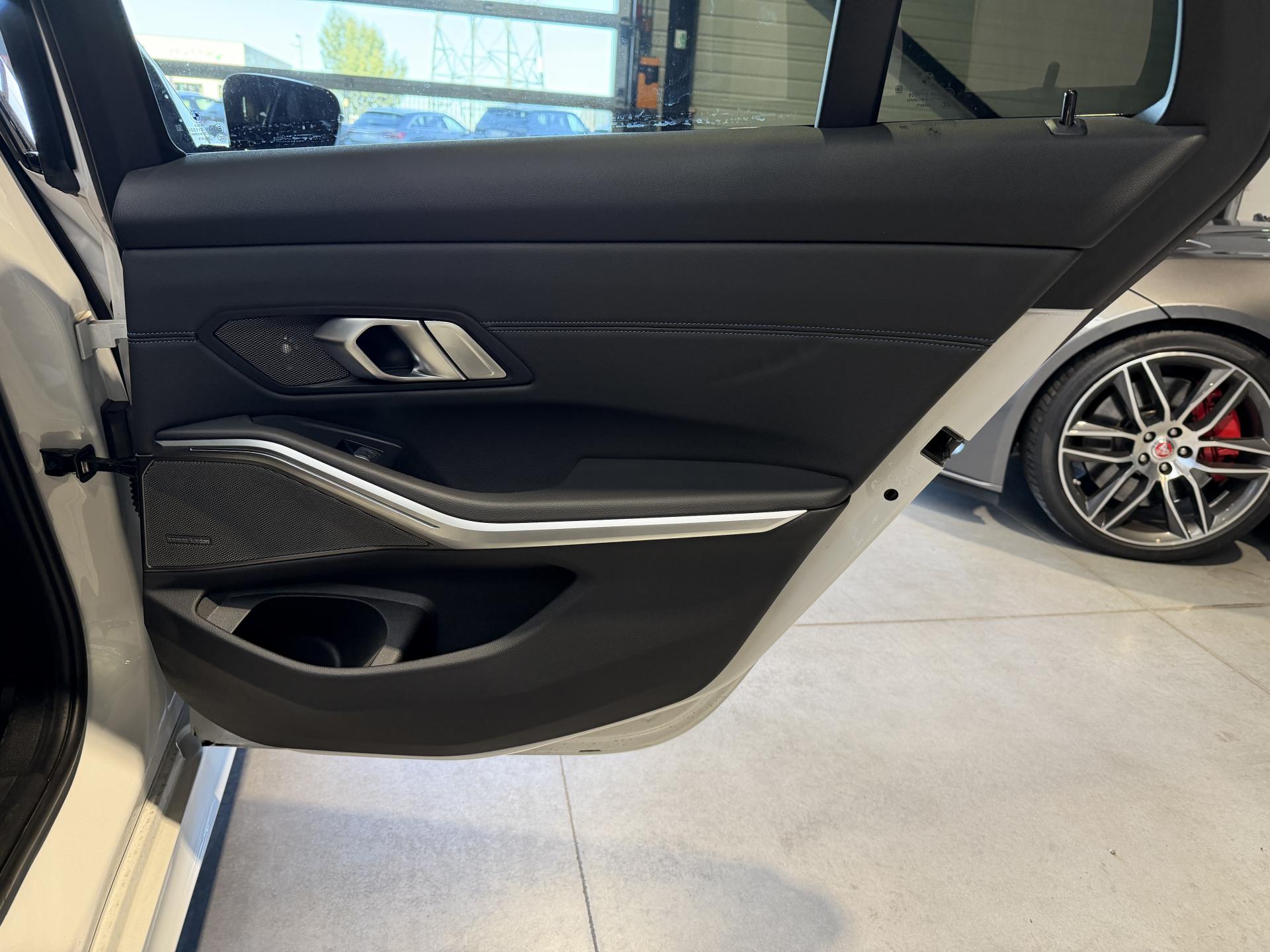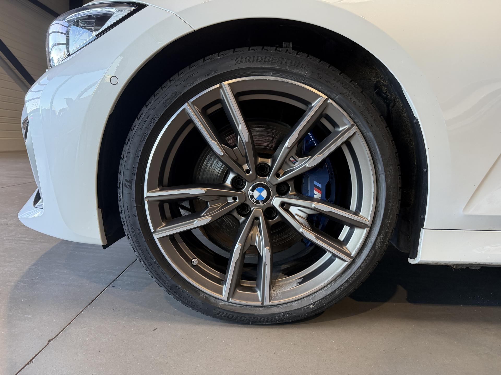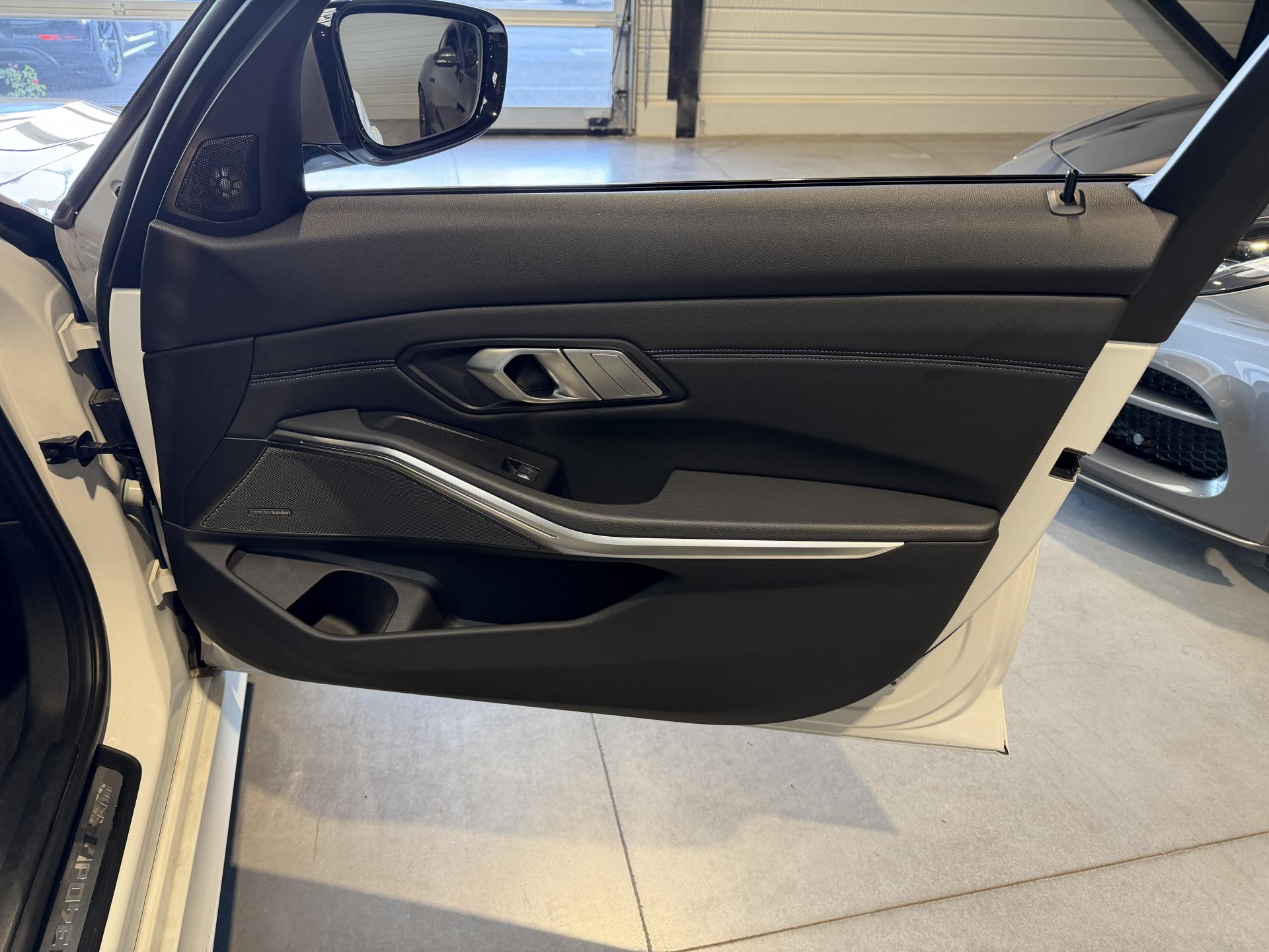 BMW Série 3 Touring 340D Xdrive X drive TOURING 340 Ch G 21 M Sport BVA break, extérieur blanc métalisée, intérieur Alcantara / Similicuir Sensatec "Schwarz" avec surpiqûres contrastantes bleues, 22 Cv, 5 portes, première mise en circulation le 04/08/2020.