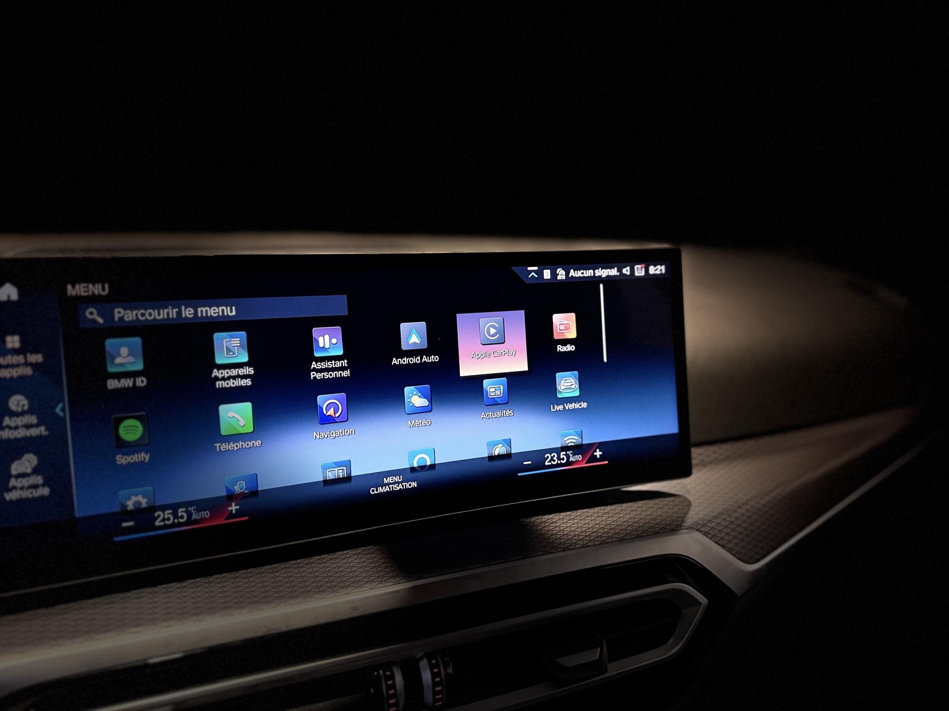 Nombreuses options : GPS, caméra de recul, Apple Carplay, radars avants et arrières de détection d'obstacles, Chauffage auxiliaire ( 1 250 EUR ), Driving Assistant Professional Régulateur de vitesse actif ACC+ avec Stop&Go, Pilote semi-automatique, Assistant de maintien de voie avec protection active anticollision latérale, avertisseur d'angle mort et avertisseur de franchissement de ligne, Speed Limit Assist, Avertisse ( 1 166 EUR ), Pack Compartiment à bagages Permet de dévérouiller la banquette AR électriquement depuis le coffre. ( 375 EUR ), Système Hi-Fi ( 375 EUR ), Volant chauffant ( 233 EUR ), Appui lombaire ajustable Appui lombaire à réglage électrique ( 225 EUR ), Kit de mobilité BMW Bouteille de mastic pour pneumatiques - compresseur électrique 12 V (connexion à une prise 12V) à gauche dans le compartiment à bagages ( 54 EUR ), Appel d'Urgence Intelligent (durée de vie de la voiture), Ciel de pavillon M Anthracite, Climatisation automatique 3 zones, Mesure individuelle de pression des pneumatiques, Rétroviseur intérieur électrochrome, Rétroviseurs extérieurs rabattables électriquement, conducteur électrochrome Y compris rétroviseur intérieur électrochrome, fonction mémoire (par Personal Profile), aide au parking, ...