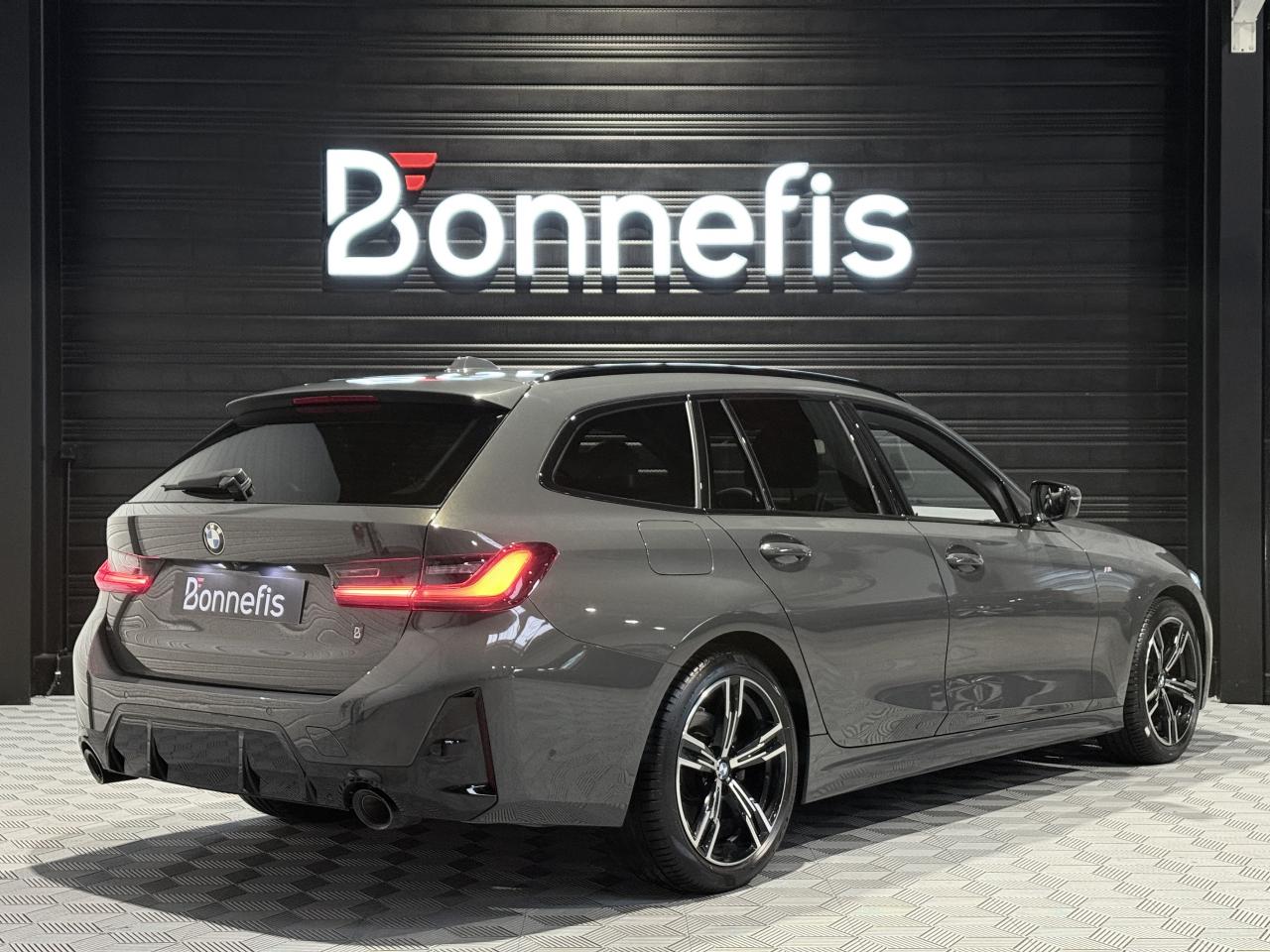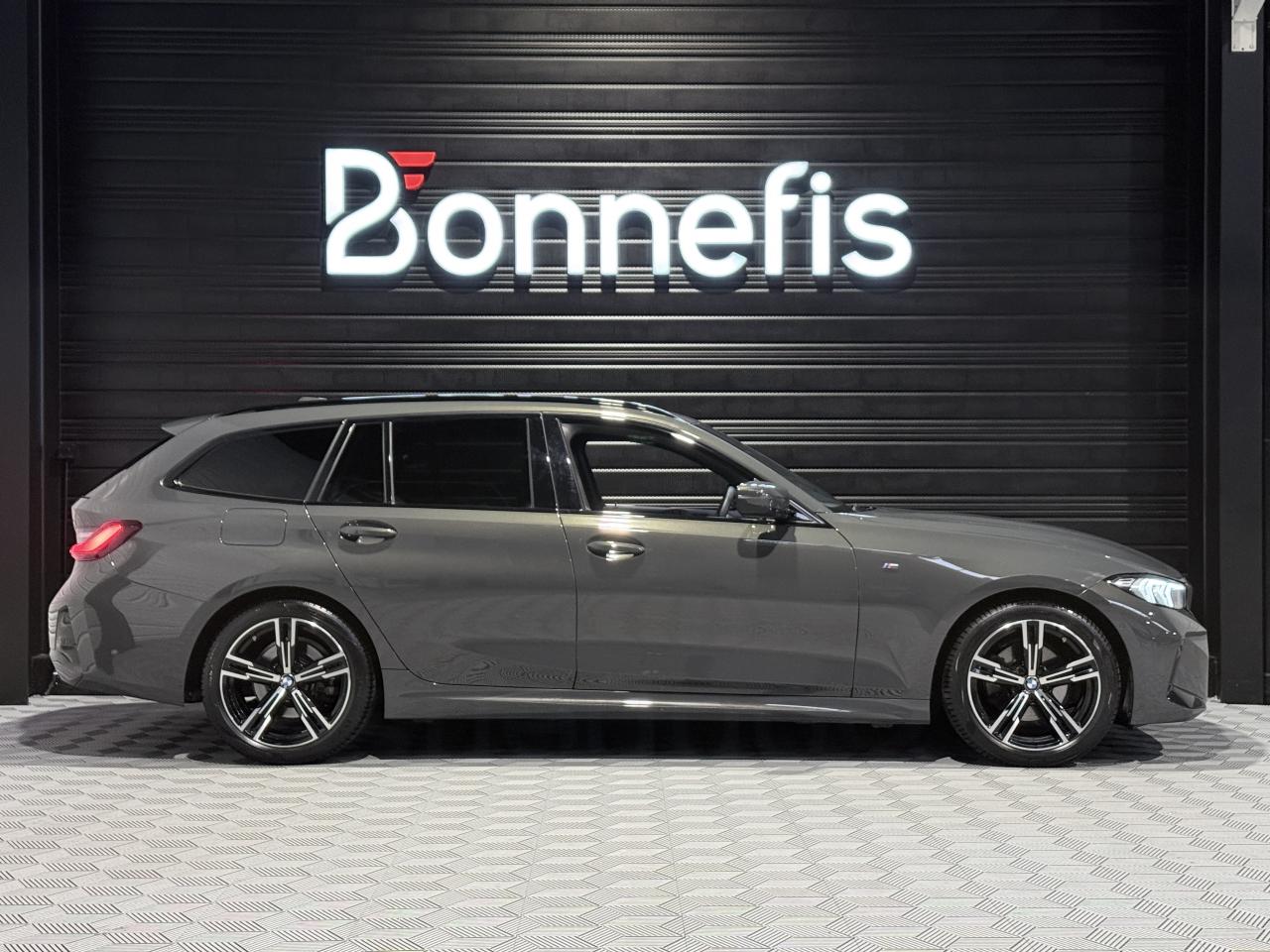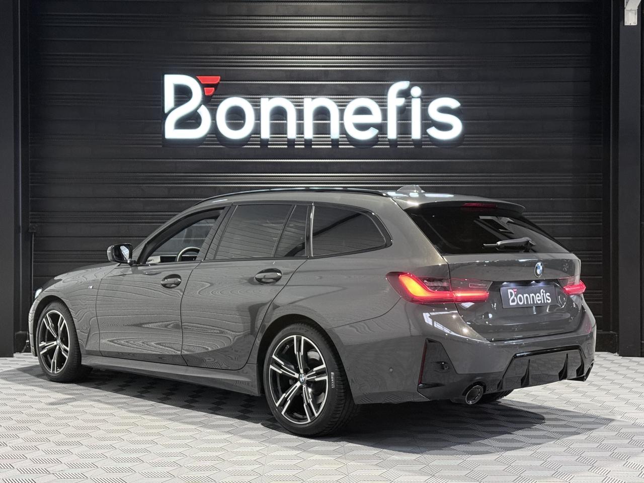 BMW Série 3 Touring 320D 190 Ch G 21 LCI M Sport BVA X Drive break, extérieur gris métallisée ( Dravitgrau métallisée Individual )( 1 791 € ), intérieur cuir Vernasca noir ( 1 250 € ), 10 cv, 5 portes, première mise en circulation le 01/12/2022.