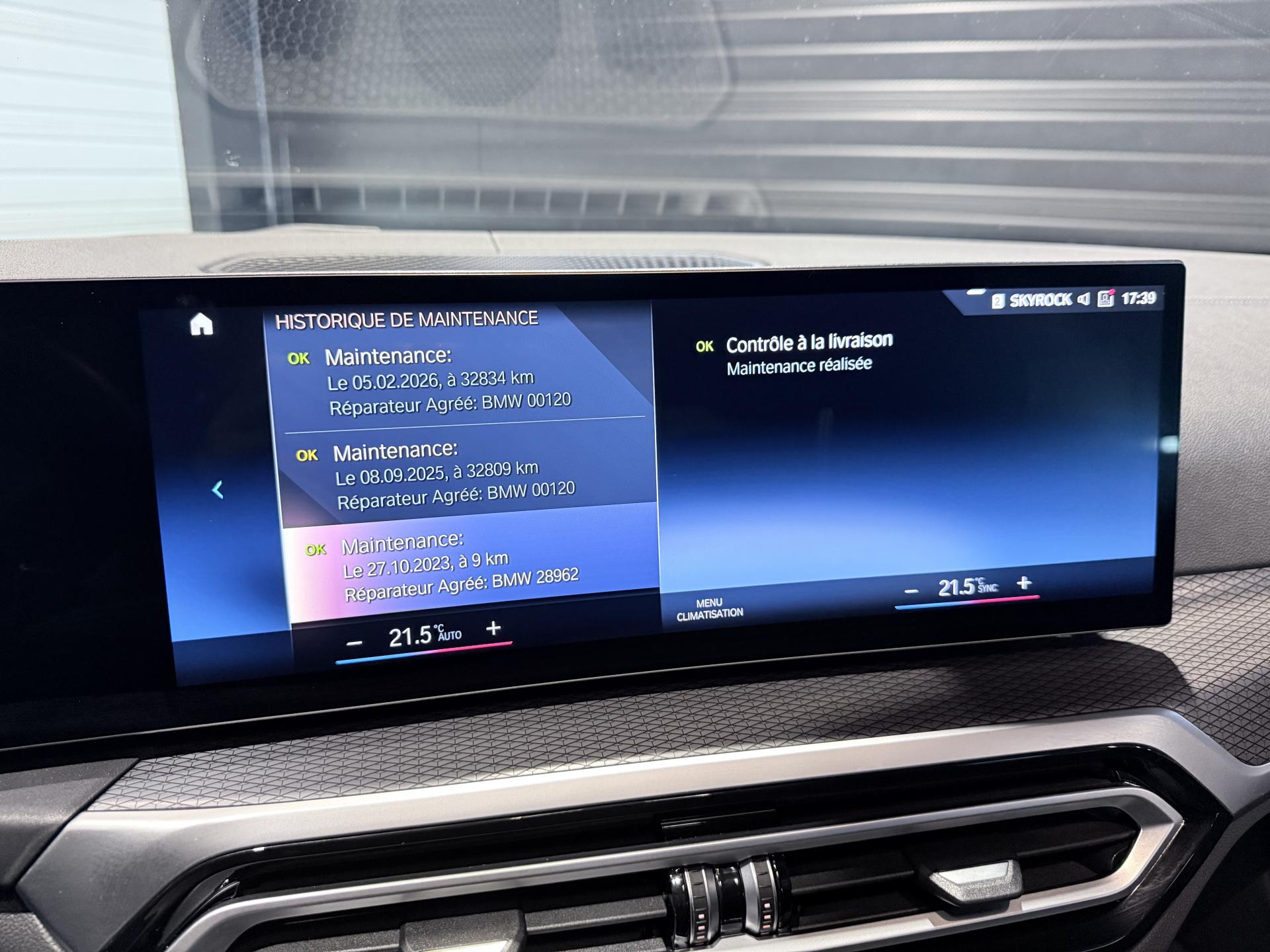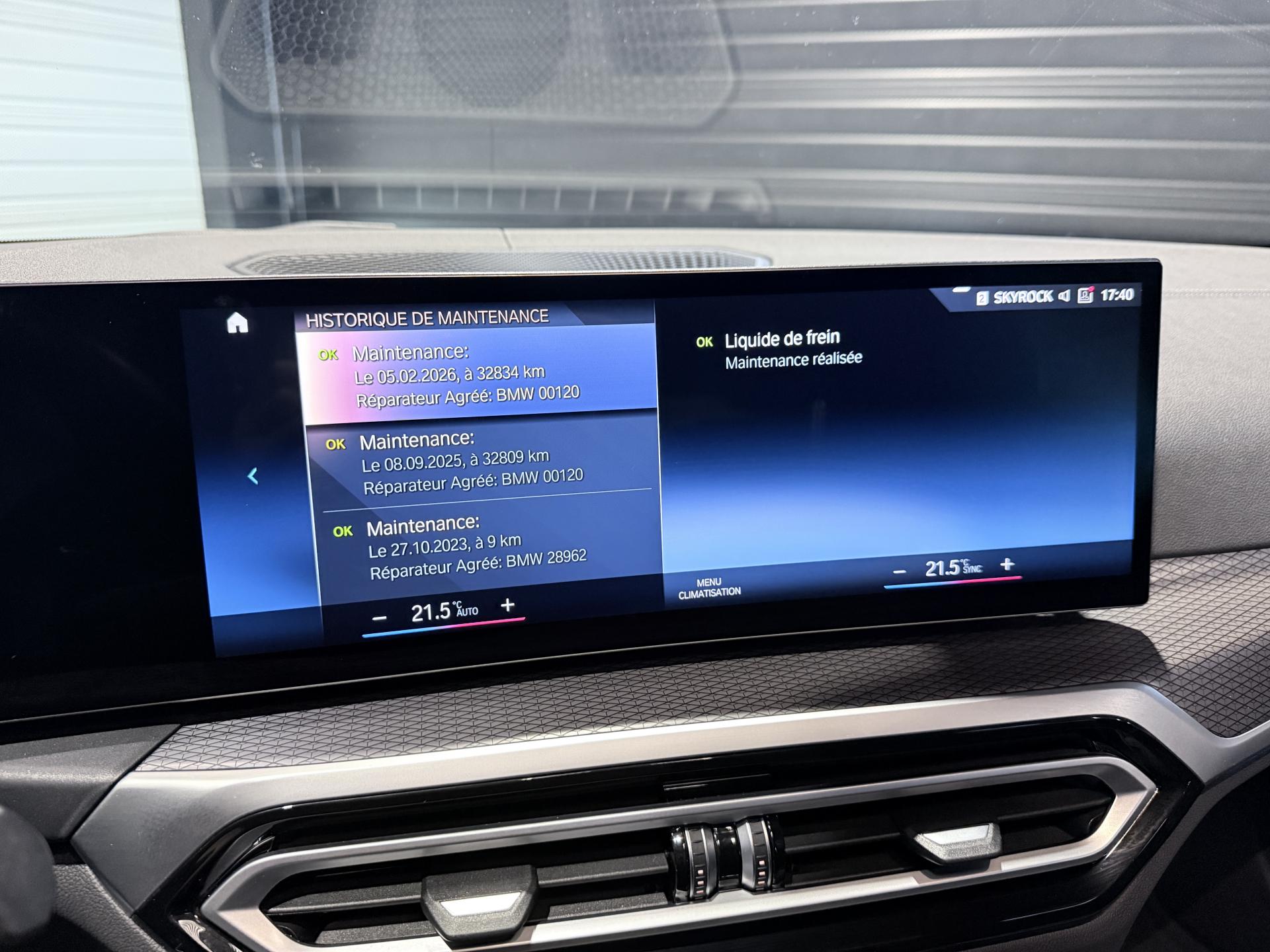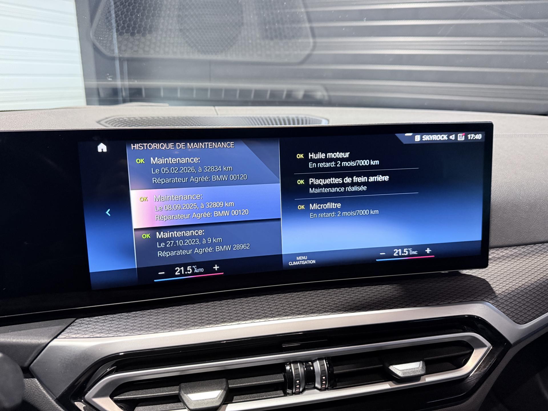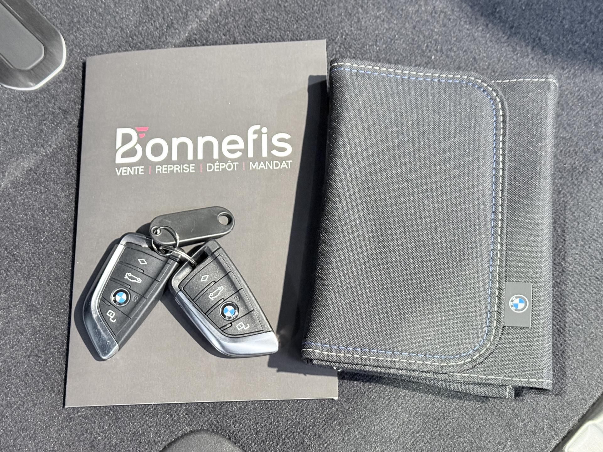 Nombreuses options : GPS, caméra de recul, Apple Carplay, radars avants et arrières de détection d'obstacles, Drive Assist Pro ( 1 958 EUR ), Park Assist ( 541 EUR ), Alarme antivol ( 500 EUR ), Planche de bord en Similicuir Sensatec ( 458 EUR ), Boîte de vitesses automatique Sport 8 rapports avec palettes au volant ( 166 EUR ), Feux de route anti-éblouissement ( 166 EUR ), Kit de mobilité BMW ( 54 EUR ), Accès confort avec préparation "BMW Digital Key", BMW Live Cockpit Navigation Plus, Ciel de pavillon M Anthracite, Climatisation automatique 3 zones, Eclairage d'ambiance avec tapis de lumière, Mesure individuelle de pression des pneumatiques, Rétroviseur intérieur électrochrome, Rétroviseurs extérieurs rabattables électriquement, électrochrome côté conducteur, Recharge sans fil par induction, Sièges AV électriques à memoire conducteur Réglages électriques pour les sièges à AV: hauteur du siège, inclinaison du dossier, position du siège, Réglage de la colonne de direction électrique.Siège conducteur avec m, Sièges AV avec soutien lombaire, Sièges AV chauffants, Système Hi-Fi Système Hi-Fi muni de 10 HP : - 2 graves centraux sous les sièges AV - 5 mediums : 2 dans les portes AV, 2 dans les portes AR et 1 sur le haut de la planche de bord - 3 aigus dans les triangles des rétroviseurs et sur la planche de bord Amplificateur dig, Vitrage insonorisant Vitres latérales plus épaisses en verre de sécurité feuilleté.Confort de conduite accru en réduisant les bruits extérieurs, ...