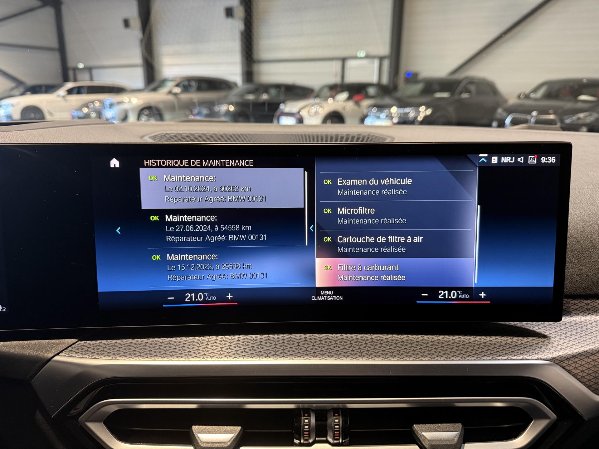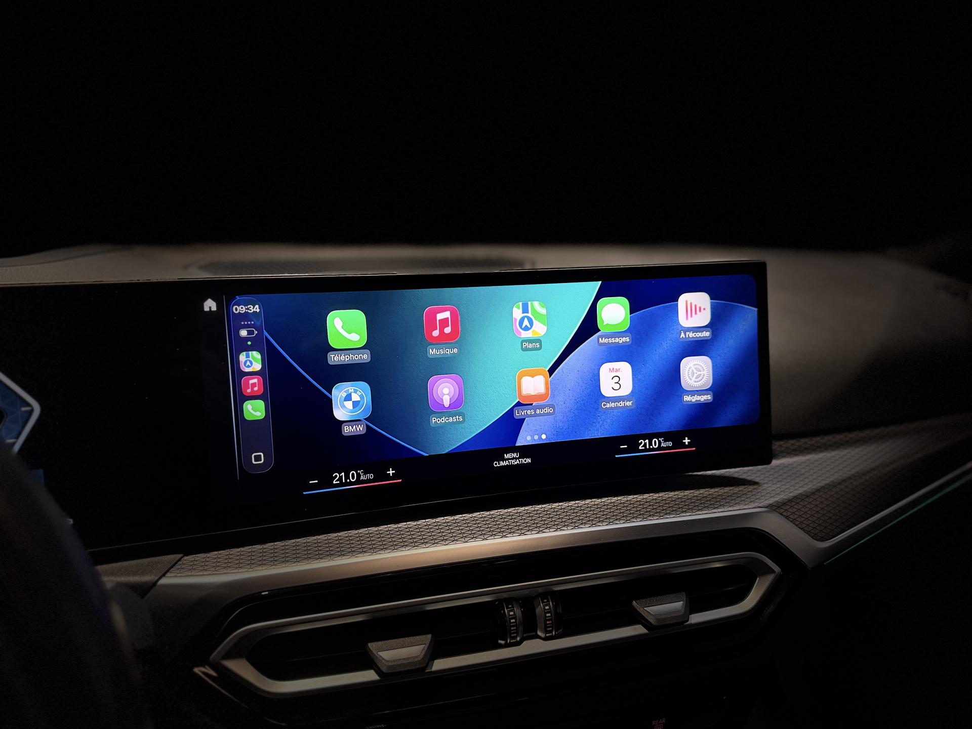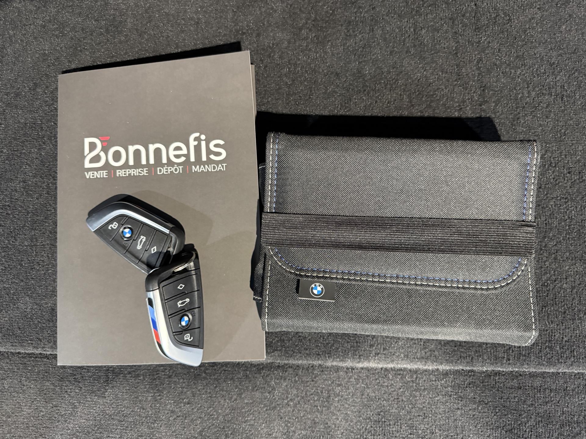 Nombreuses options : GPS, caméra de recul, Apple Carplay, radars avants et arrières de détection d'obstacles, régulateur de vitesses actif ( ACC / Active Cruise Control ) ( 583 € ), vitrage calorifuge ( 366 € ), boîte de vitesses automatique Sport 8 rapports avec palettes au volant ( 166 € ), siège conducteur avec soutien lombaire ( 133 € ), kit de mobilité BMW ( 45 € ), BMW Live Cockpit Navigation Pro avec Affichage Tête Haute HUD en relation avec Pack Innovation, sièges AV électriques à mémoire conducteur, sièges AV chauffants, recharge sans fil par induction, système Hi-Fi, climatisation automatique 3 zones, Park Assist, Drive Assist, accès confort avec préparation "BMW Digital Key", ciel de pavillon M Anthracite, rétroviseurs extérieurs rabattables électriquement, électrochrome côté conducteur, éclairage d'ambiance avec tapis de lumière, feux de route anti-éblouissement, vitrage insonorisant, mesure individuelle de pression des pneumatiques, hayon de coffre électrique, ...