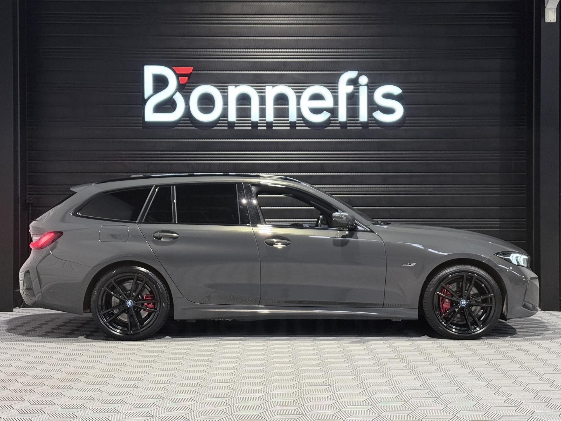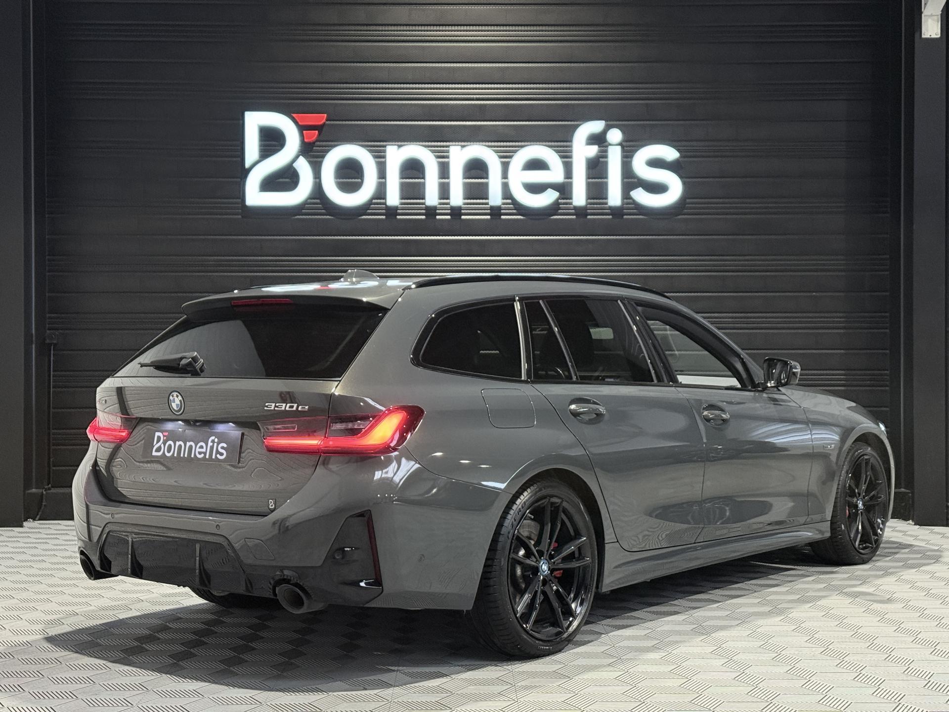 BMW Série 3 Touring 330E LCI Touring xDrive 292 Ch G 21 M Sport BVA break, extérieur gris métalisée ( Dravitgrau métallisé Individual )( 1 791 € ), intérieur Cuir / Alcantara noir, 10 cv, 5 portes, première mise en circulation le 06/12/2022.