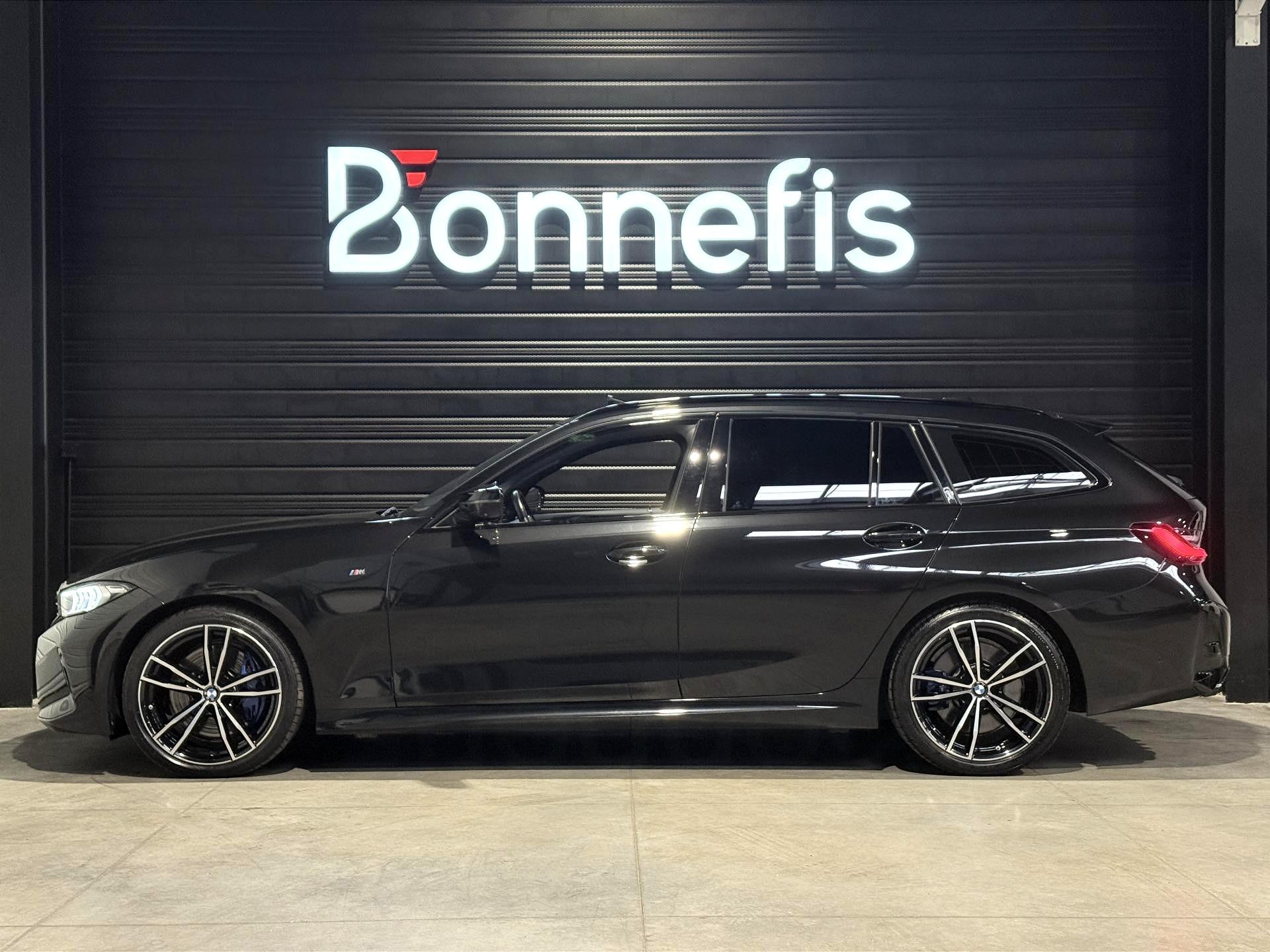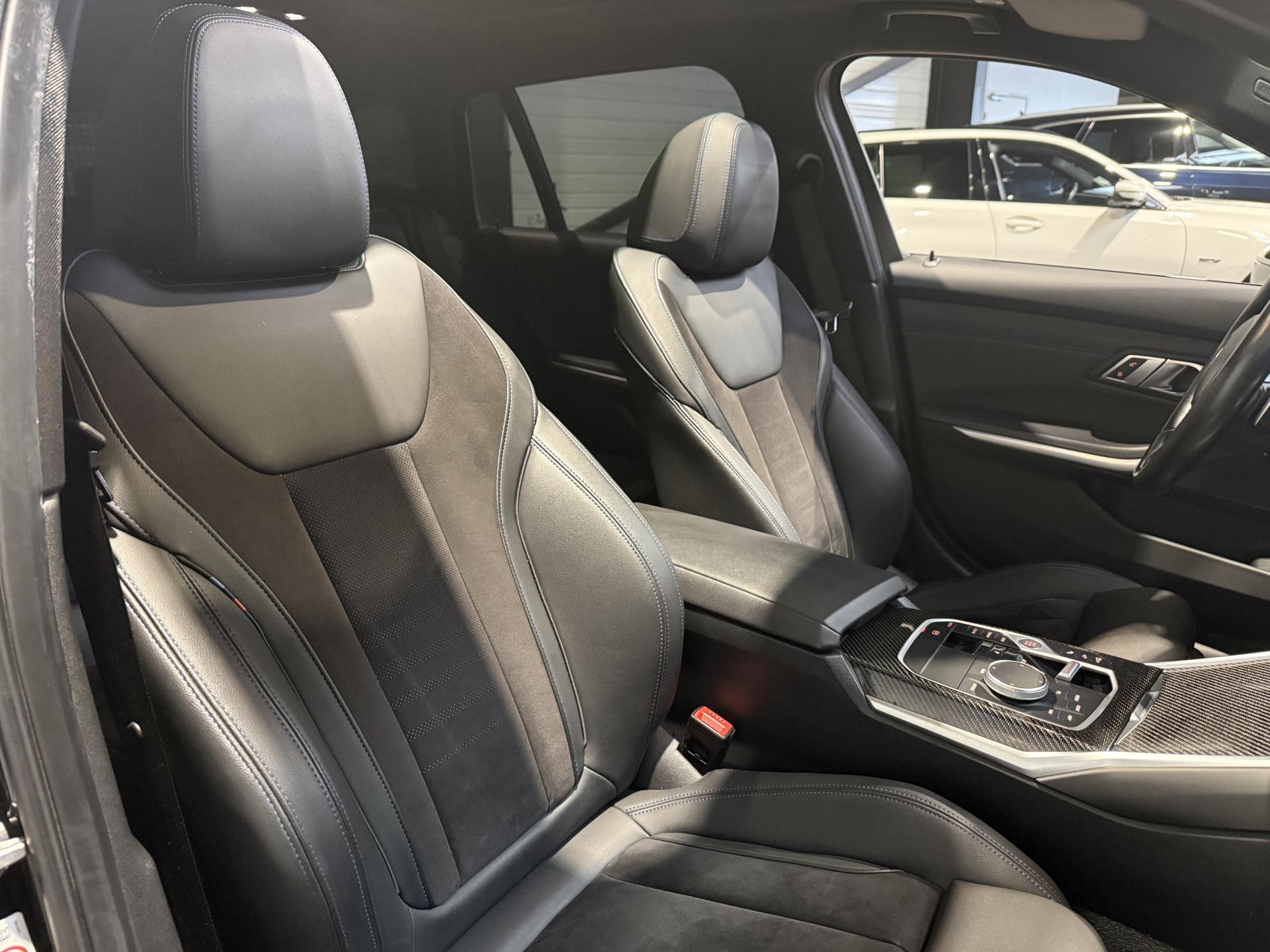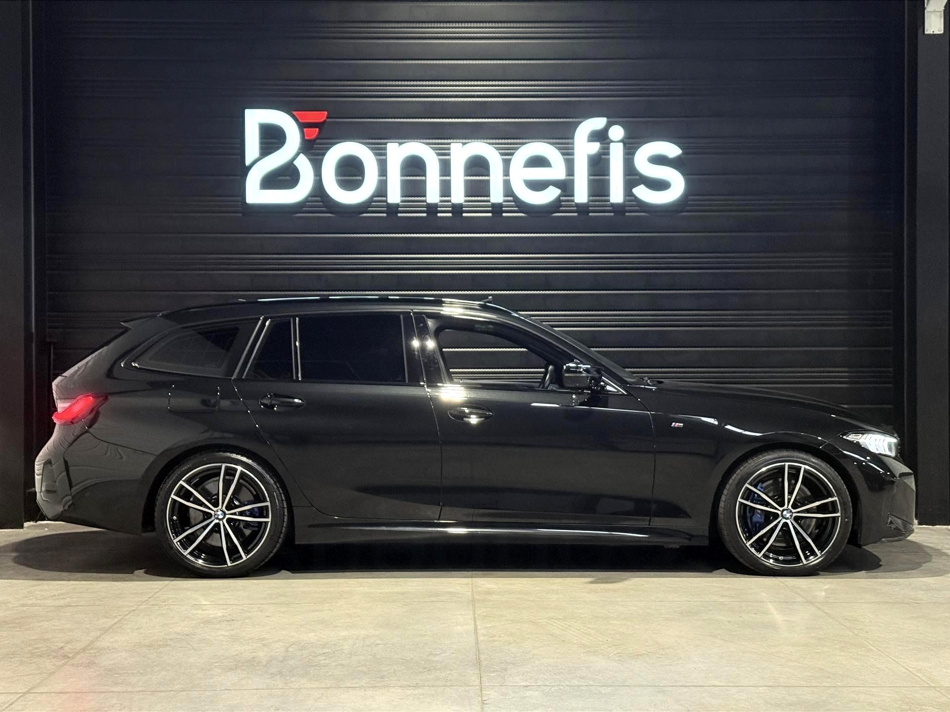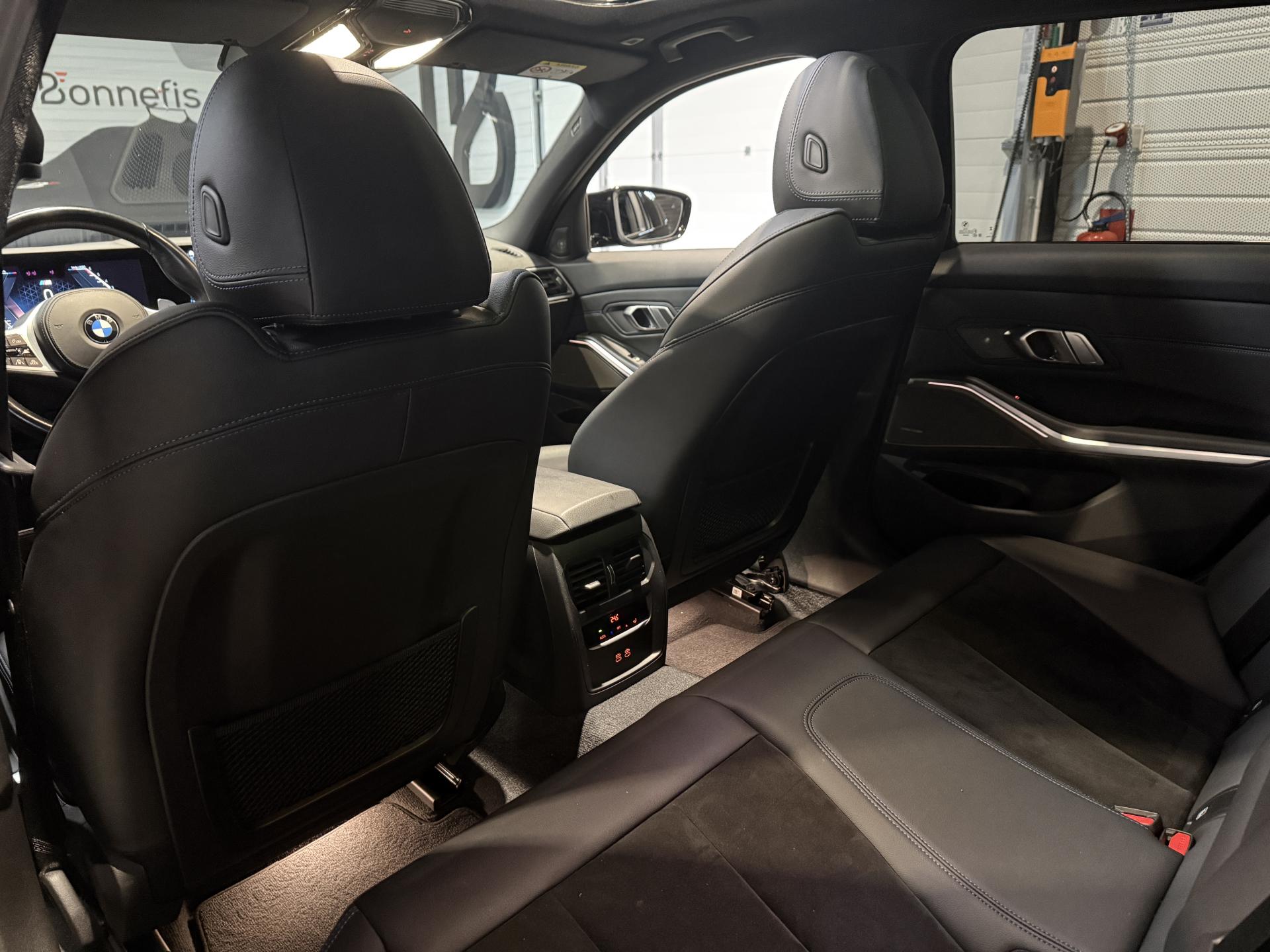 BMW Série 3 Touring 340d 3.0 340 Ch G 21 LCI M Sport BVA X Drive break, extérieur noir métallisée ( 908 € ), intérieur Sellerie Alcantara / Similicuir Sensatec "Schwarz" avec surpiqûres contrastantes Bleues, 22 cv, 5 portes, première mise en circulation le 18/10/2022.