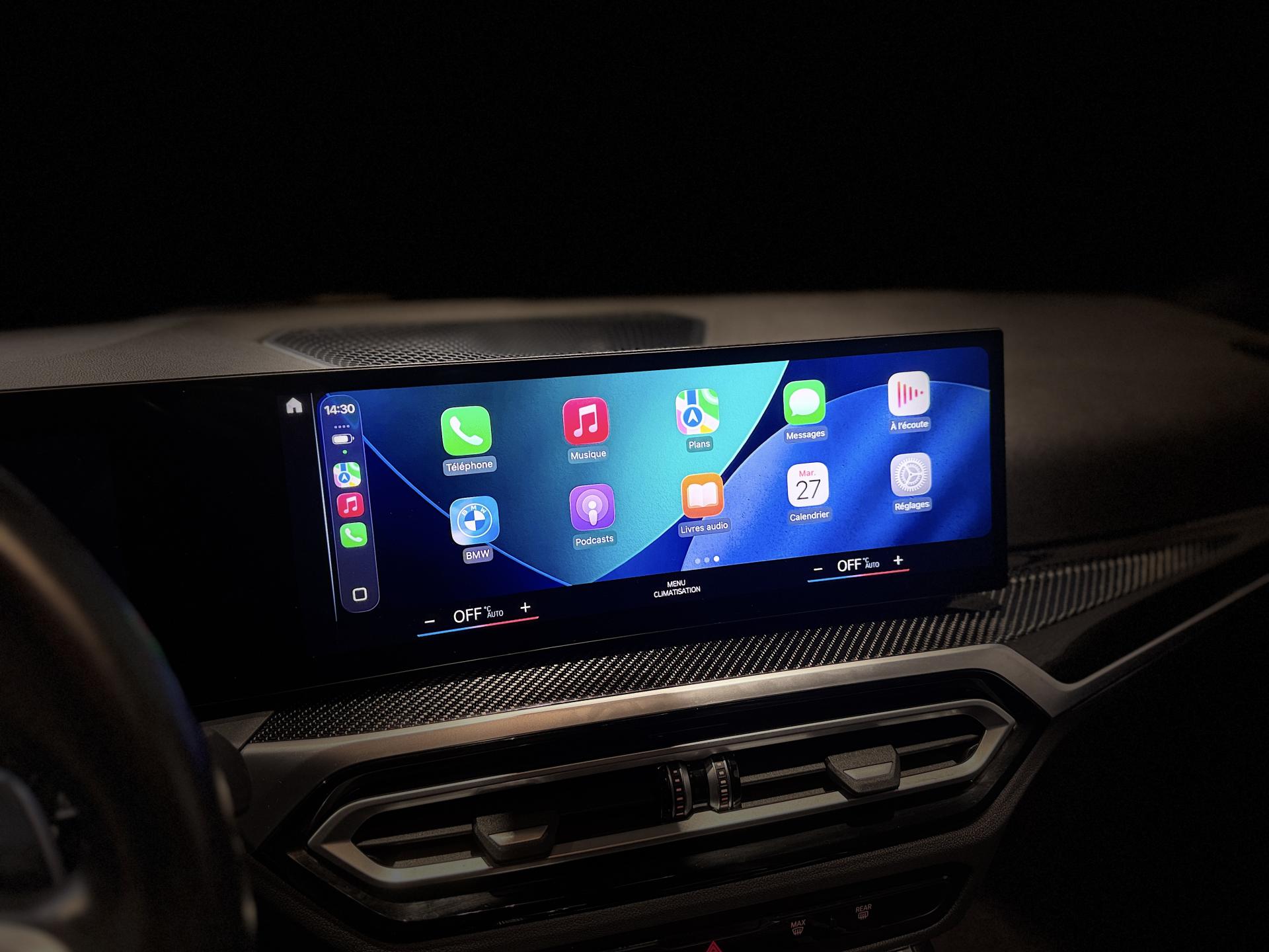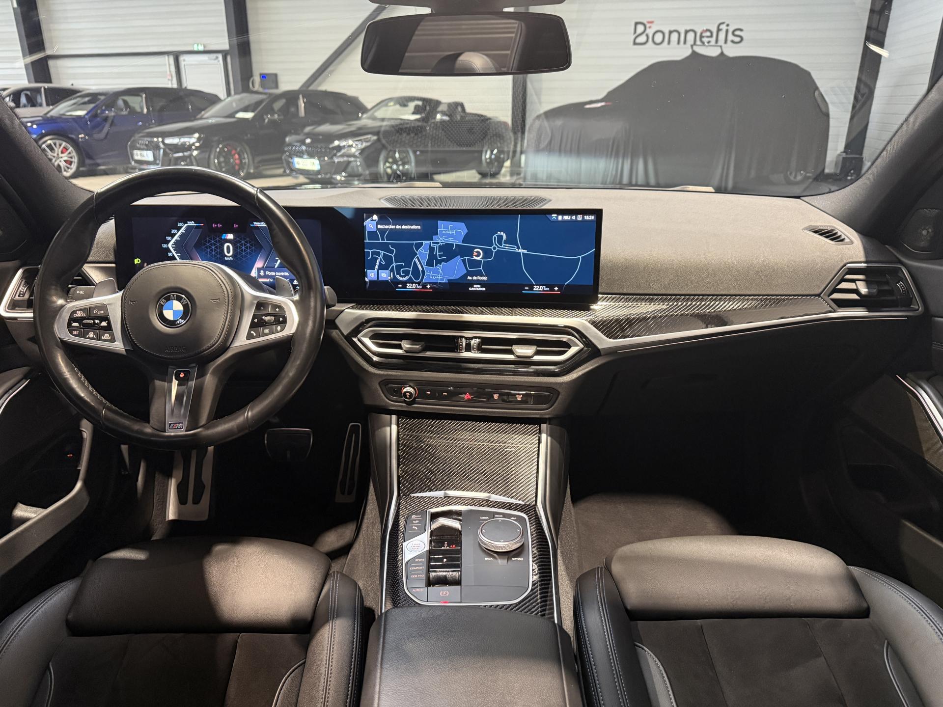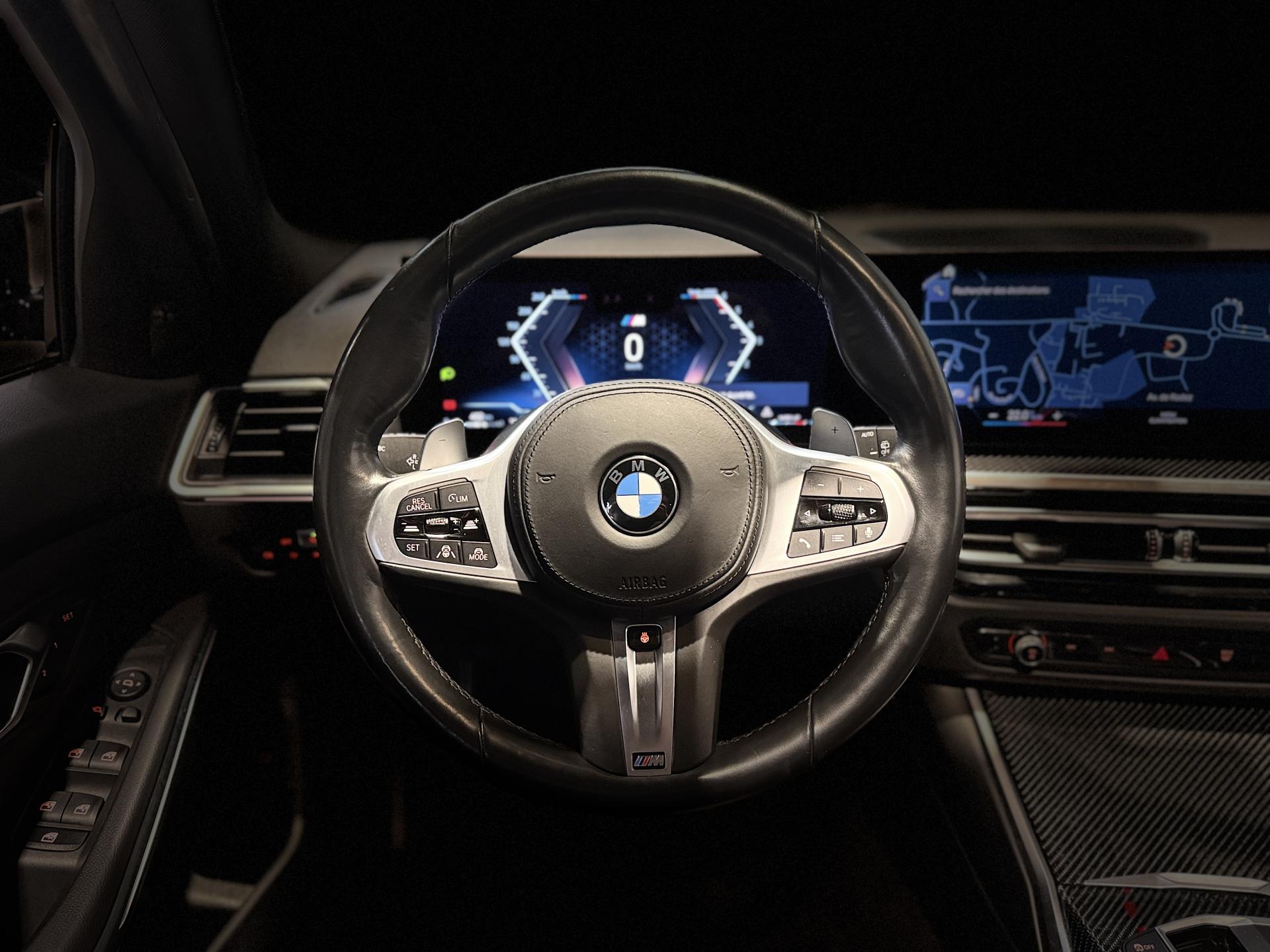 Nombreuses options : GPS, caméra de recul, Appel Carplay, radars avants et arrières de détection d'obstacles, Drive Assist Pro ( 1 958 € ), toit ouvrant panoramique en verre ( 1 375 € ), Parking Assistant Plus avec Surround View, Remote 3D View, Drive Recorder, Remote Theft Recorder ( 1 041 € ), jantes en alliage léger 19" style 791 M bicolores à rayons doubles ( 958 € ), système Hi-Fi Harman Kardon avec amplificateur digital 464W et 17 haut-parleurs, BMW Live Cockpit Navigation Plus, BMW Widescreen, inserts décoratifs M en fibre de carbone ( 500 € ), Park Assist Plus ( 500 € ), Shadow Line M brillant étendu ( 216 € ), sièges AV électriques à mémoire conducteur, recharge sans fil par induction, climatisation automatique 3 zones, rétroviseurs extérieurs rabattables électriquement, électrochrome côté conducteur, rétroviseur intérieur électrochrome, siège conducteur avec soutien lombaire ( 133 € ), sièges AV chauffants ( 333 € ), volant chauffant ( 233 € ), Drive Recorder ( 208 € ), feux de route anti-éblouissement, appel d'urgence intelligent, boîte de vitesses automatique Sport 8 rapports avec palettes au volant, ciel de pavillon M Anthracite, mesure individuelle de pression des pneumatiques, hybridation légère (48V), vitrage insonorisant, hayon de coffre électrique, climatisation tri-zones, ...