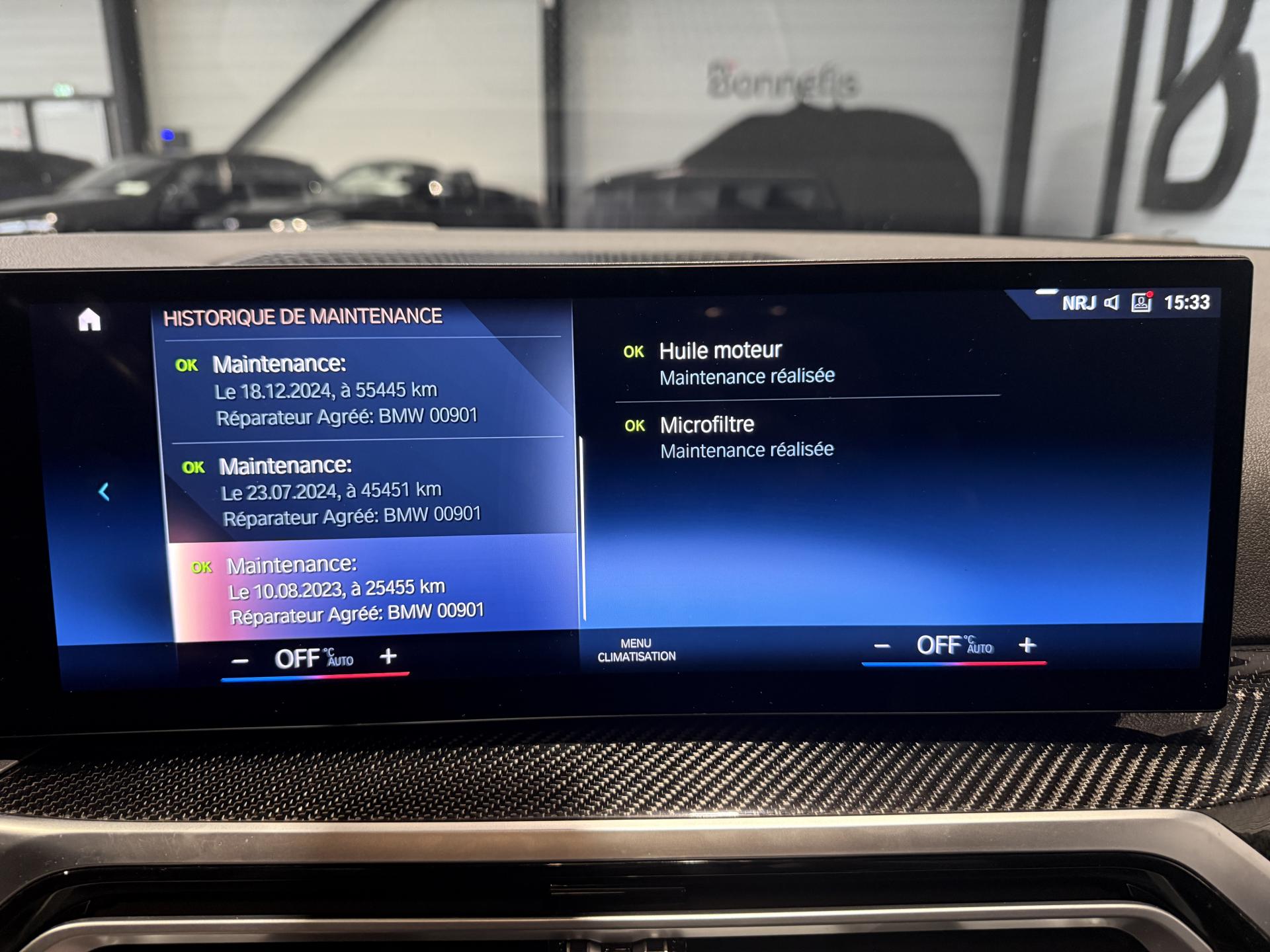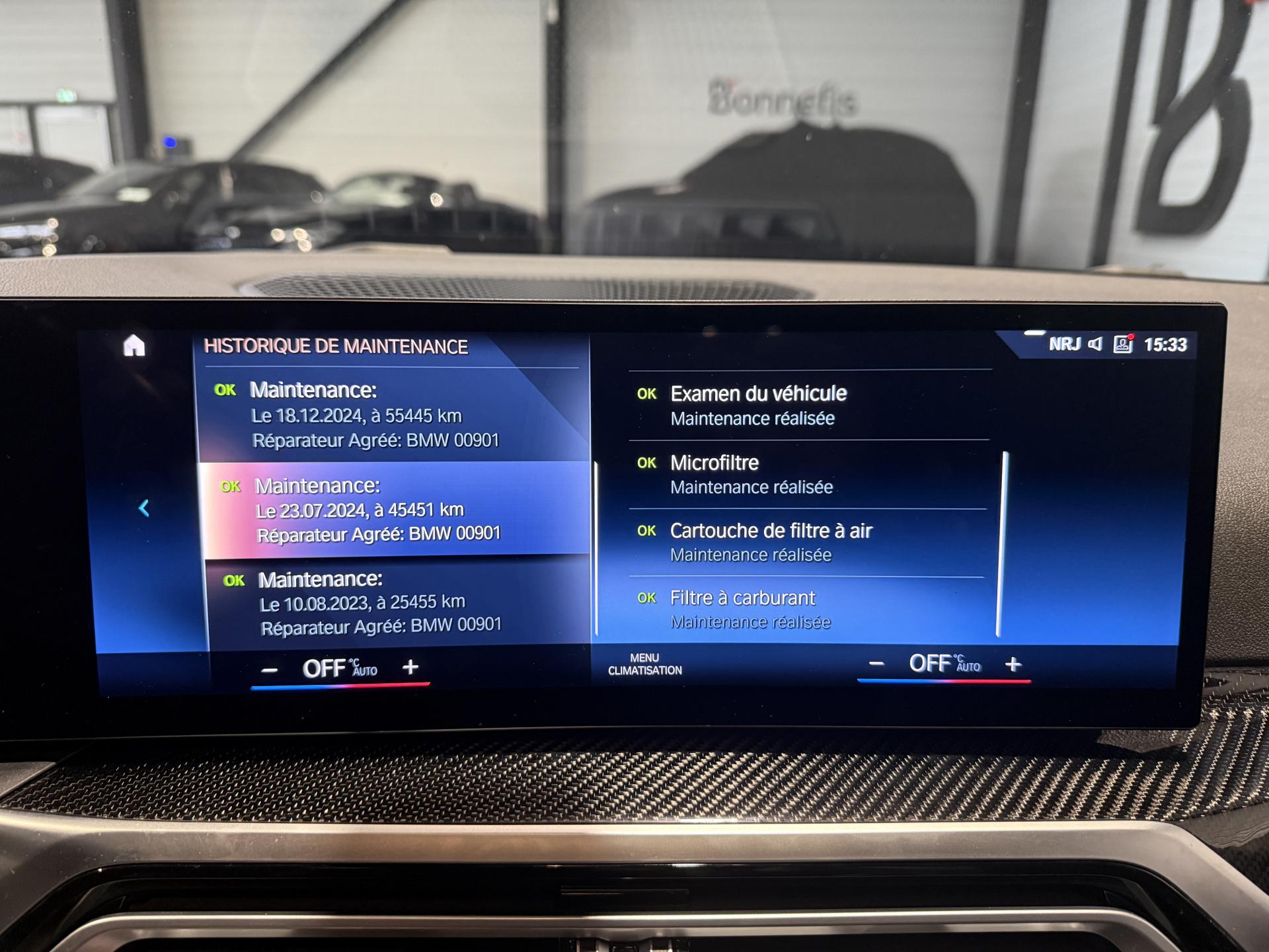 Dernier entretien fait le 15/08/2025 à 72 627Km chez BMW. ( Vidange moteur + microfiltre + liquide de frein )