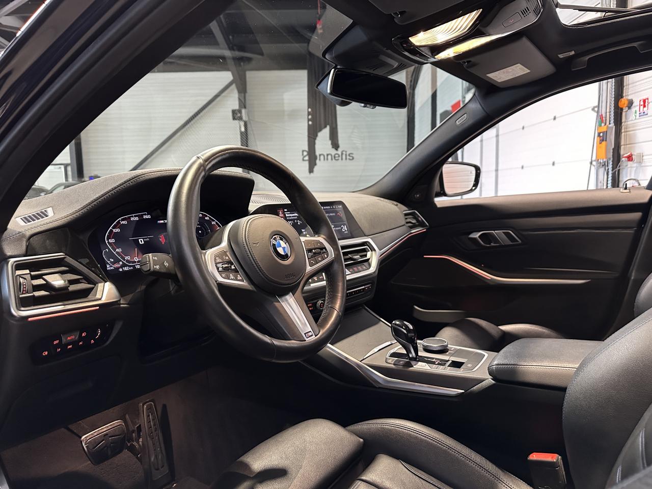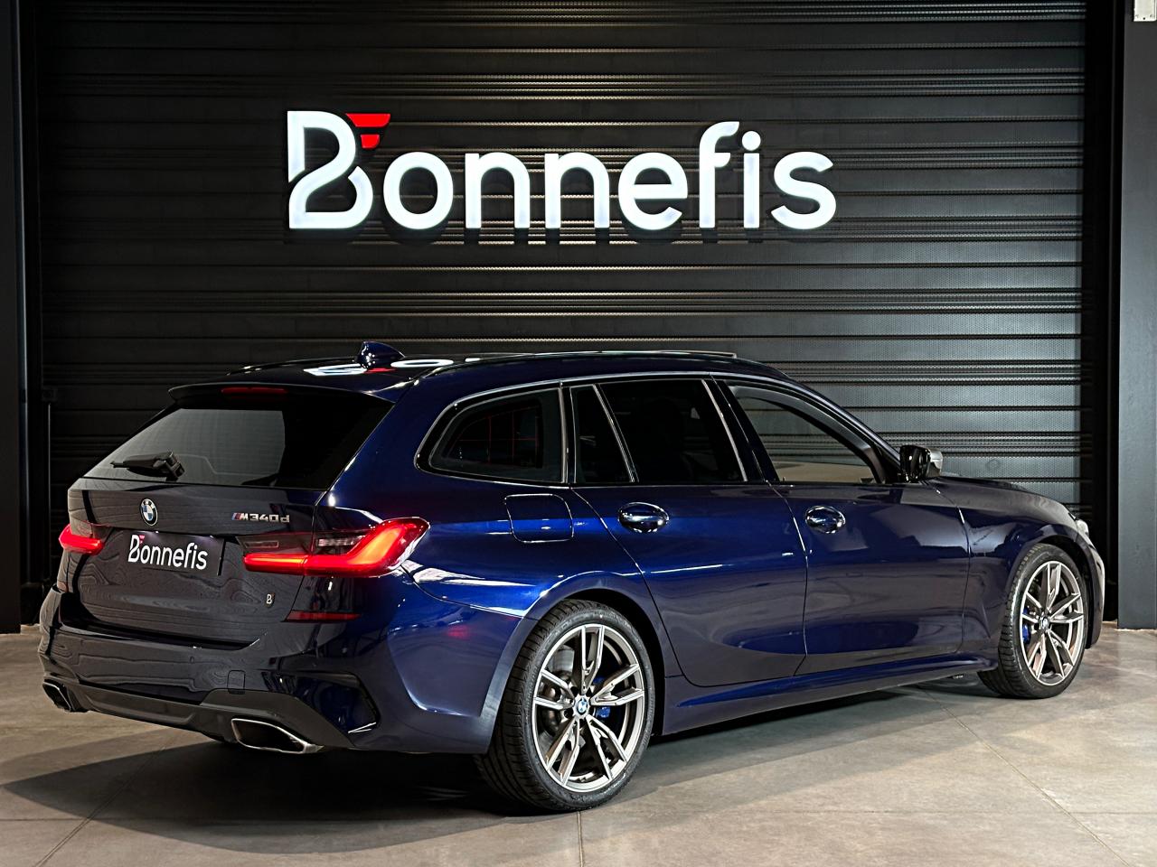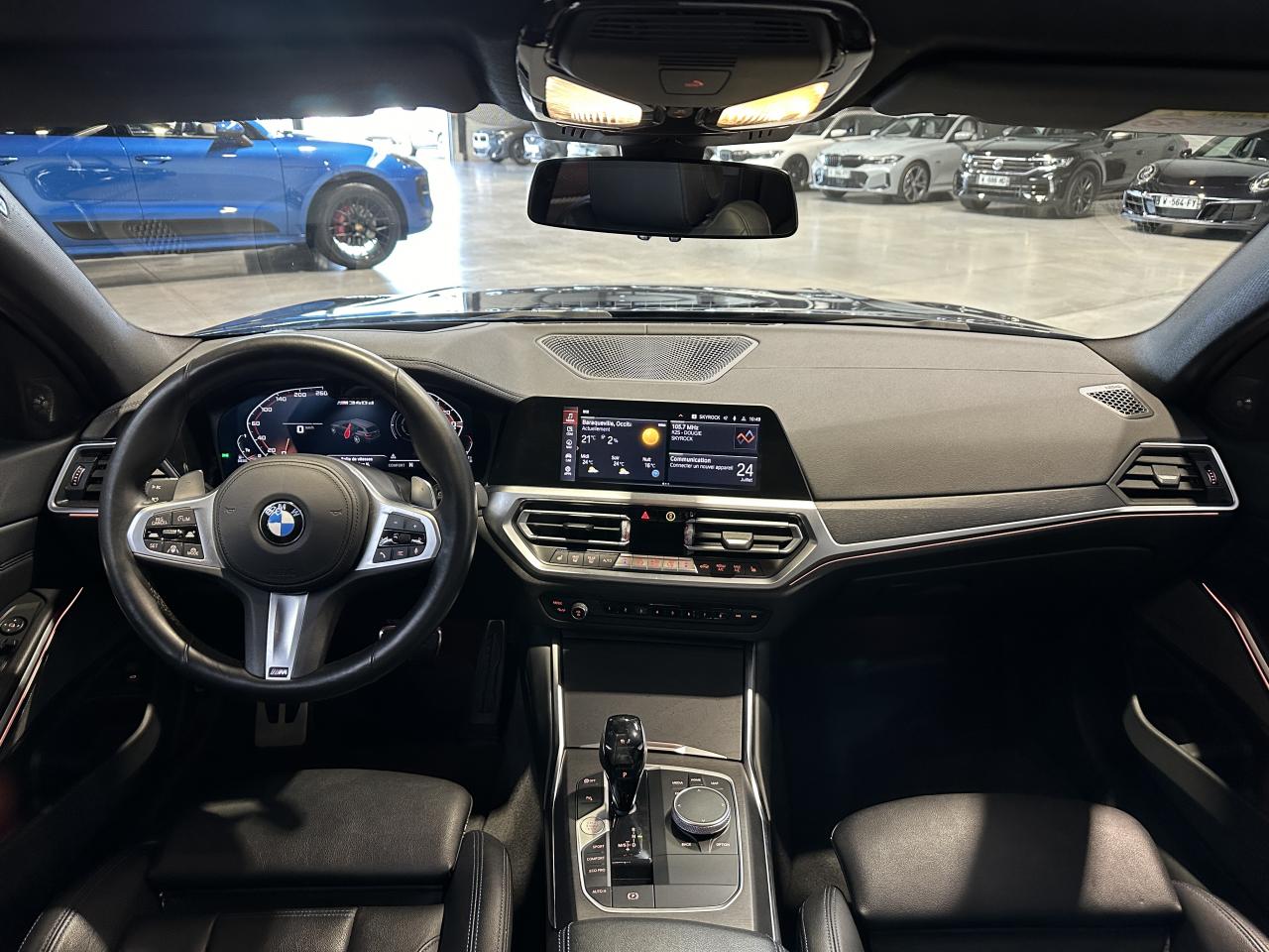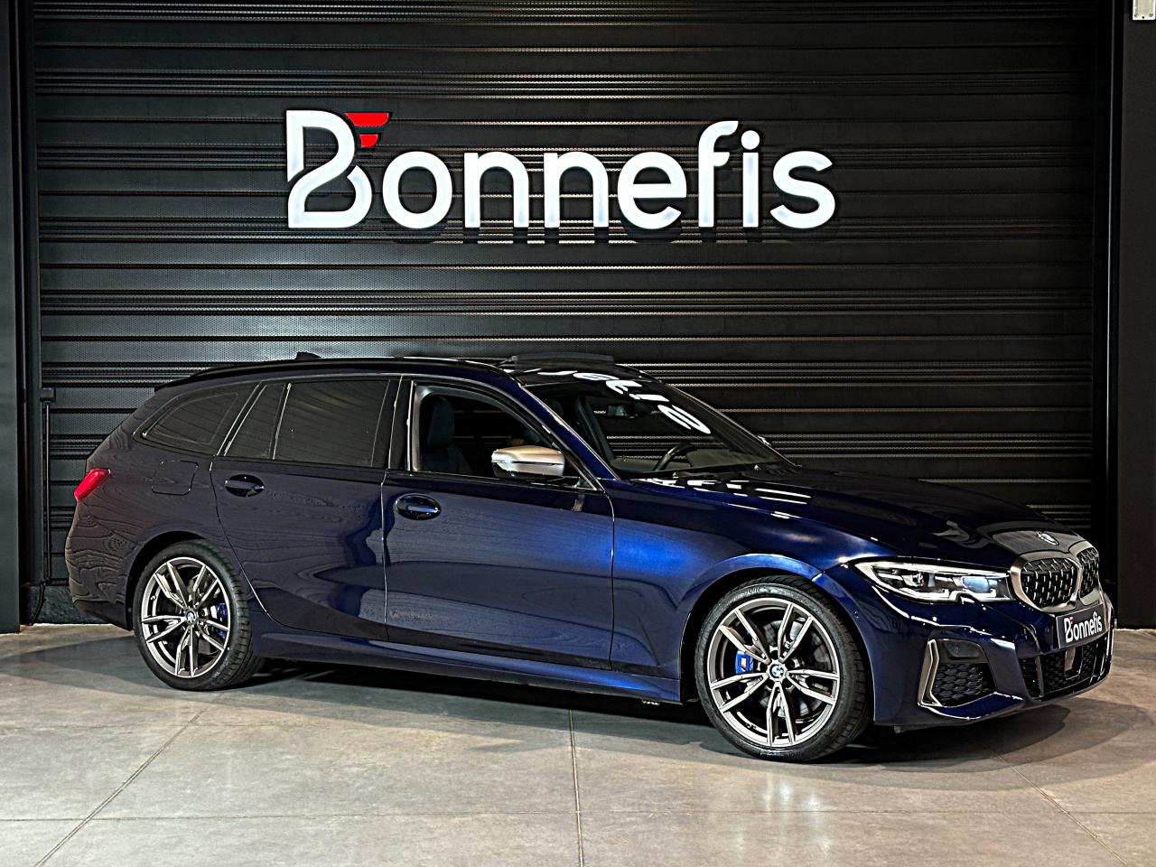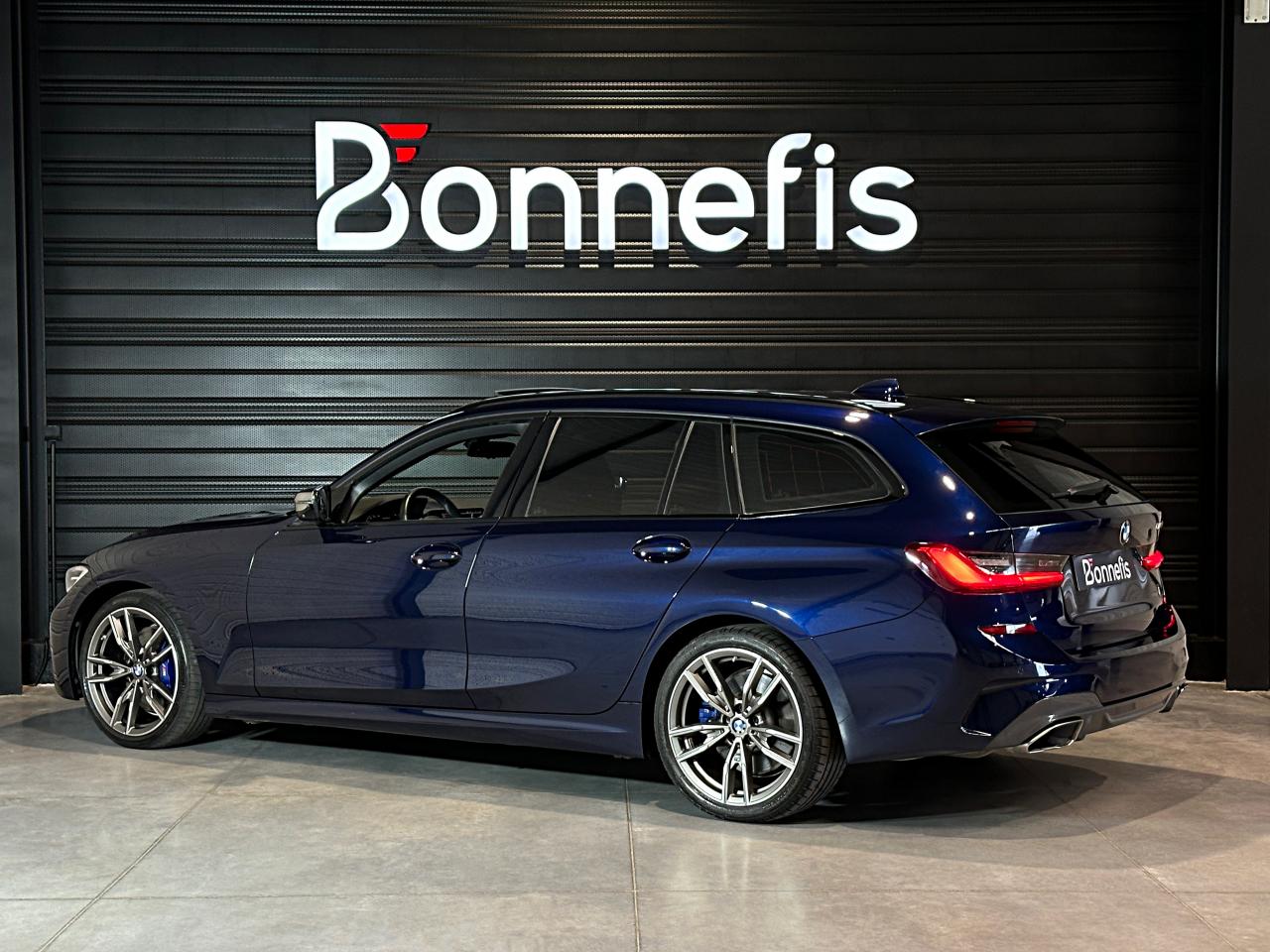 Bmw Série 3 Touring M340dA 340d 340 d Mild Hybrid xDrive 340ch, extérieur bleu métallisée individual ( 1 791 € ), intérieur cuir "Vernasca" Schwarz avec surpiqûres Bleues / Teinte d'habitacle Schwarz ( 1 541 € ), 22cv, 5 portes, mise en circulation le 06/05/2021.