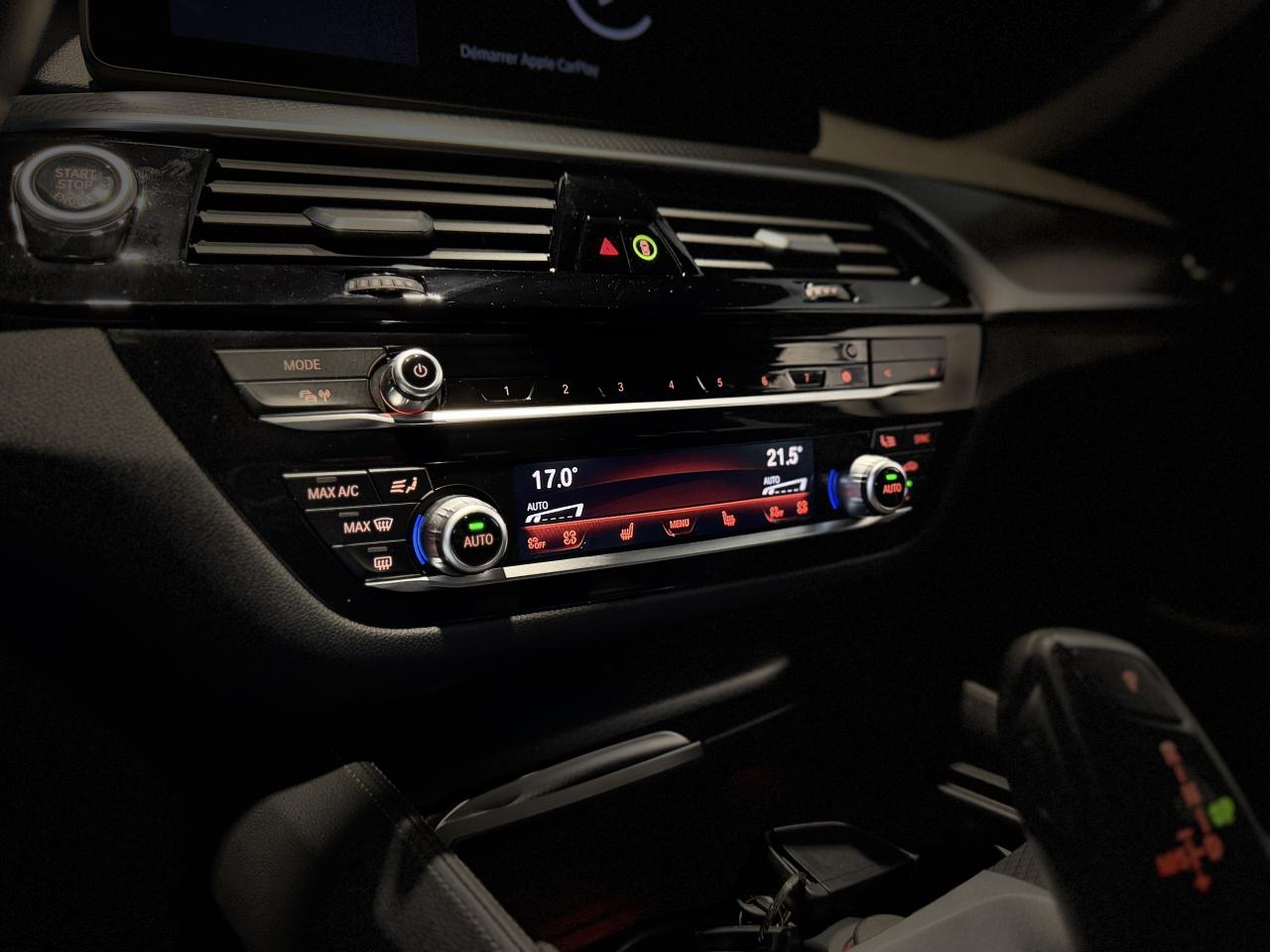 Nombreuses options : GPS, caméra de recul, Apple CarPlay, radars avants et arrières de détection d'obstacles, régulateur de vitesse, Affichage Tête Haute HUD Couleur ( 1250 € ), Climatisation automatique 4 zones à fonctionnalités étendues ( 500 € ), Système Hi-Fi muni de 10 haut-parleurs ( 458 € ), Vitrage calorifuge ( 391 € ), Stores pare-soleil pour vitres latérales AR ( 291 € ), Sièges AV chauffants avec intensité réglable sur 3 niveaux ( 375 € ), Sièges AV avec appui lombaire ajustable ( 250 € ), Garnissage intérieur en similicuir Sensatec perforé Canberrabeige Teinte d'habitacle Schwarz ( 166 € ), BMW Live Cockpit Navigation Pro, Boîte de vitesse automatique Sport 8 rapports avec Steptronic et palettes au volant, Freins Sport M avec étriers de freins bleus et désignation M...