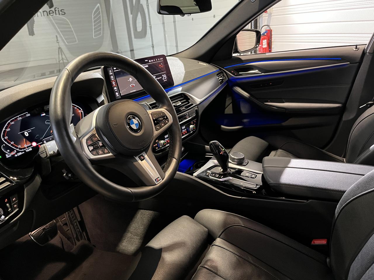 Nombreuses options : GPS, caméra de recul, Apple CarPlay, radars avants et arrières de détection d'obstacles, régulateur de vitesse, garnissage intérieur en cuir Dakota Schwarz teinte d'habitacle Schwarz ( 1 416 € ), sièges Advanced Comfort à l'AV ( 1 416 € ), projecteurs Laser BMW ( 1 041 € ), crochet d'attelage entièrement électrique ( 1 016 € ), teinte de carrosserie métallisée sur M Sport ( 1 000 € ), accès confort ( 791 € ), sièges AV à ventilation active ( 750 € ), freins Sport M étriers de freins bleus avec désignation M ( 625 € ), climatisation automatique 4 zones à fonctionnalités étendues ( 500 € ), volant chauffant ( 250 € ), protection active des occupants ( 300 € ), vitrage calorifuge ( 391 € ), sièges AV chauffants assise et dossier des sièges AV chauffants, intensité selon 3 niveaux, fonction de chauffage rapide ( 375 € ), rails de toit Shadow M Line brillant ( 83 € ), affichage tête haute HUD couleur, omission BMW Digital Key...