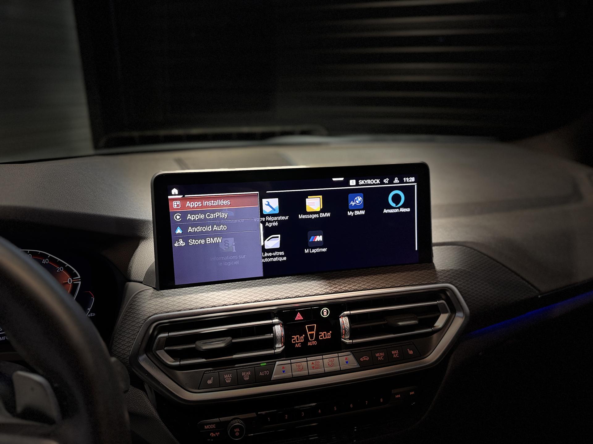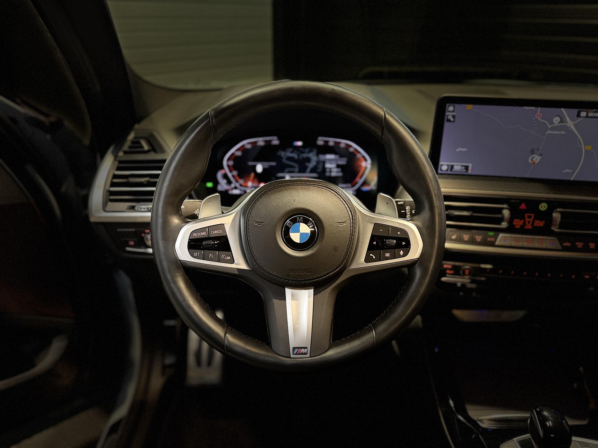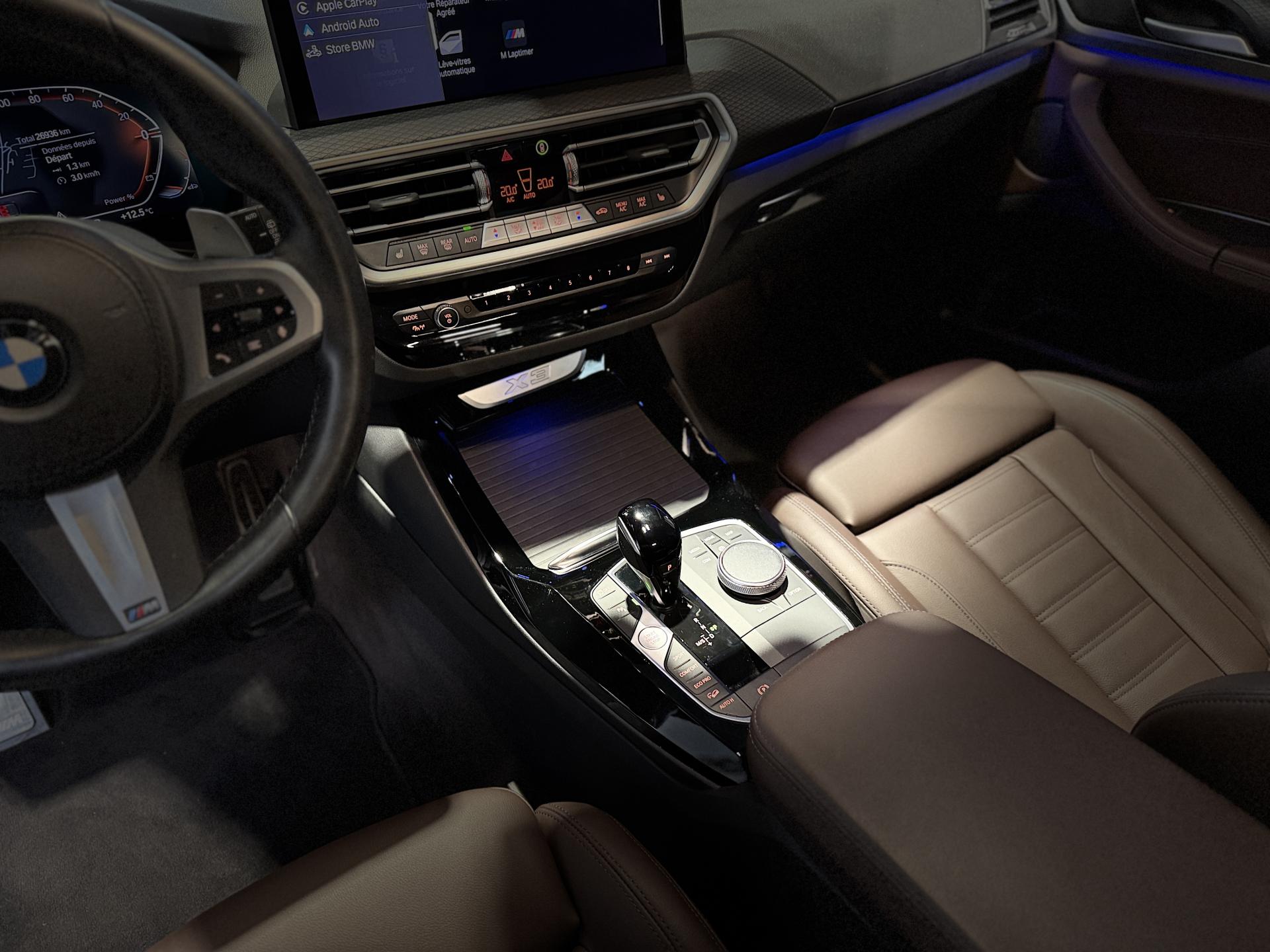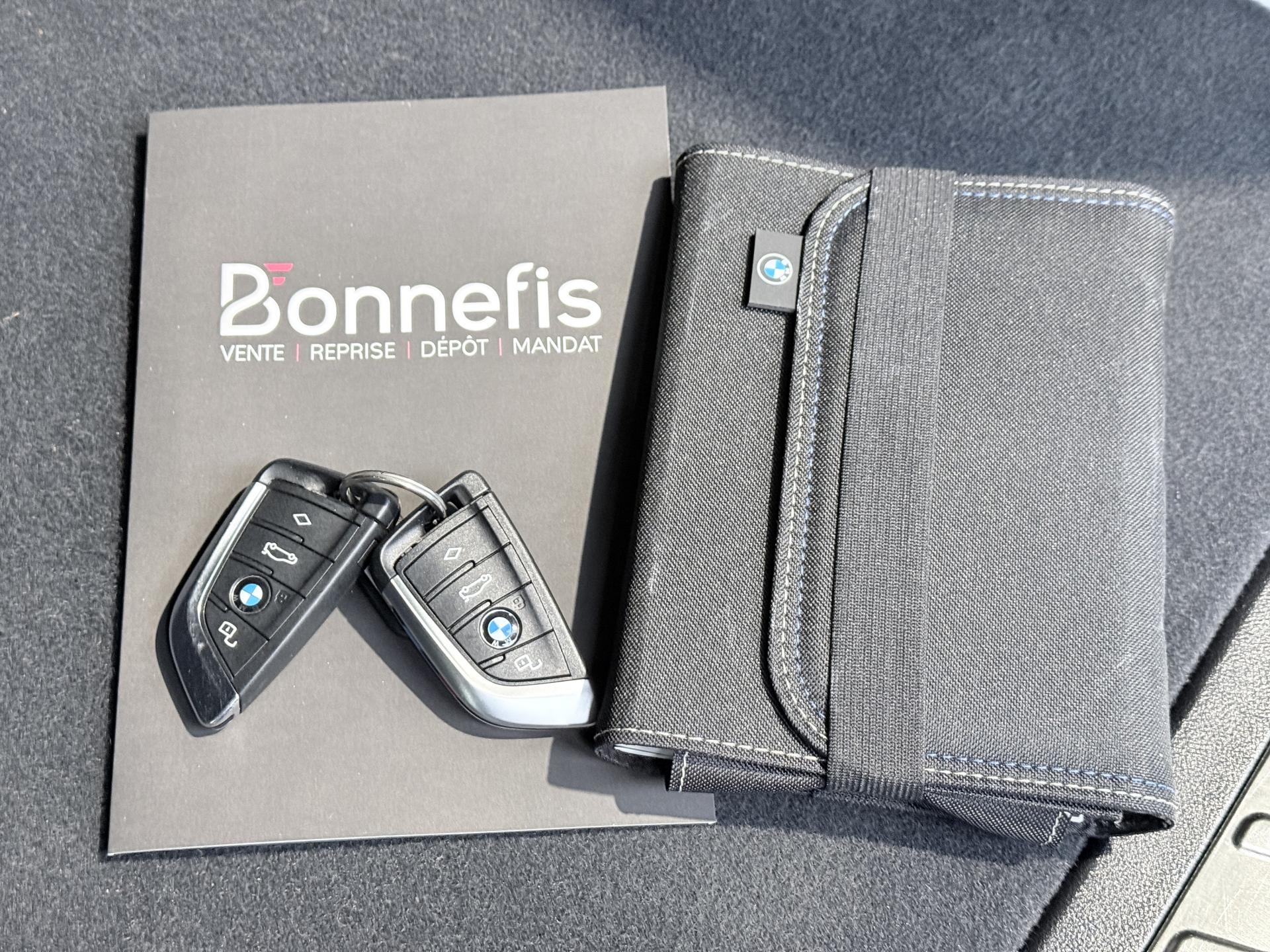 Nombreuses options : GPS, caméra de recul, Apple Carplay, radars avants et arrières de détection d'obstacles, Eclairage Laser BMW ( 1 708 EUR ), Eclairage Laser BMW en relation avec Pack Innovation ( 1 458 EUR ), Crochet d'attelage entièrement électrique ( 1 000 EUR ), Drive Assist ( 791 EUR ), Accès Confort ( 583 EUR ), Vitrage calorifuge ( 416 EUR ), Sièges AV chauffants ( 375 EUR ), Système Hi-Fi ( 375 EUR ), Eclairage d'ambiance ( 333 EUR ), Kit de rangement ( 333 EUR ), Protection active des occupants ( 333 EUR ), Direction DirectDrive à démultiplication variable ( 250 EUR ), Filet de séparation du coffre ( 208 EUR ), Vitrage insonorisant ( 208 EUR ), Inclinaison des dossiers des sièges AR ( 166 EUR ), Appui lombaire côté conducteur ( 133 EUR ), Réglage largeur du dossier côté conducteur ( 108 EUR ), Appel d'Urgence Intelligent (durée de vie de la voiture), BMW Live Cockpit Navigation Pro, Boîte de vitesses automatique Sport avec palettes au volant, Ciel de pavillon M anthracite, Climatisation automatique 3 zones, Contrôle de la pression des pneus, Feux de route anti-éblouissement et éclairage dans les virages, Rétroviseur intérieur électrochrome, Rétroviseurs extérieurs électrochromes (côté conducteur) et rabattables électriquement, ...