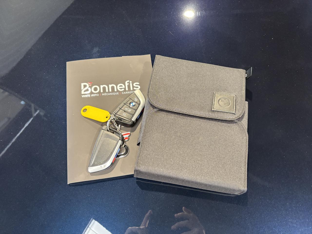 Nombreuses options : GPS, Apple Carplay, radars avants et arrières de détection d'obstacles, toit ouvrant panoramique électrique en verre ( 1 541 € ), Pack Advanced Safety (En relation Pack Innovation) ( 1 208 € ), sellerie Cuir BMW Individual "Merino" ( 1 166 € ), affichage Tête Haute HUD couleur ( 833 € ), système de haut-parleurs Hi-fi Harman/Kardon ( 916 € ), crochet d'attelage entièrement électrique ( 958 € ), sièges AV/AR chauffants ( 625 € ), vitrage calorifuge ( 333 € ), préparation Apple CarPlay (3 ans) ( 250 € ), tuner DAB ( 291 € ), sièges AV/AR chauffants en relation avec Pack Confort ( 291 € ), sièges AV/AR chauffants en relation avec Pack Hiver ( 291 € ), volant chauffant ( 166 € ), inserts décoratifs en bois précieux 'Oak' Dark brillant souligné de chrome perlé ( 166 € ), application galvanisé ( 166 € ), accès Confort ( 500 € ), inclinaison des dossiers des sièges AR ( 133 € ), lecteur CD ( 91 € ), boîte de vitesses automatique Sport avec palettes au volant, Freins M Sport Étriers de freins bleus avec désignation M, rétroviseur intérieur électrochrome, ciel de pavillon "Anthrazit", climatisation automatique 3 zones, hayon de coffre électrique, ...
