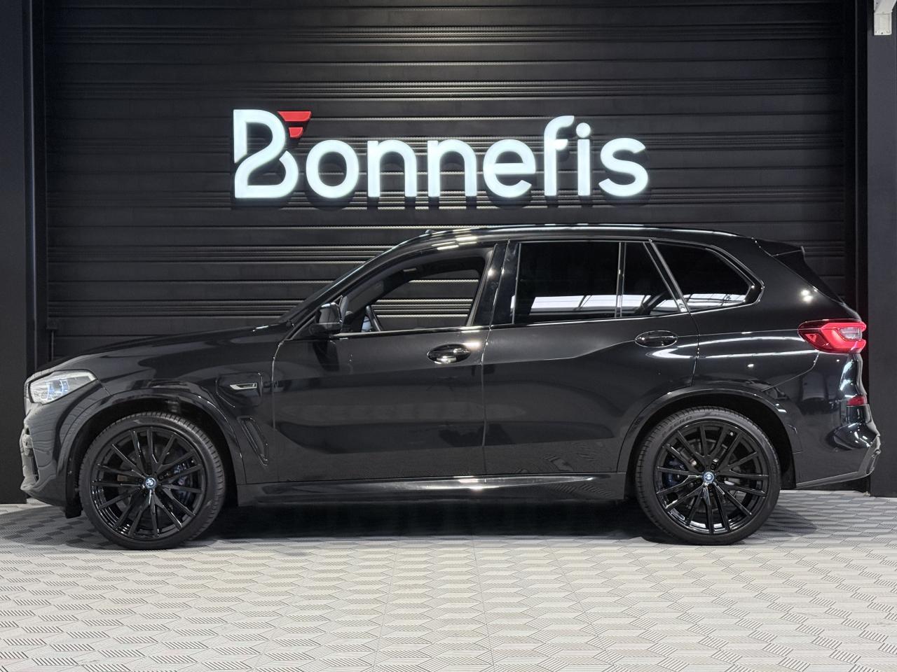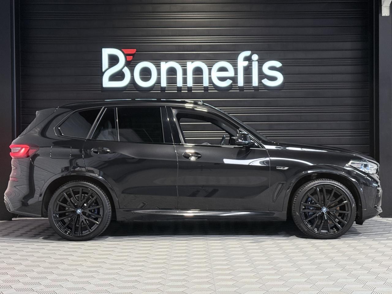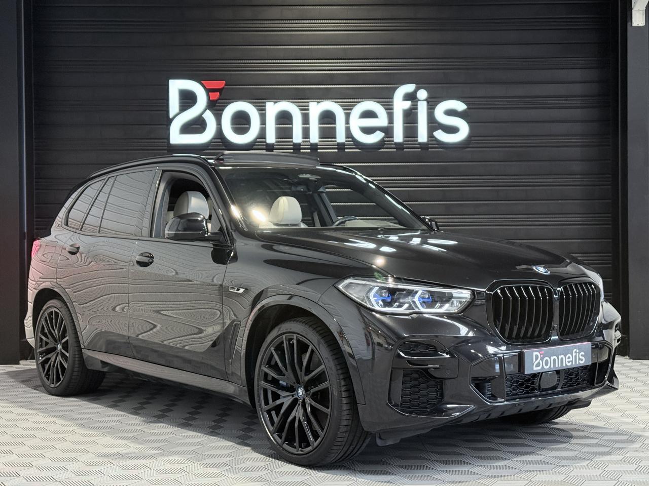 BMW X5 45E G05 3.0 394 Ch BVA8 M Sport 5p xDrive Hybride tout-terrain, extérieur noir métallisée ( Saphirschwarz )( 1 000 € ), intérieur Sellerie cuir Vernasca Elfenbeinweiss, 17 cv, 5 portes, première mise en circulation le 01/08/2022.