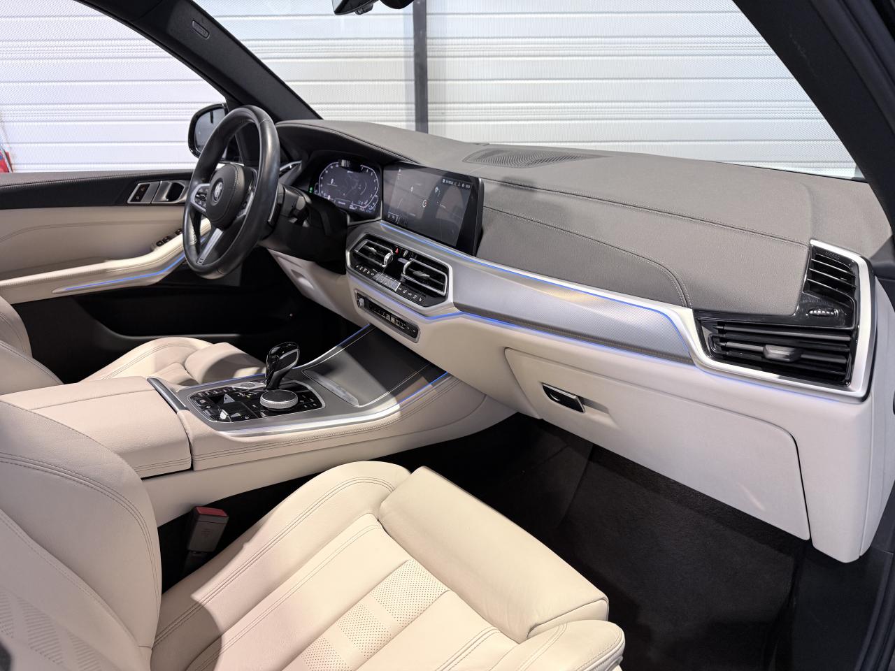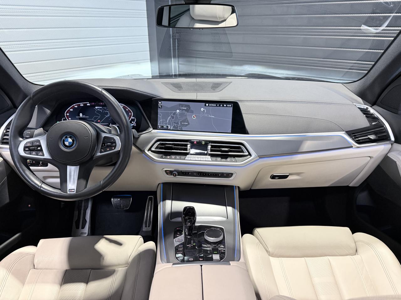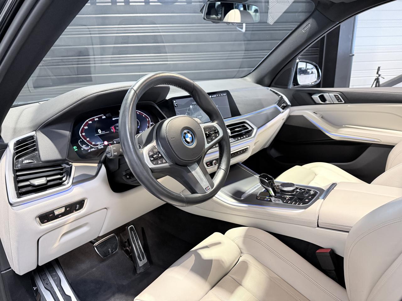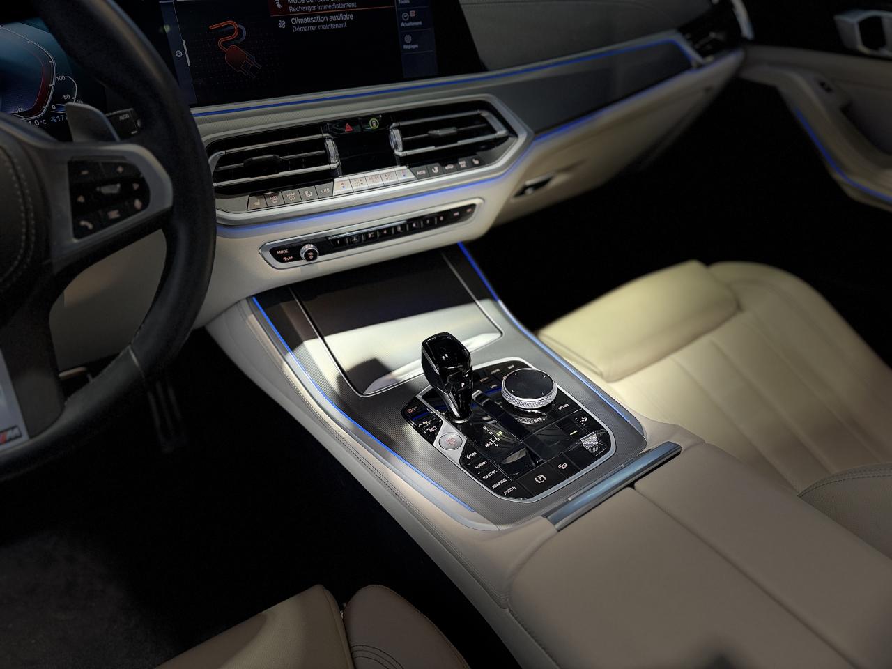 BMW X5 45E G05 3.0 394 Ch BVA8 M Sport 5p xDrive Hybride tout-terrain, extérieur noir métallisée ( Saphirschwarz )( 1 000 € ), intérieur Sellerie cuir Vernasca Elfenbeinweiss, 17 cv, 5 portes, première mise en circulation le 01/08/2022.