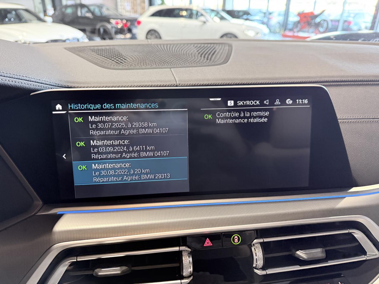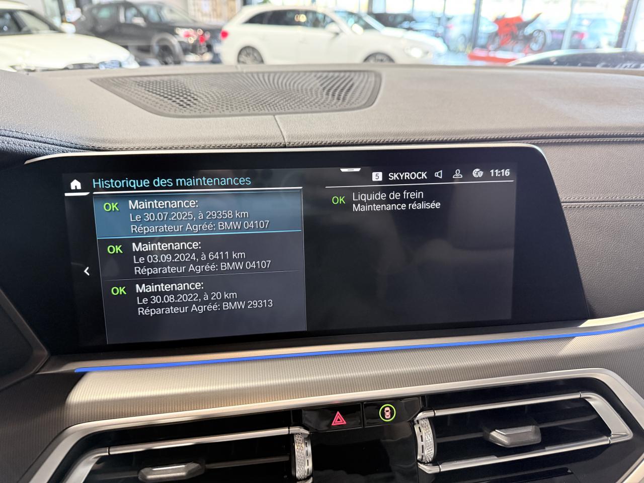 Nombreuses options : GPS, caméra de recul, Apple Carplay, radars avants et arrières de détection d'obstacles, Drive Assist Pro ( 2 541 € ), Jantes en alliage 22'' style 742 M Schwarz à rayons doubles ( 2 000 € ), Laser BMW ( 1 708 € ), Toit ouvrant panoramique électrique en verre ( 1 708 € ), HUD / Affichage Tête Haute couleur ( 1 216 € ), Accès Confort avec suppression BMW Digital Key ( 1 000 € ), Vitrage insonorisant ( 500 € ), Système haut-parleurs HiFi ( 416 € ), Vitrage calorifuge ( 416 € ), Sièges AV chauffants ( 333 € ), Shadow Line M brillant étendu ( 291 € ), Stores pare-soleil mécaniques pour vitres latérales AR ( 291 € ), Porte-boissons chauffant et réfrigérant ( 250 € ), Filet de séparation du coffre ( 166 € ), Kit de mobilité BMW ( 45 € ), BMW Live Cockpit Navigation Pro, Boîte de vitesses automatique Sport avec palettes au volant, Freins M Sport avec étriers bleus et désignation M, Volant M gainé cuir, Ciel de pavillon M anthracite, Sièges AV électriques à mémoires conducteur, Rétroviseurs extérieurs rabattables électriquement avec rétroviseurs intérieur et extérieur électrochromes côté conducteur, Feux de route anti-éblouissement avec éclairage dans les virages, Alarme antivol, Appel d’Urgence Intelligent, Mesure individuelle de pression des pneumatiques, ...