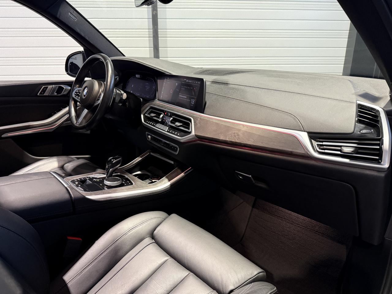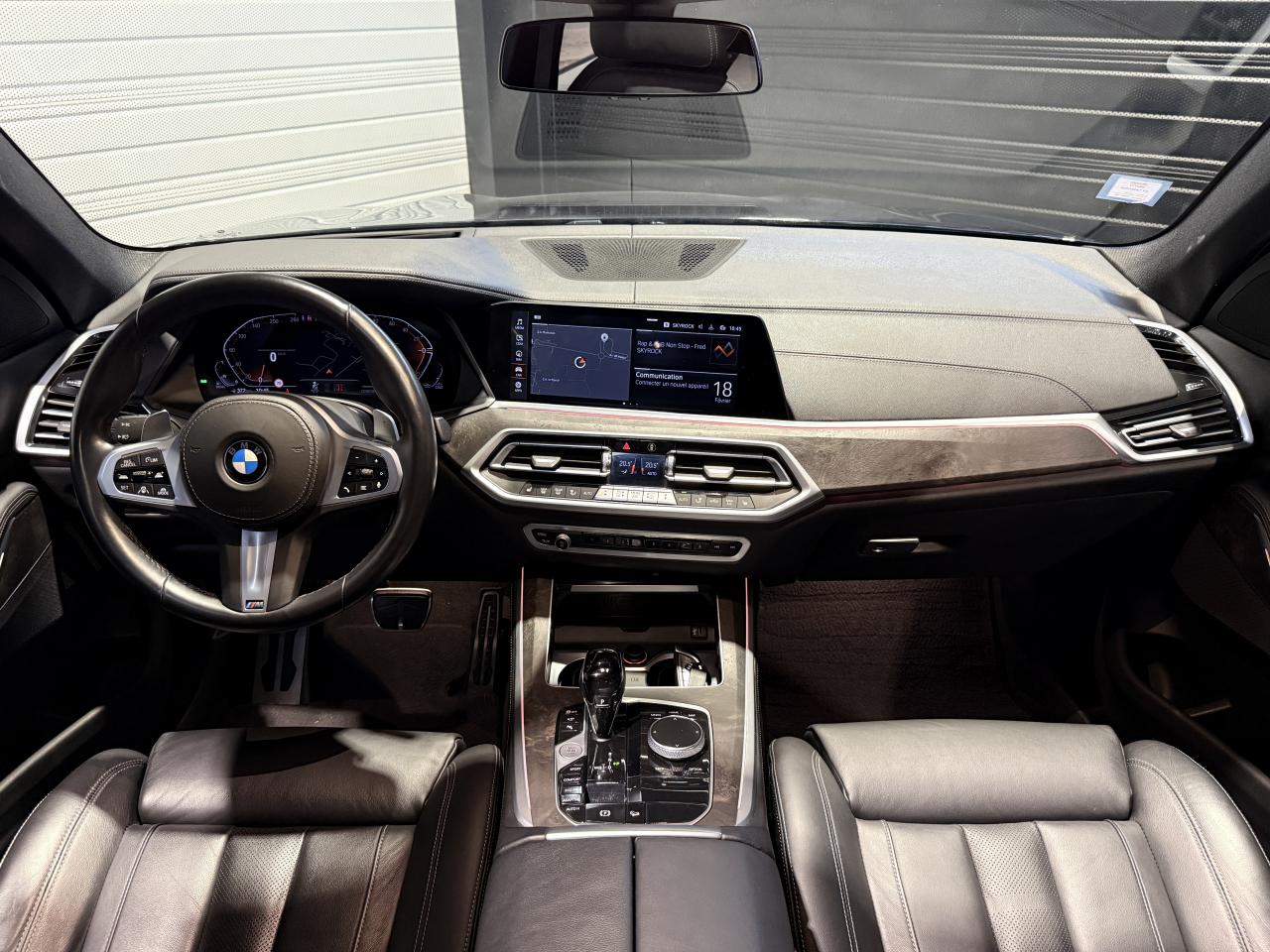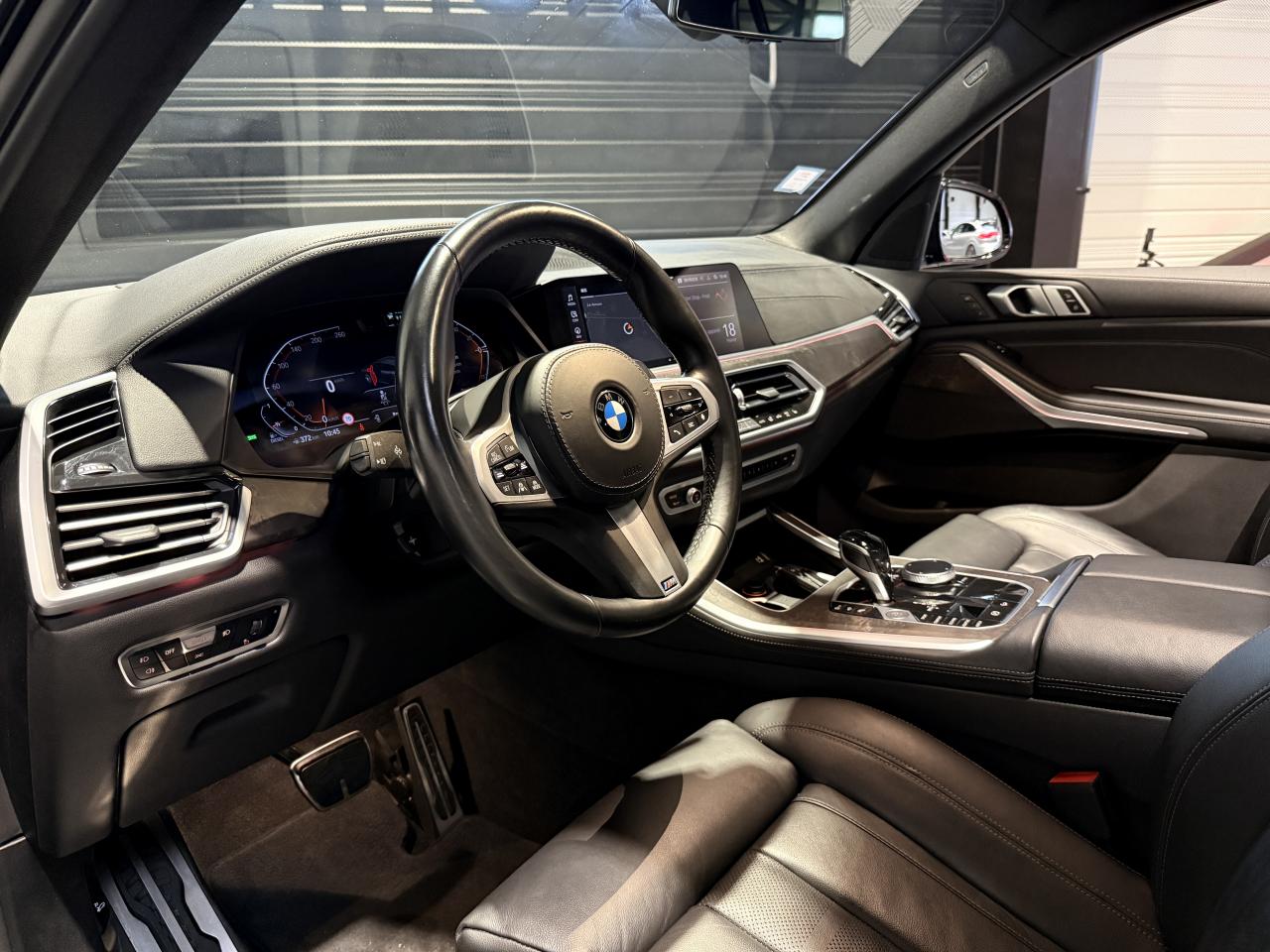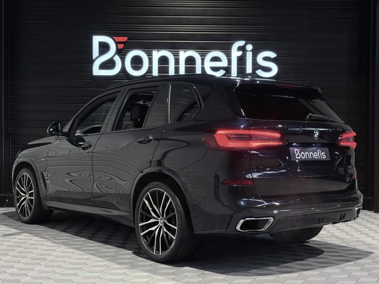 BMW X5 M 40D G05 3.0 340 Ch BVA8 M Sport 5p xDrive tout-terrain, extérieur bleu foncé métallisée ( carbonschwarz métallisée )( 1 000 € ), intérieur Sellerie Cuir noir, 22 cv, 5 portes, première mise en circulation le 07/07/2021.