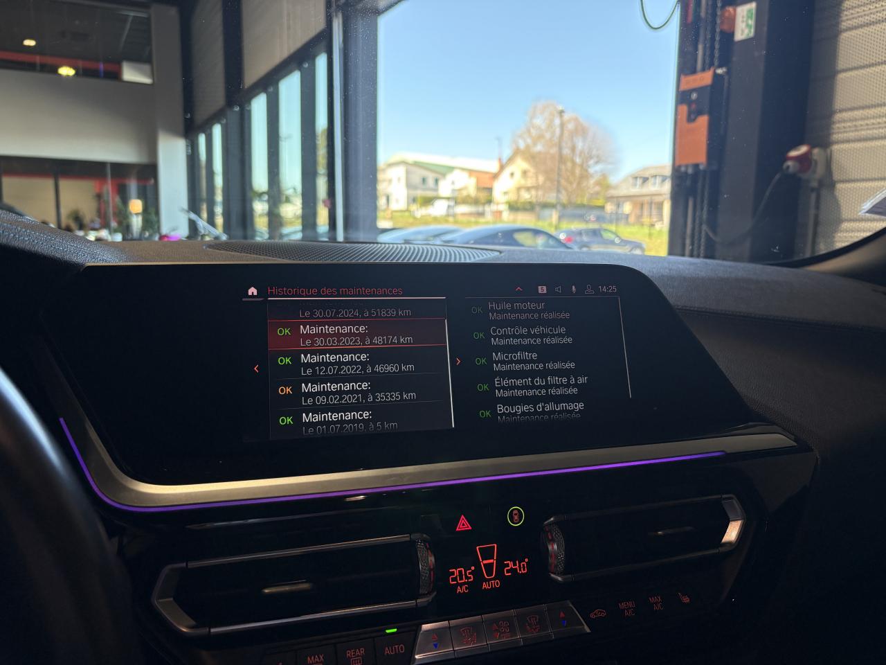Nombreuses options : GPS, Apple Carplay, caméra de recul, radars avants et arrières de détection d'obstacles, affichage Tête Haute HUD Couleur ( 958 € ), Jantes en alliage léger 19" style 799 M, à rayons doubles, bicolores Noires ( 833 € ), Park Assist ( 541 € ), Shadow Line brillant BMW Individual étendu ( 216 € ), Ceintures de sécurité noires avec liserés aux couleurs M ( 175 € ), Freins Sport M, Accès confort avec préparation "BMW Digital Key", Alarme antivol, BMW Live Cockpit Navigation Pro, Boîte de vitesses automatique Sport 8 rapports avec palettes au volant, Climatisation automatique bi-zone, Connectivité avancée sans fil avec recharge par induction, Sièges AV avec appui lombaire ajustable, Sièges AV chauffants, Volant chauffant...