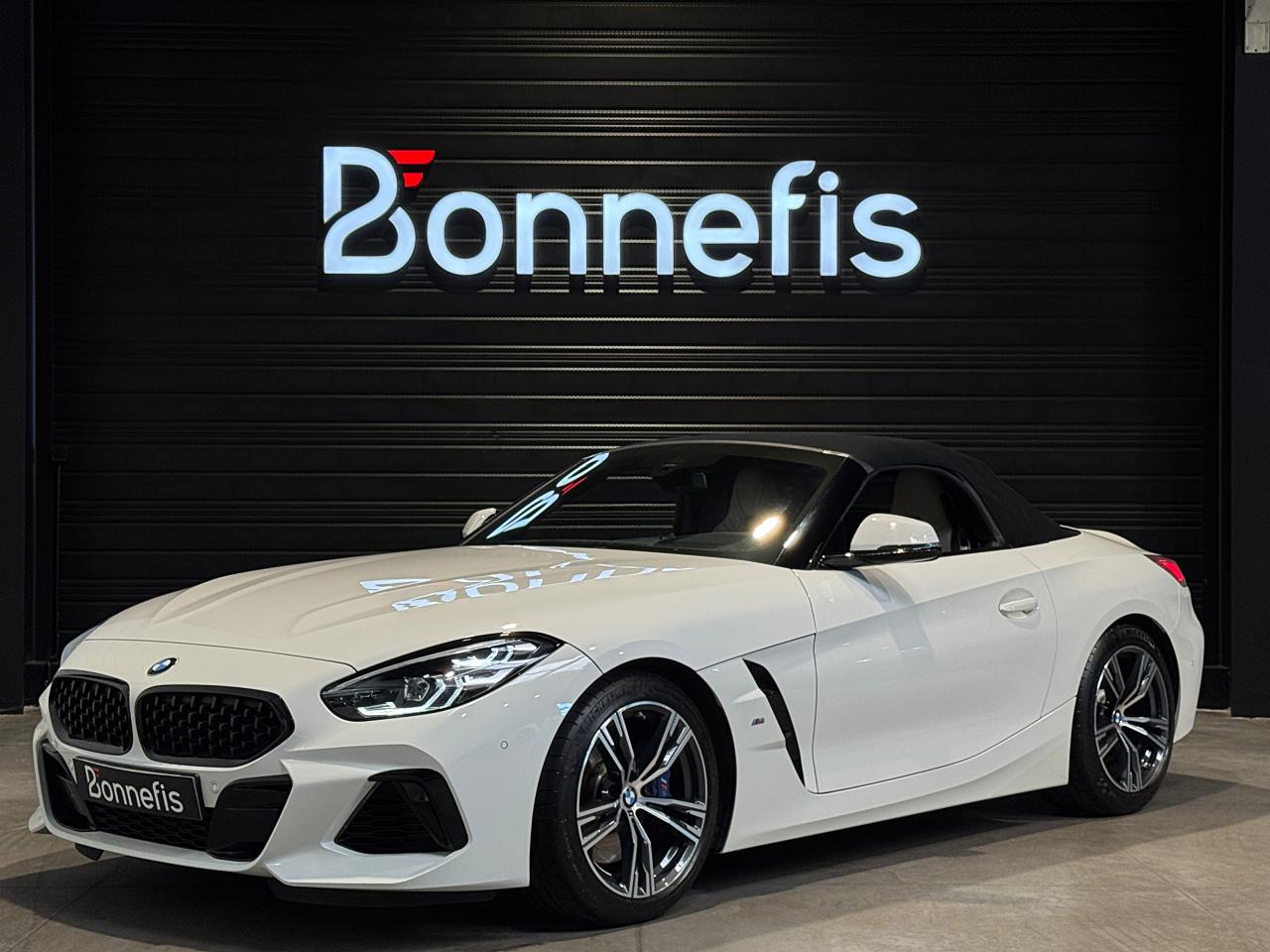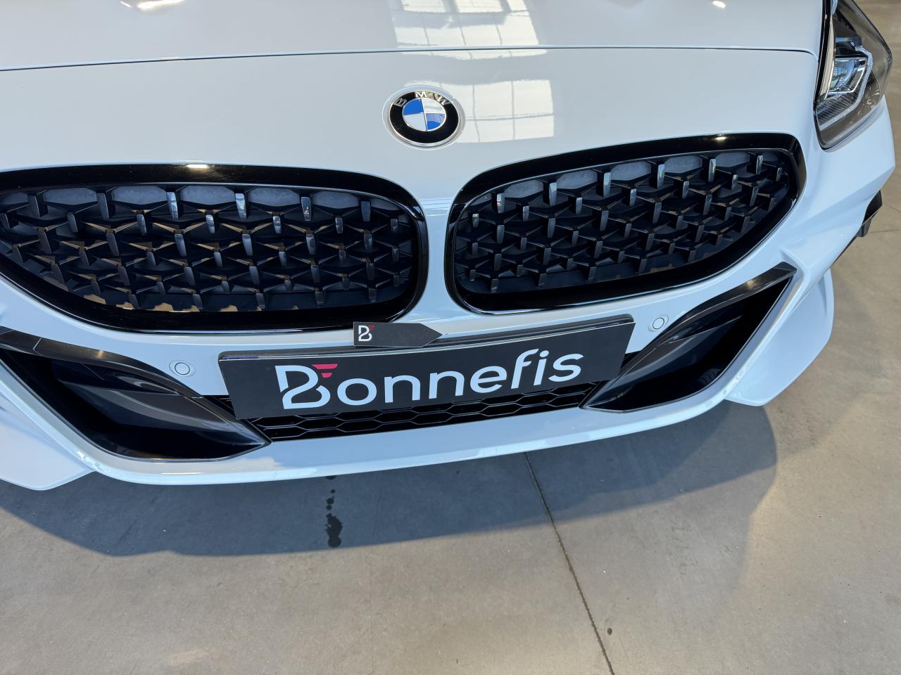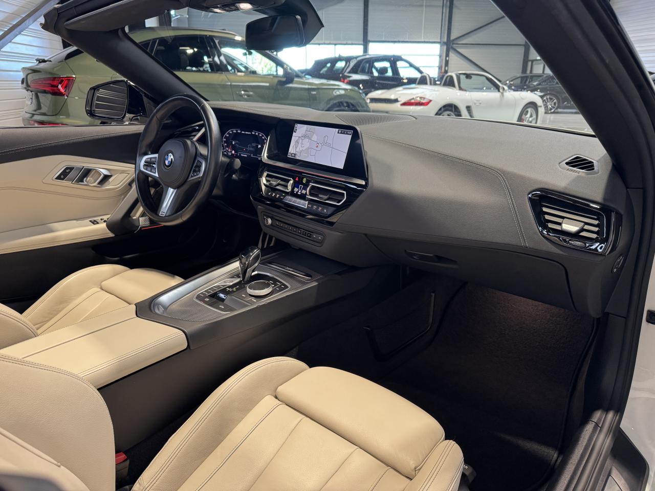 BMW Z4 M40i 340Ch BVA8 G29 M Performance, extérieur Alpinweiss uni ( blanc ), intérieur cuir Vernasca Elfenbenweiss avec sur-piqûres décoratives, 22 cv, 3 portes, première mise en circulation le 01/05/2021.