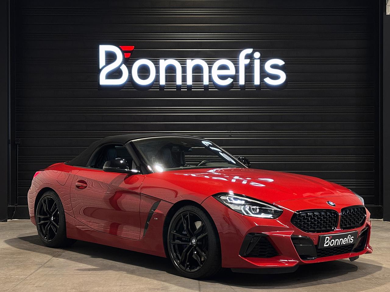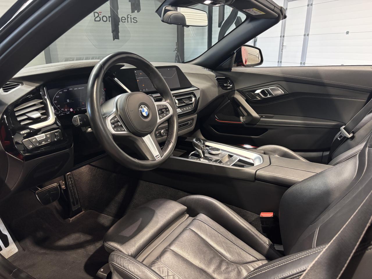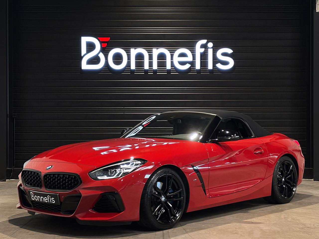 BMW Z4 M40i 340Ch BVA8 G29 M Performance, extérieur rouge San Francisco métallisée ( 908 € ), intérieur cuir Vernasca noir avec sur-piqûres décoratives, 23 cv, 3 portes, première mise en circulation le 30/07/2019.