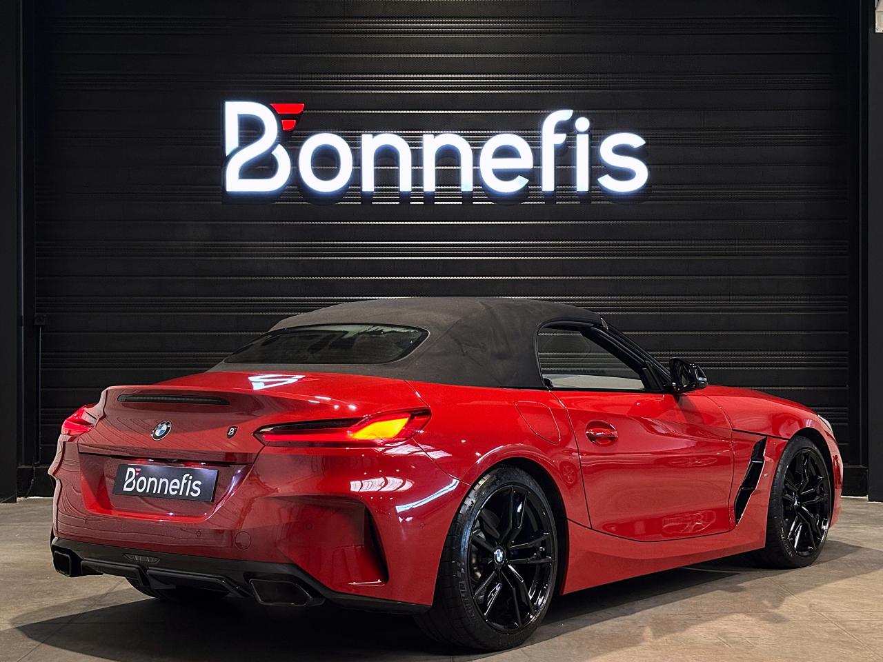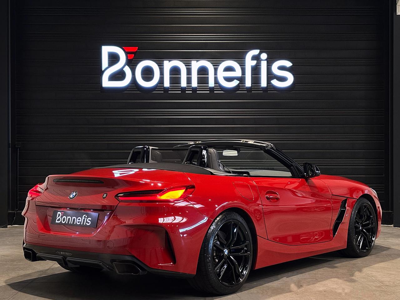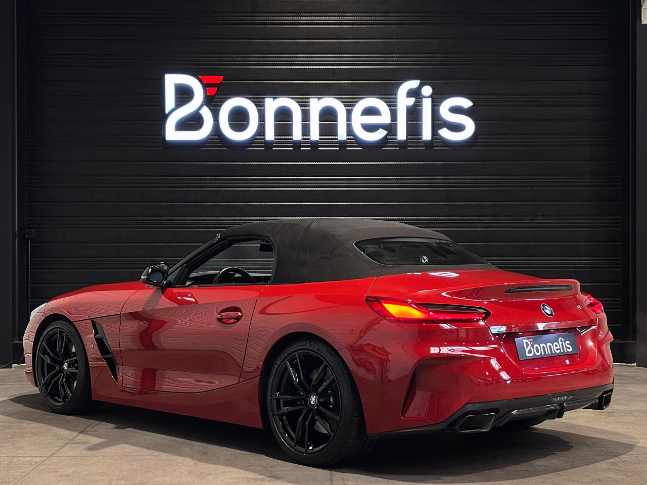 BMW Z4 M40i 340Ch BVA8 G29 M Performance, extérieur rouge San Francisco métallisée ( 908 € ), intérieur cuir Vernasca noir avec sur-piqûres décoratives, 23 cv, 3 portes, première mise en circulation le 30/07/2019.
